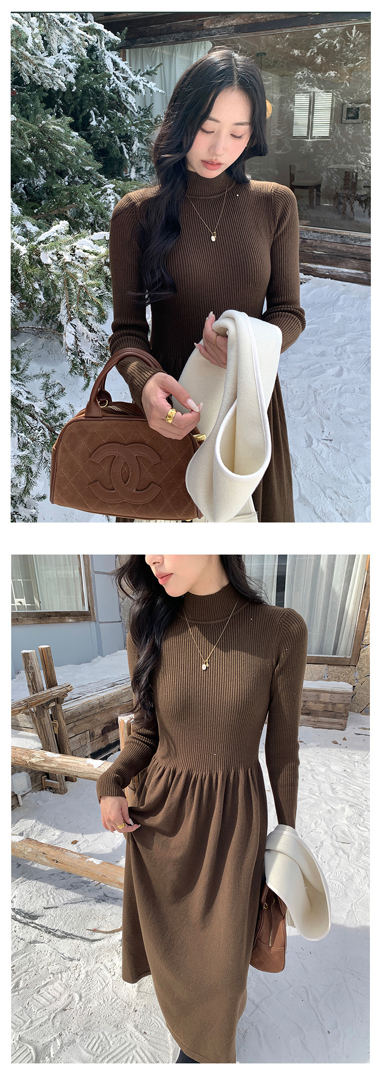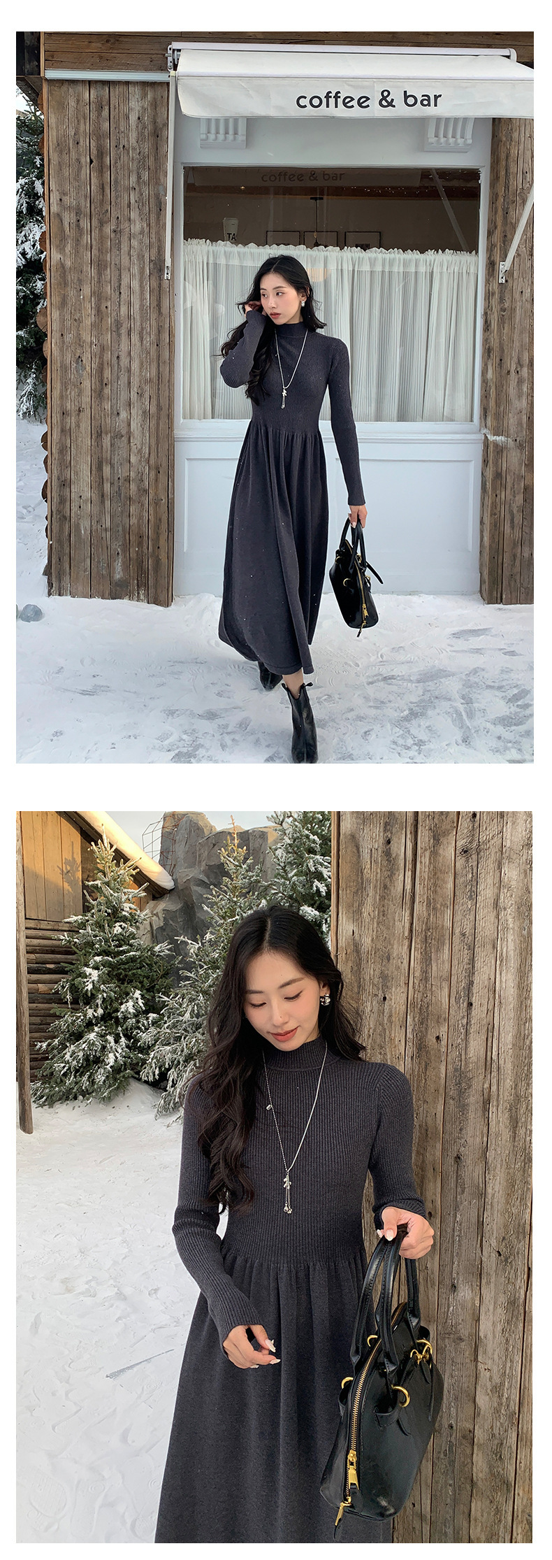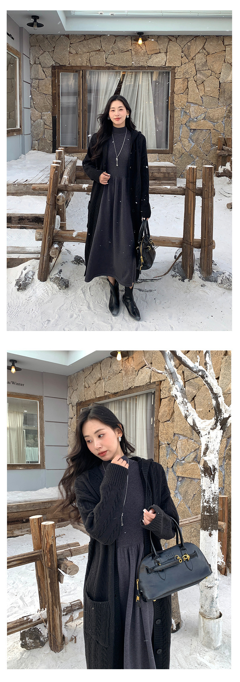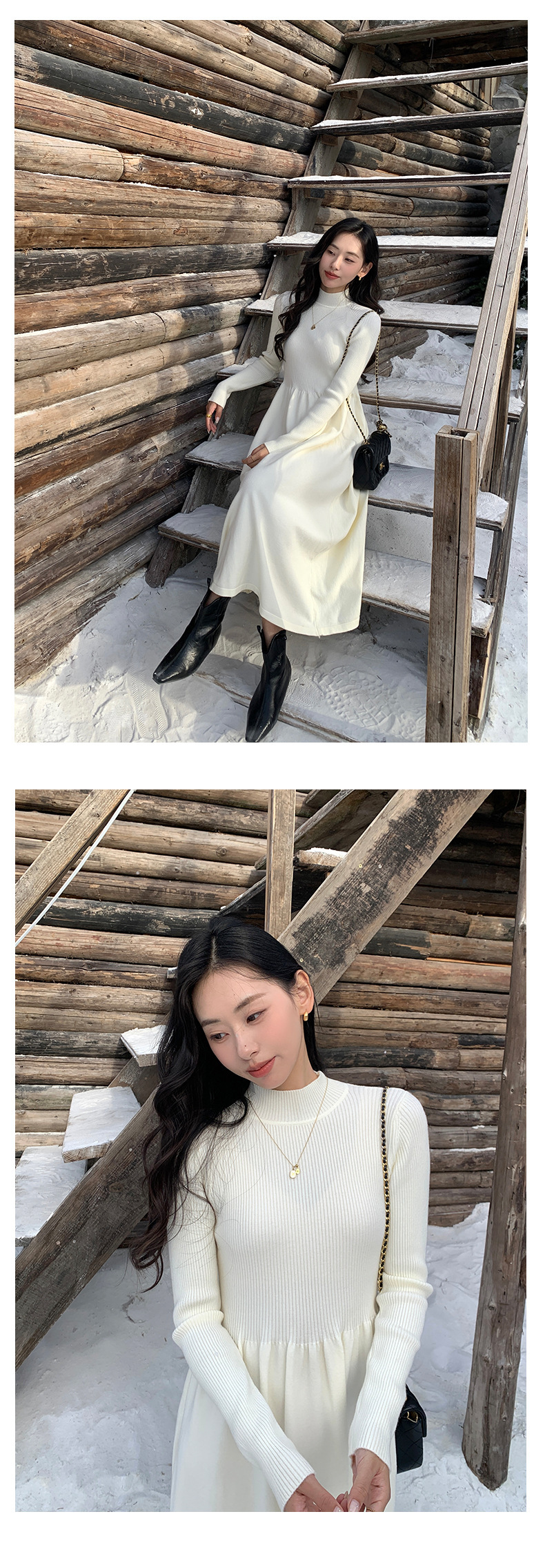 *o-ha-you*【FHZ145LY10025】法式復古針織連衣裙2024冬內搭氣質長版收腰顯瘦洋裝-4色