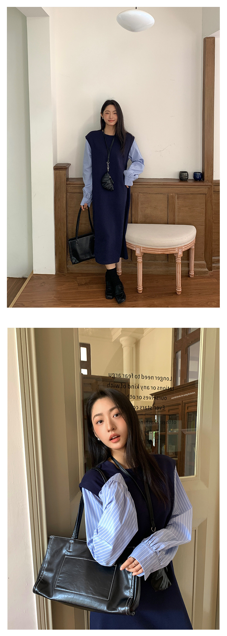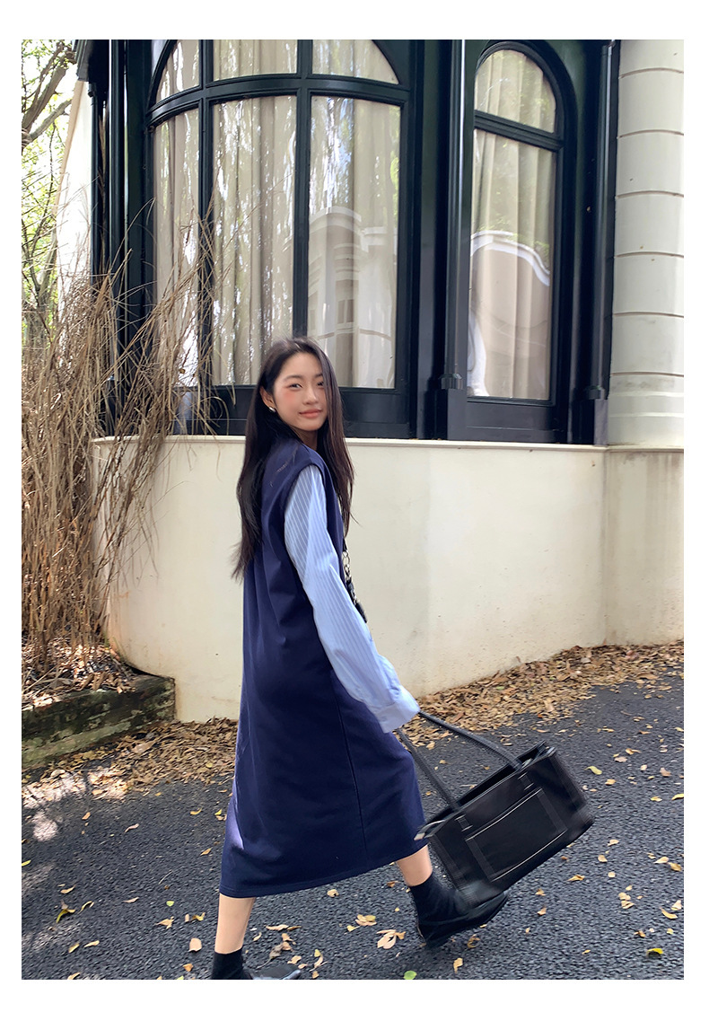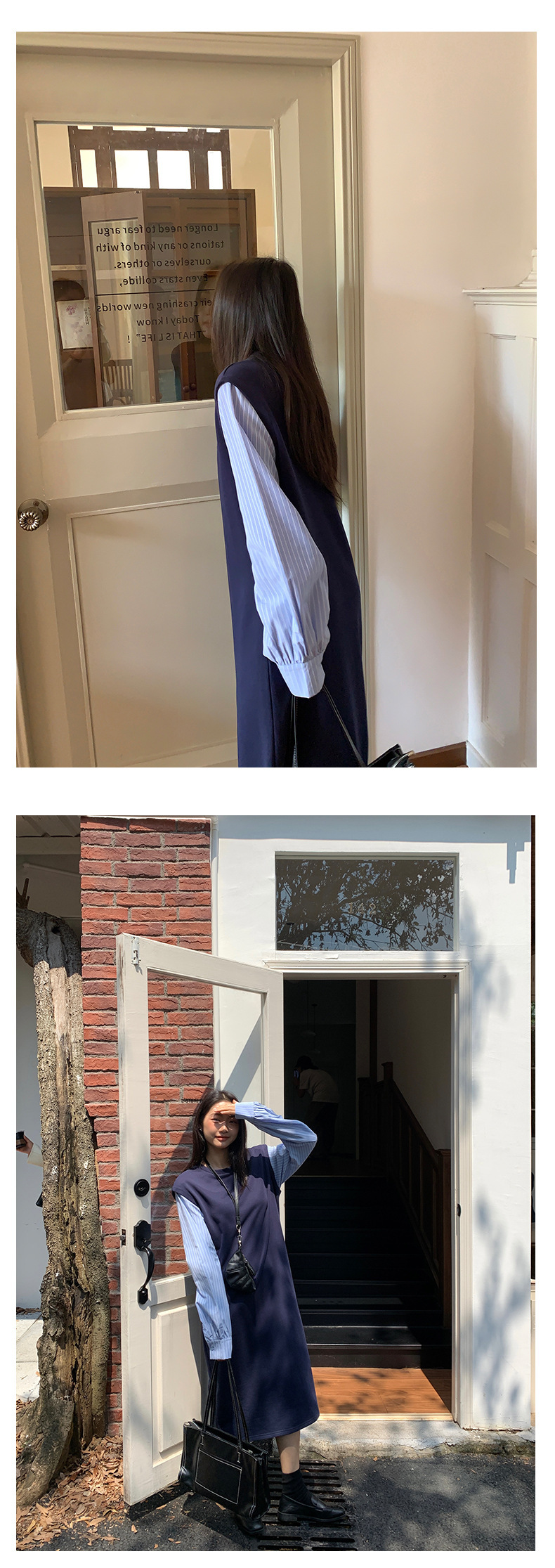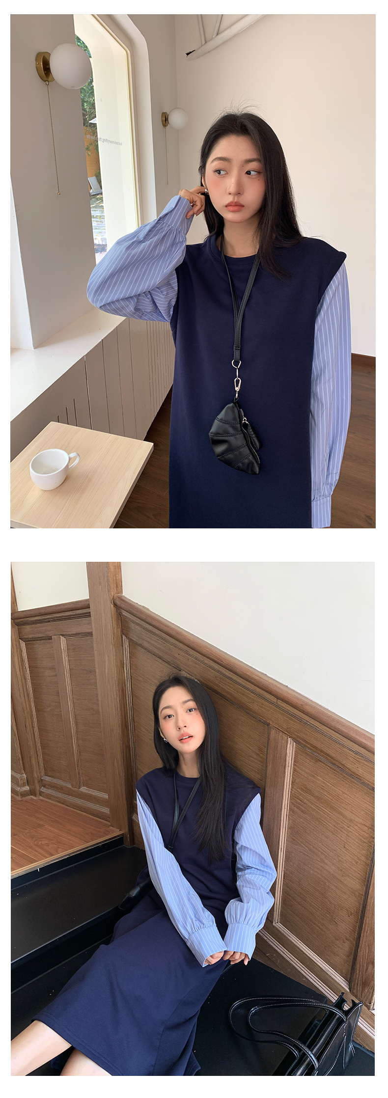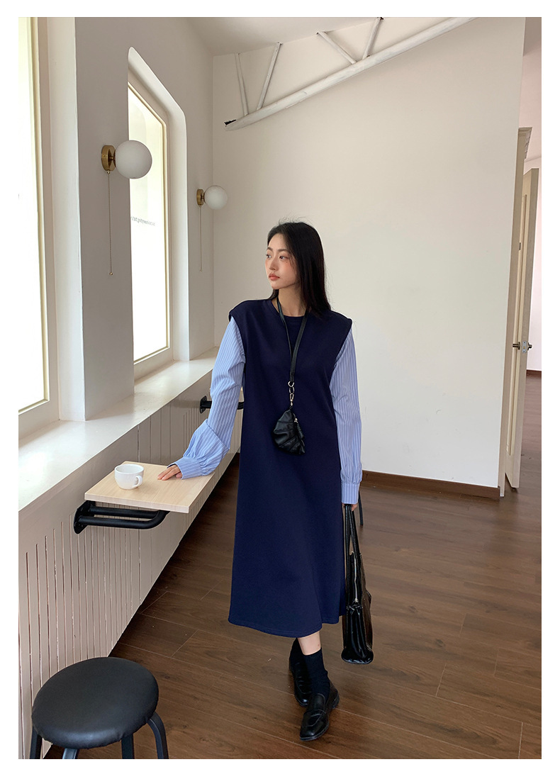 *o-ha-you*【FHZ145LY7045】韓系假兩件條紋襯衫針織連衣裙2024年冬季輕淑氣質洋裝