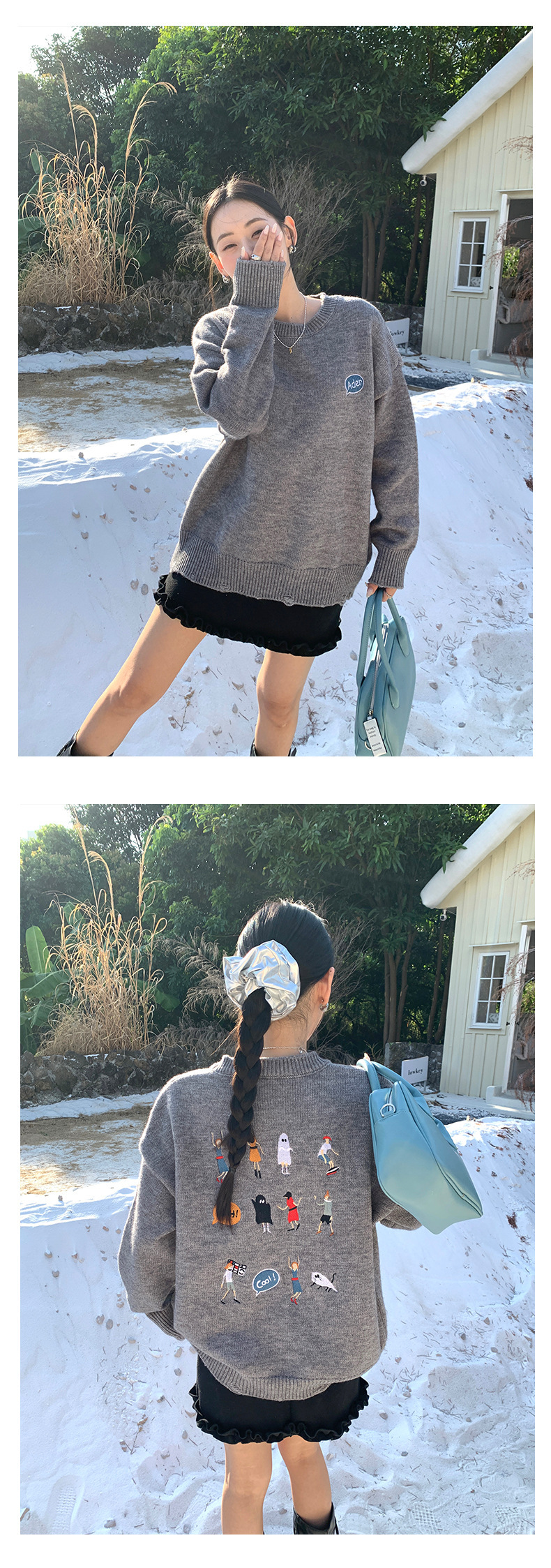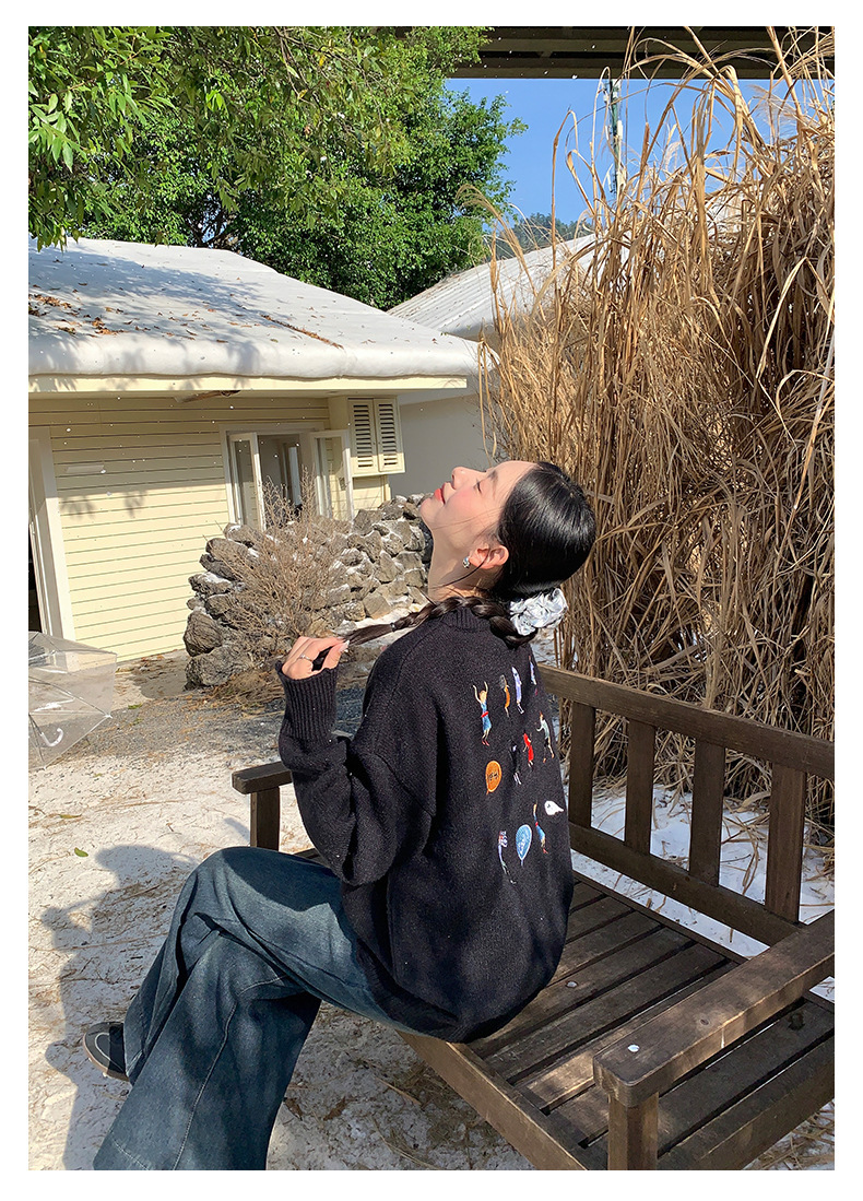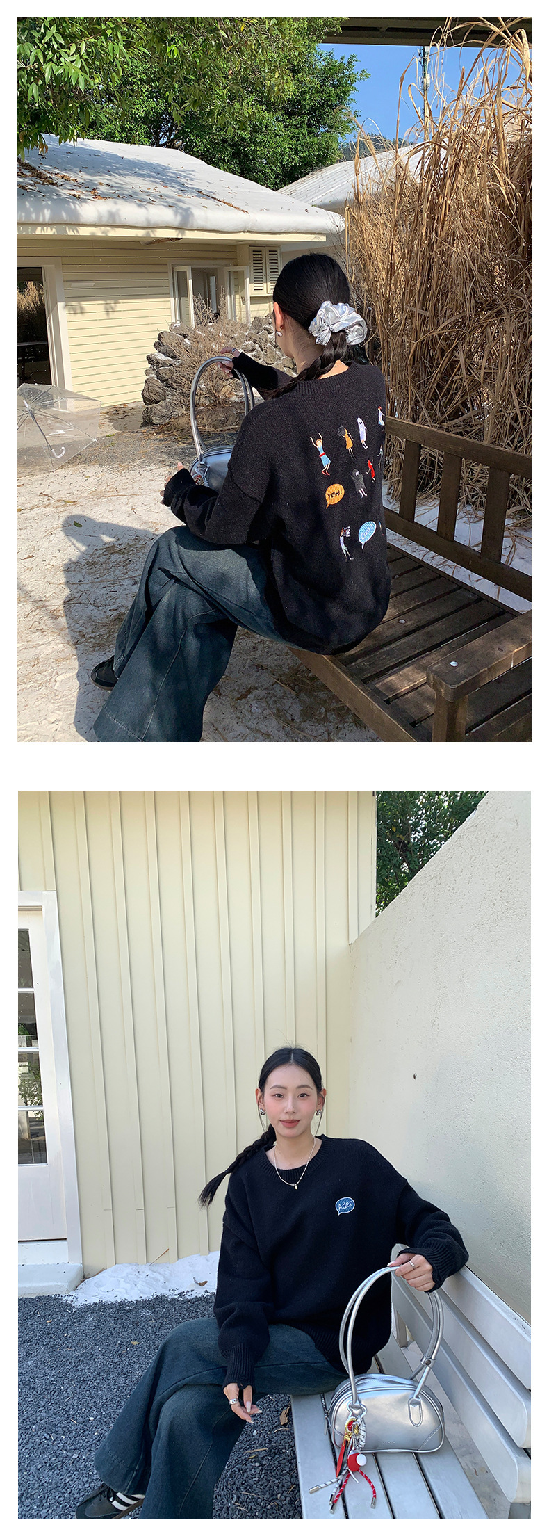 *o-ha-you*【FHZ145MY10021】美式卡通刺繡毛衣2024冬季顯瘦加厚可愛套頭-2色