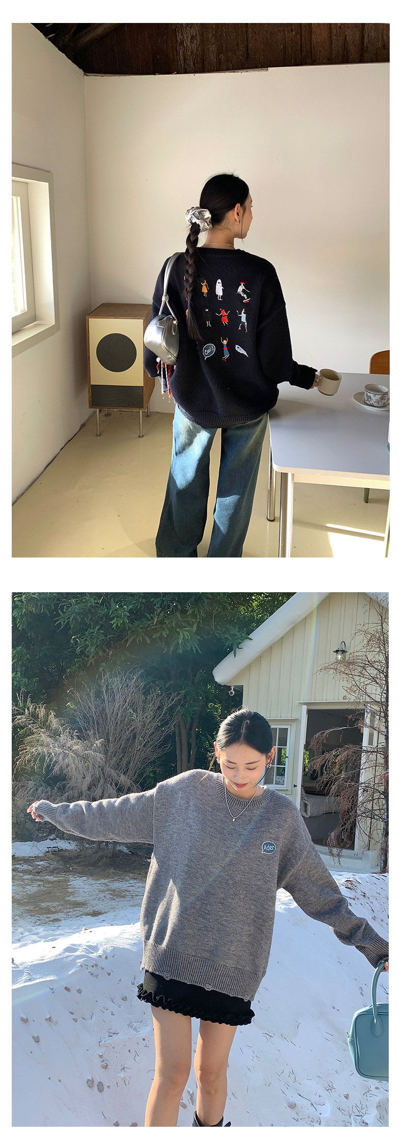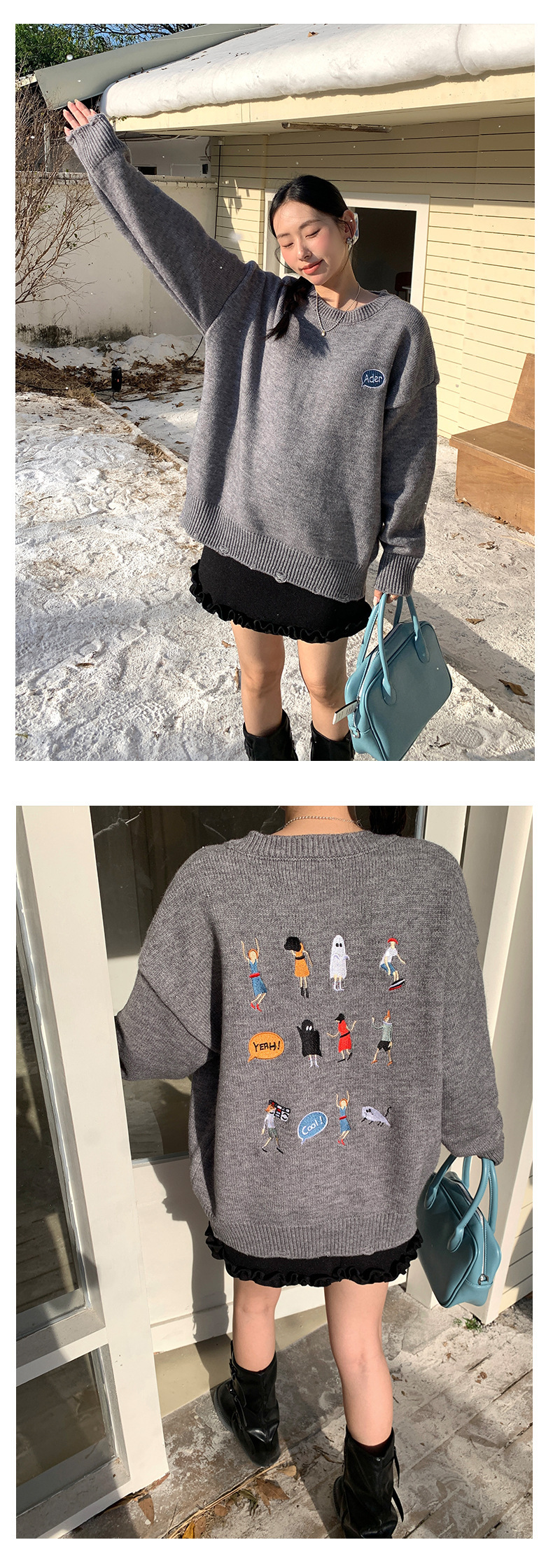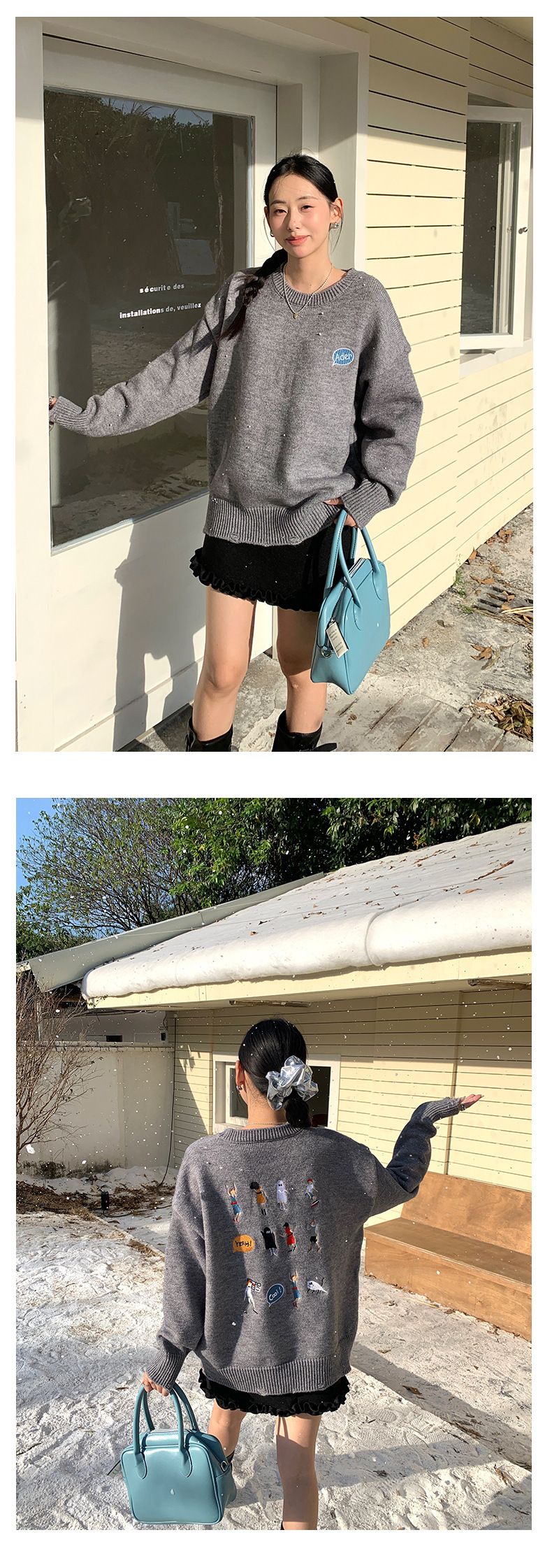 *o-ha-you*【FHZ145MY10021】美式卡通刺繡毛衣2024冬季顯瘦加厚可愛套頭-2色