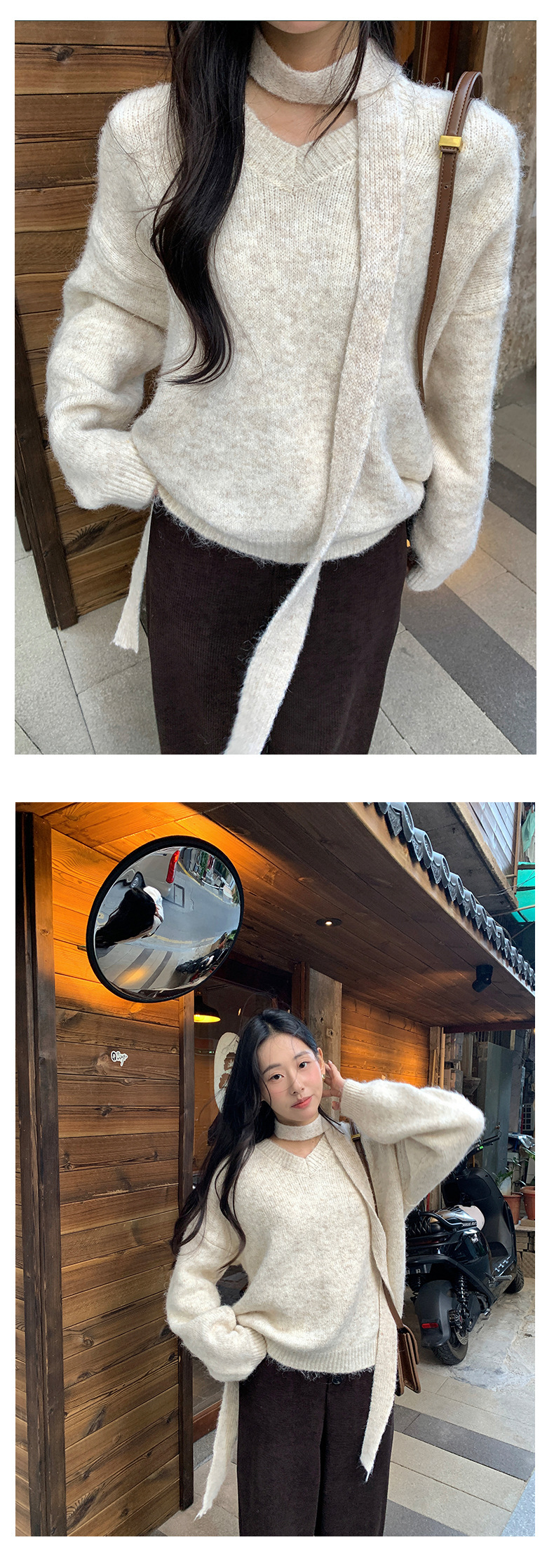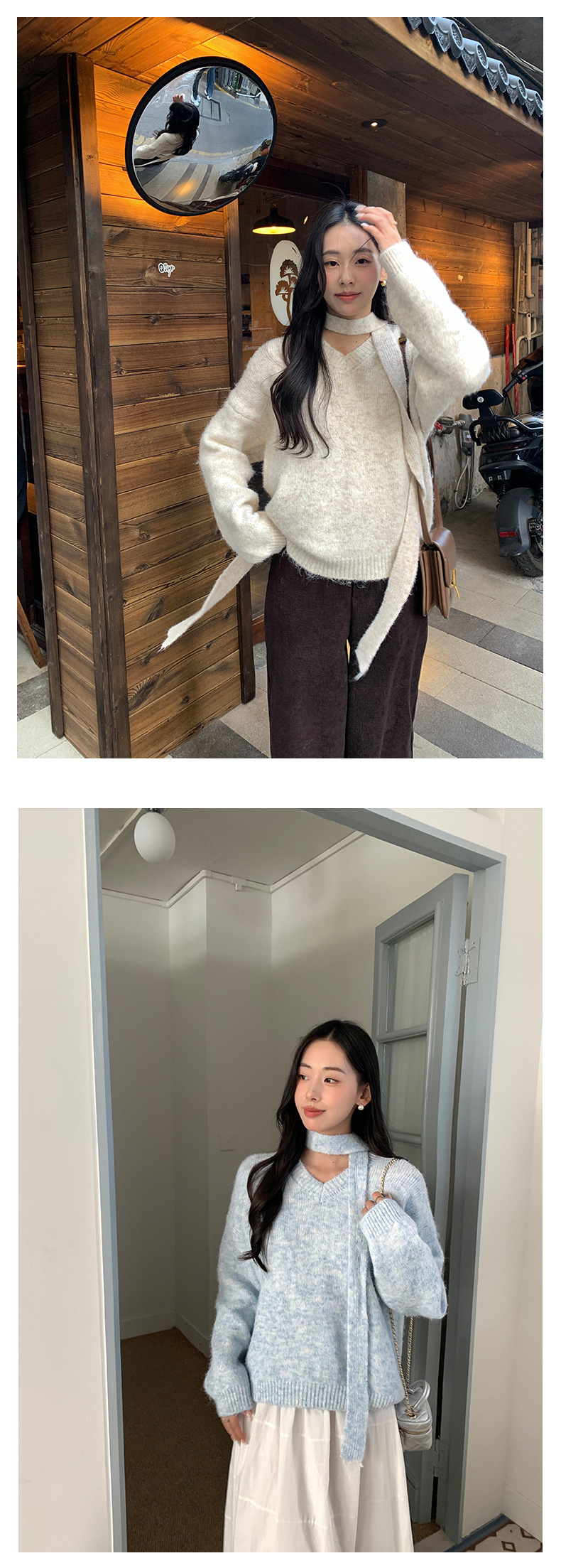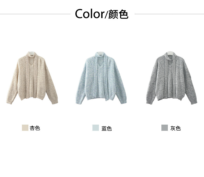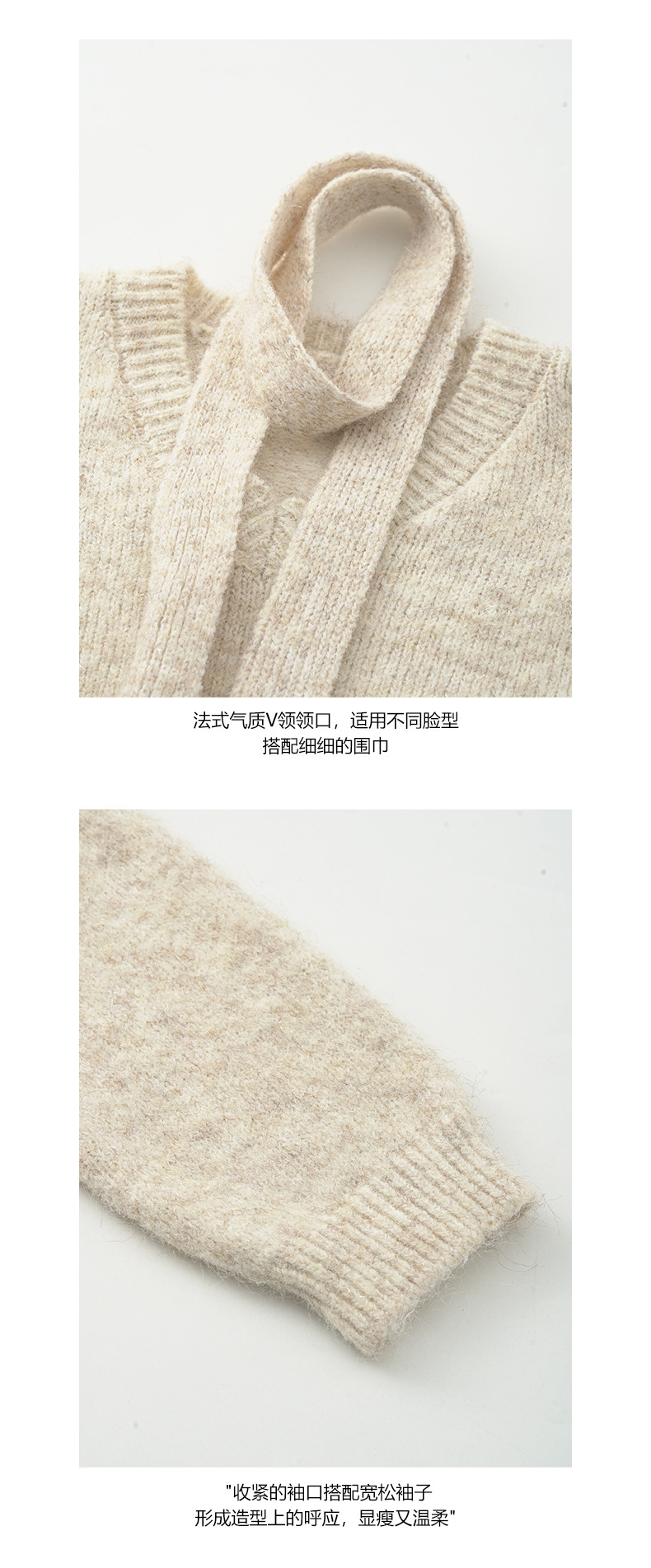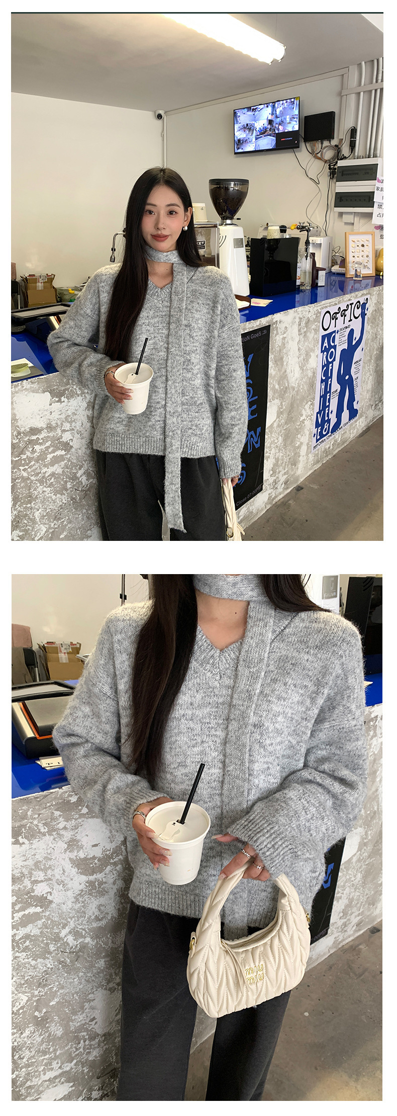 *o-ha-you*【FHZ145MY10039】韓系V領圍巾毛衣2024年冬季保暖套頭寬鬆上衣-3色