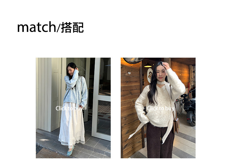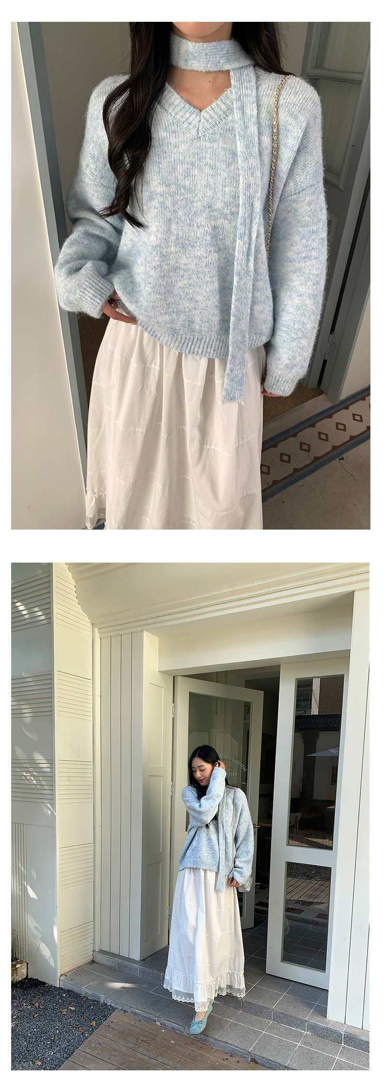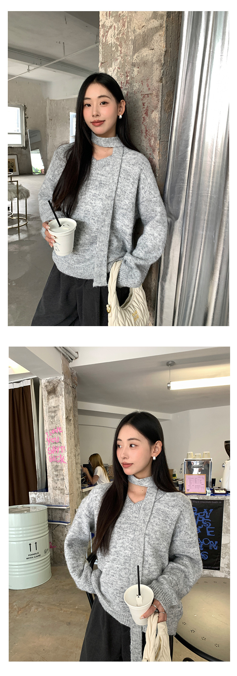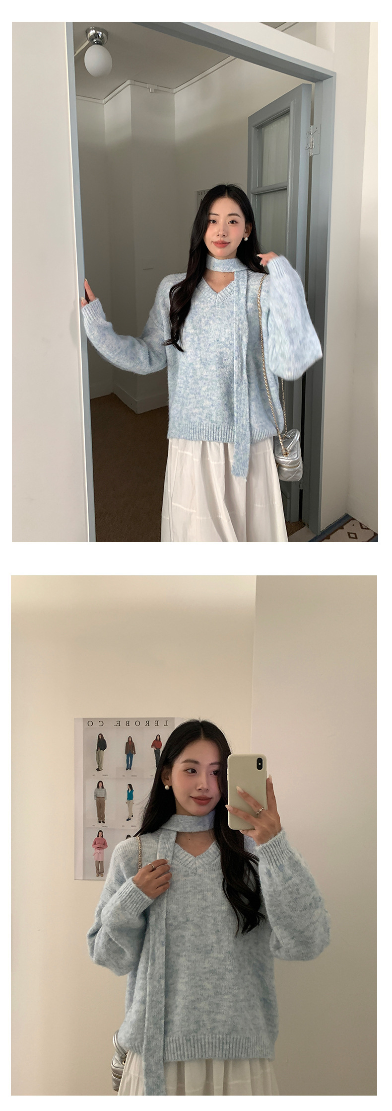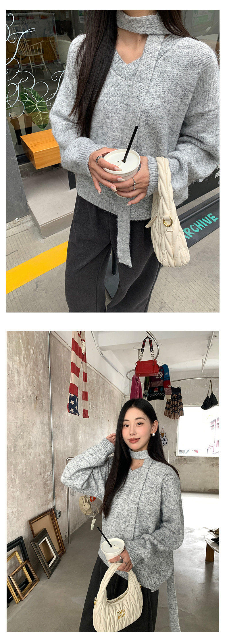 *o-ha-you*【FHZ145MY10039】韓系V領圍巾毛衣2024年冬季保暖套頭寬鬆上衣-3色
