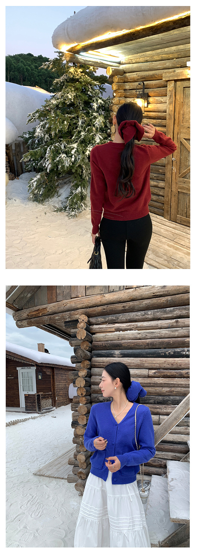 *o-ha-you*【FHZ145MY10058】韓系復古淨色開襟毛衣2024冬保暖髮圈搭配一套-6色