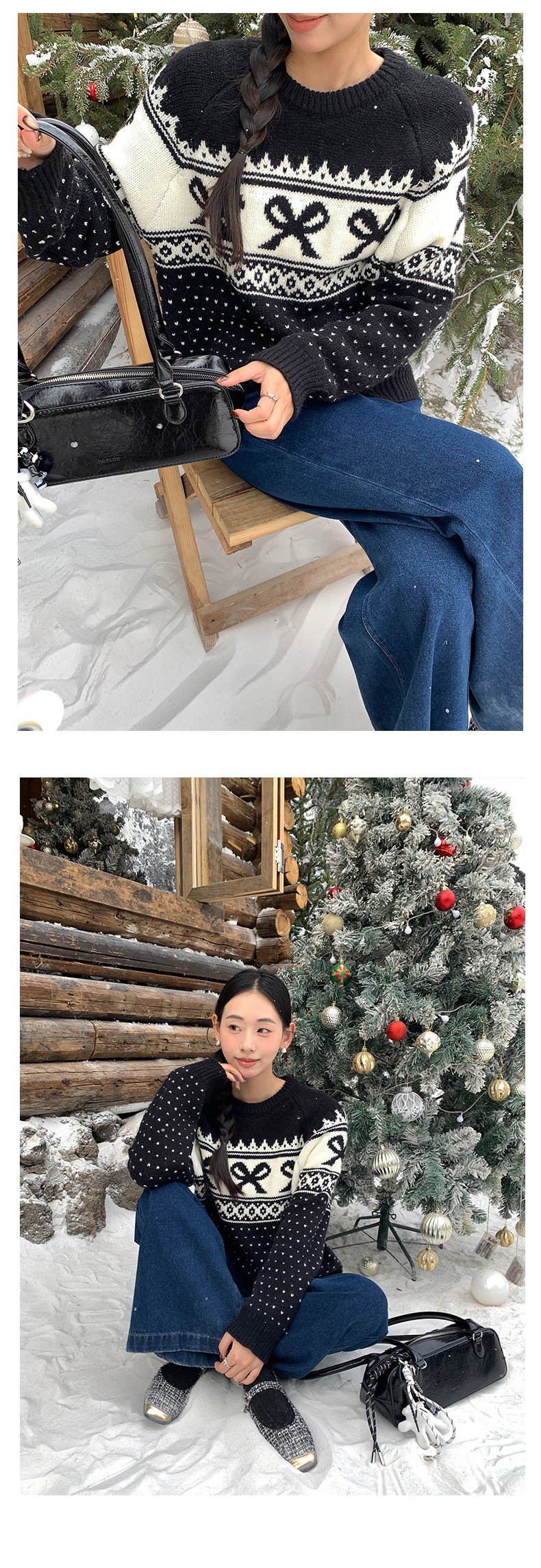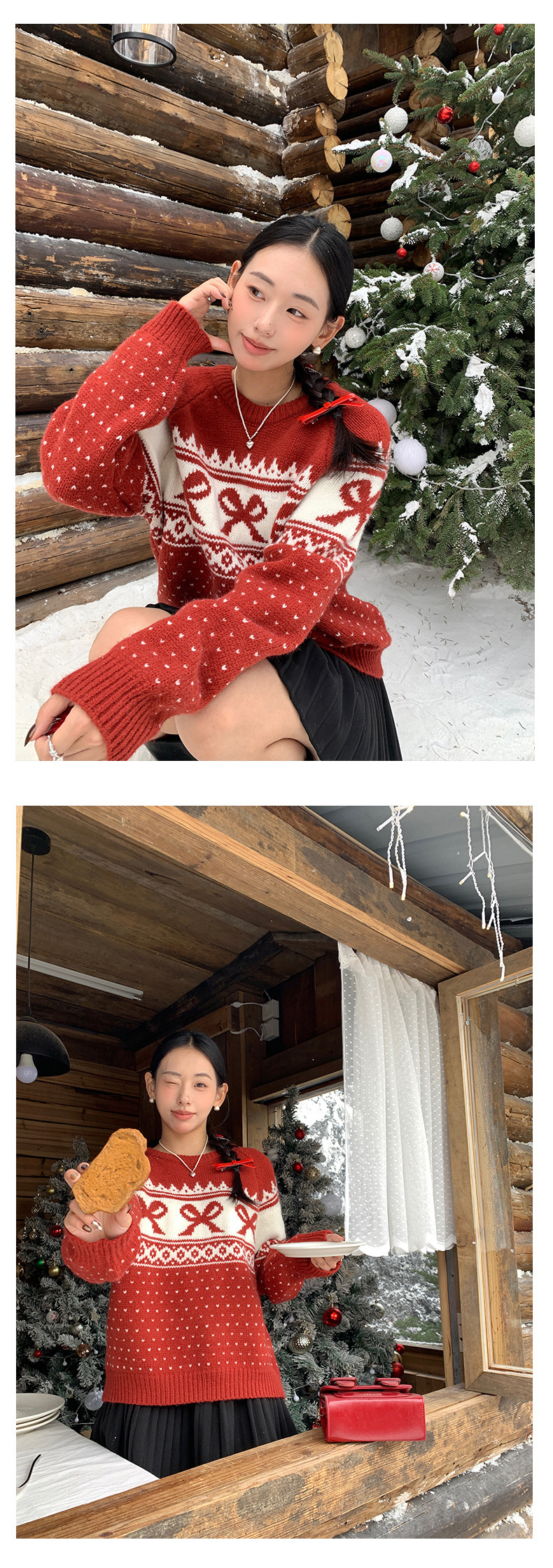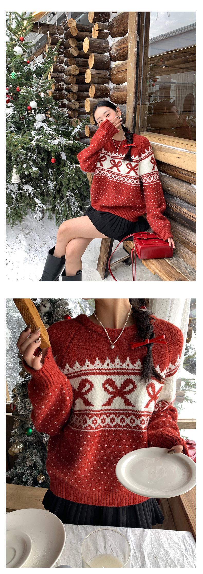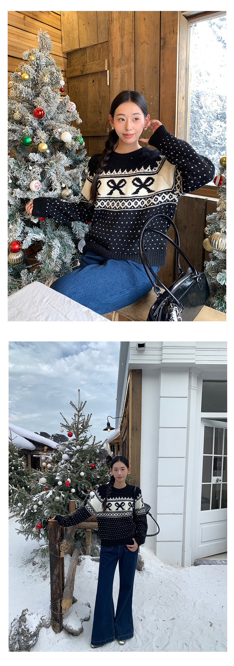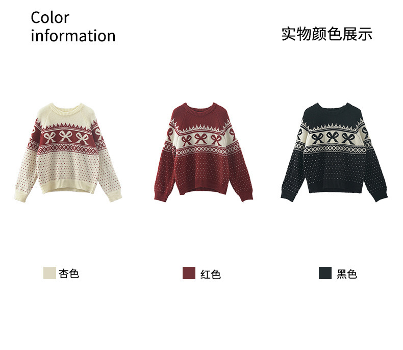 *o-ha-you*【FHZ145MY10060】韓系蝴蝶結提花毛衣2024套頭內搭上衣-3色