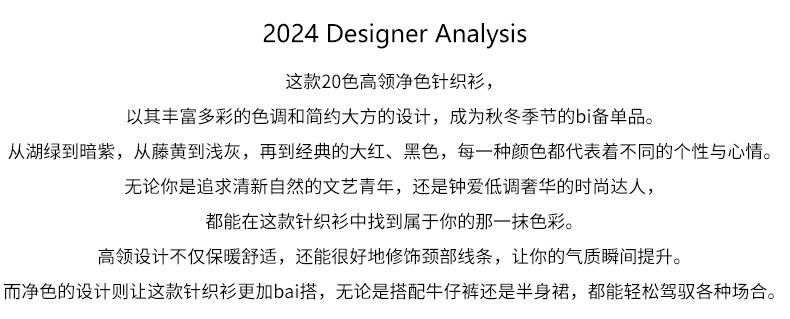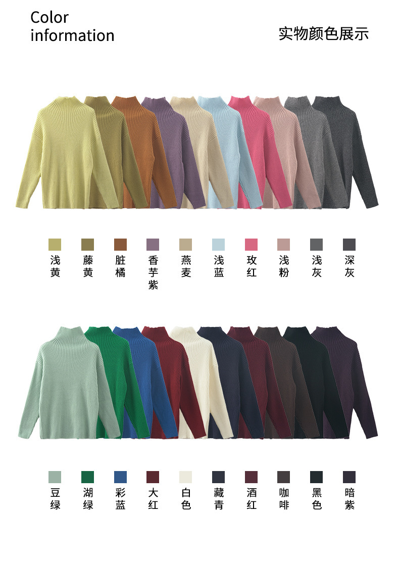 *o-ha-you*【FHZ145MY10069】韓系20色高領淨色針織衫2024年冬季加厚保暖打底上衣