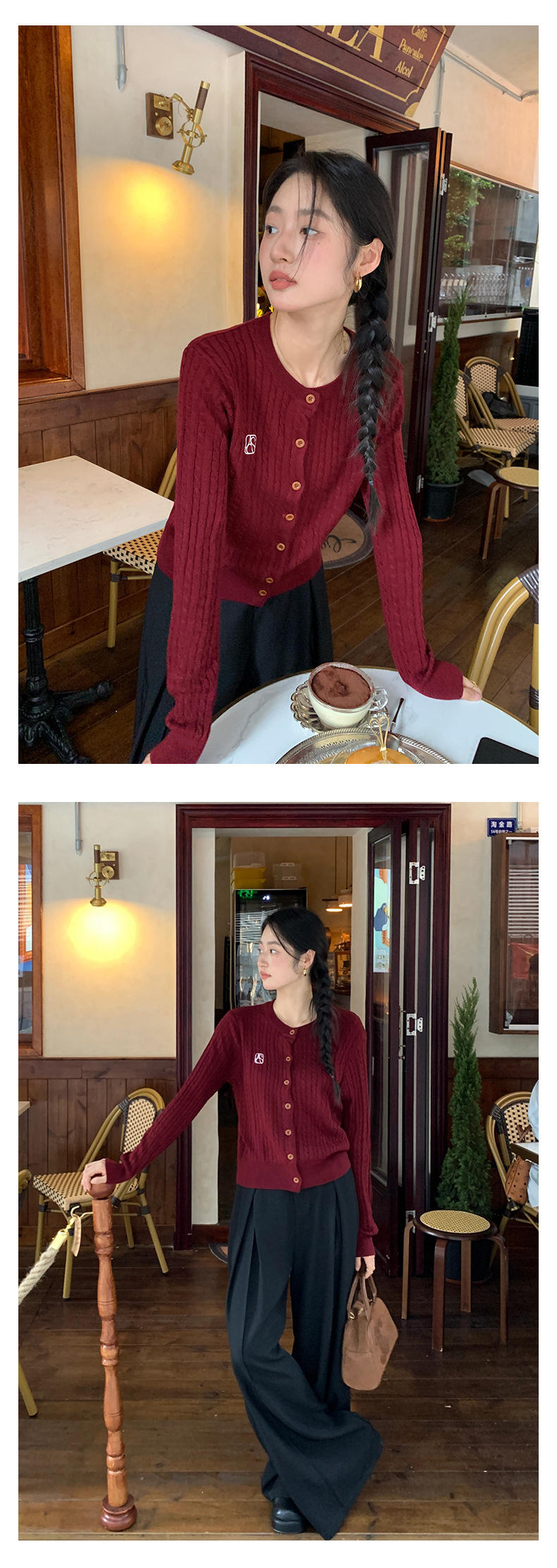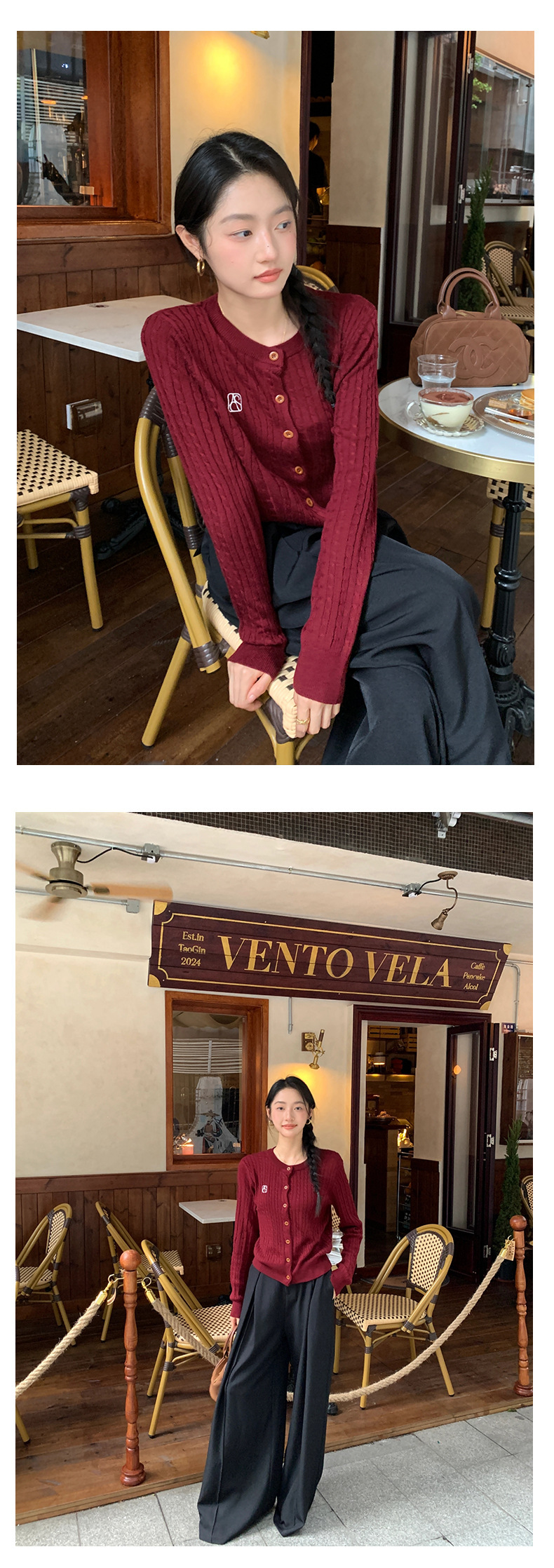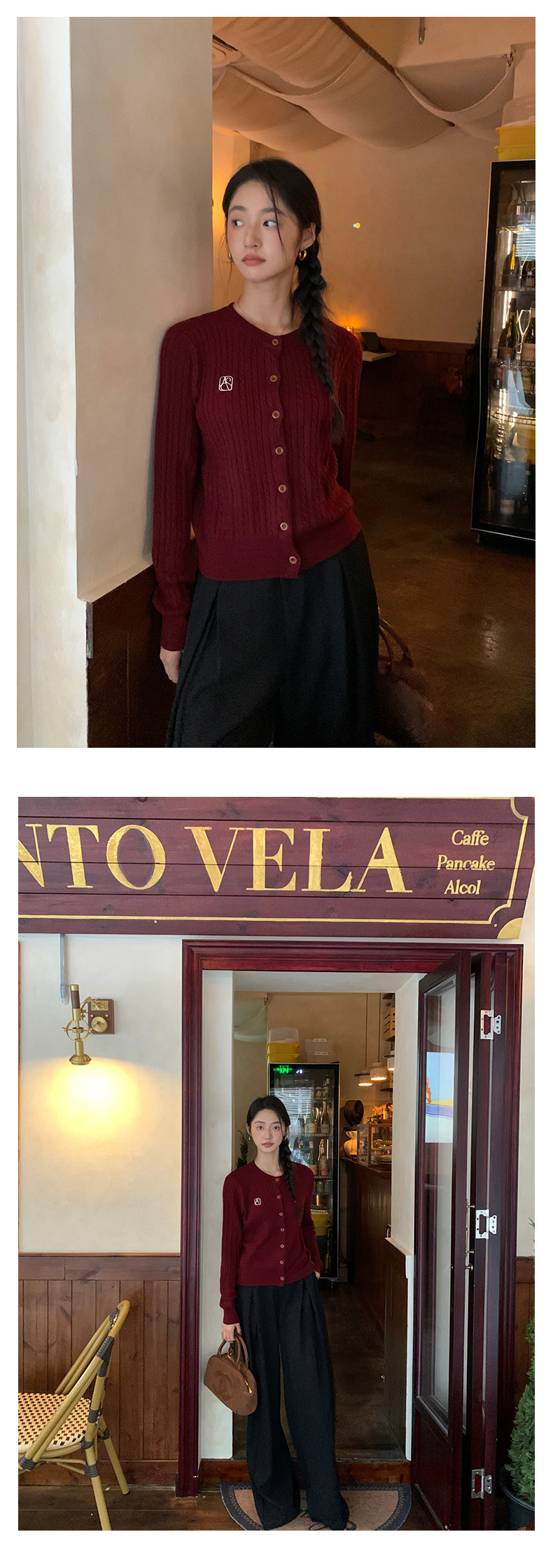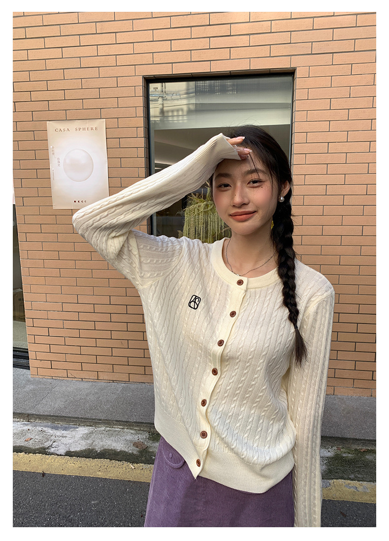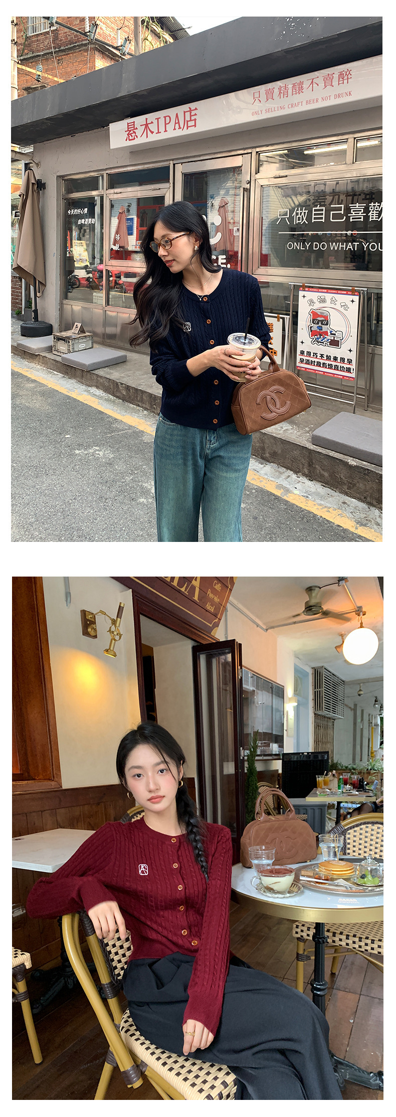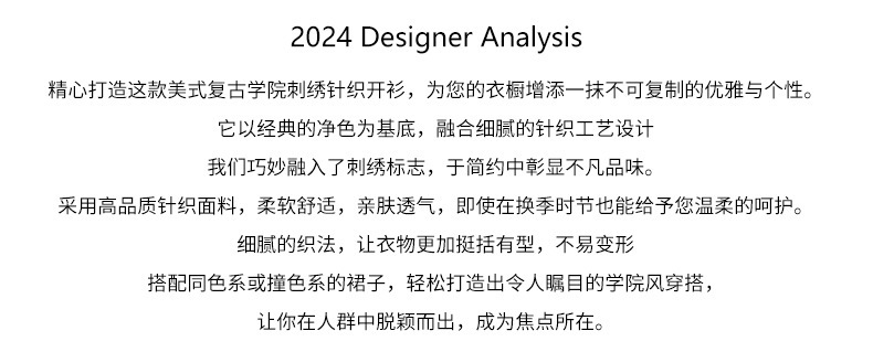 *o-ha-you*【FHZ145MY7092】美式復古學院刺繡針織開襟衫2024冬季正肩圓領長袖外套-4色