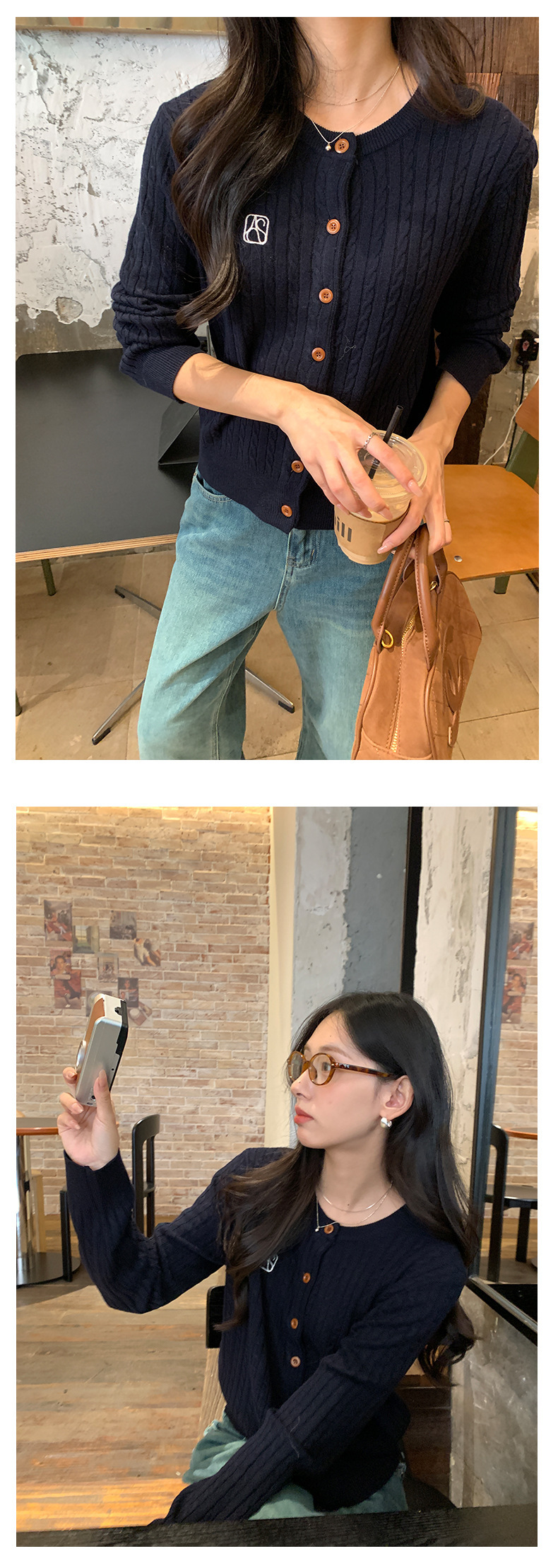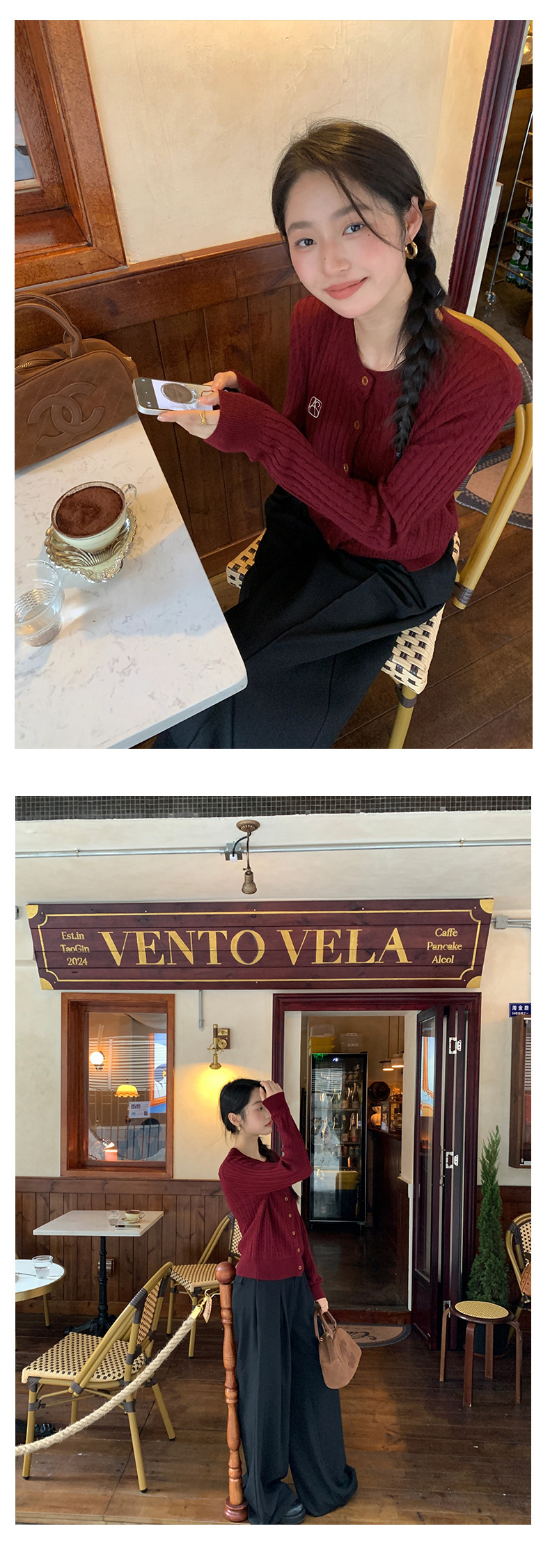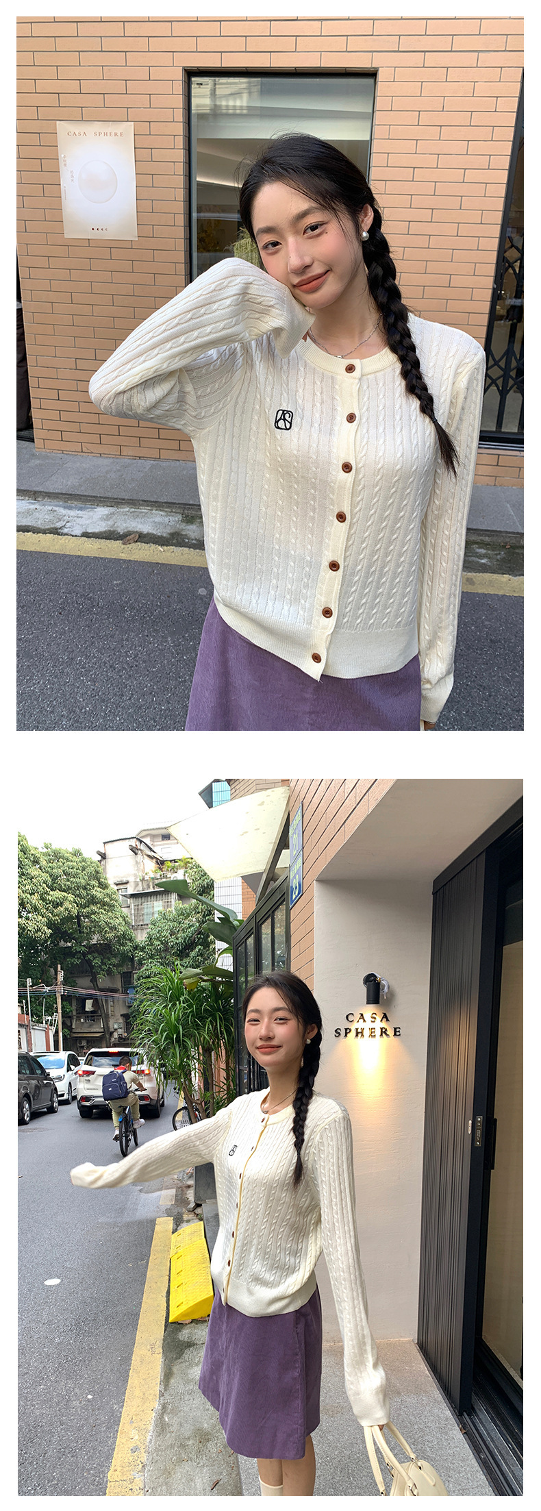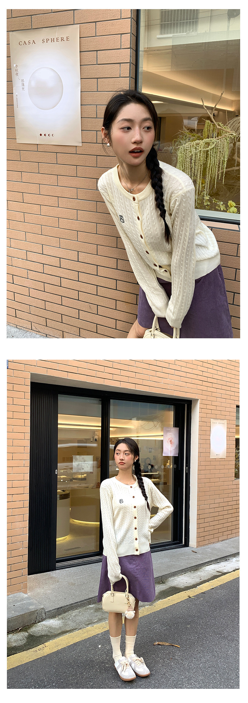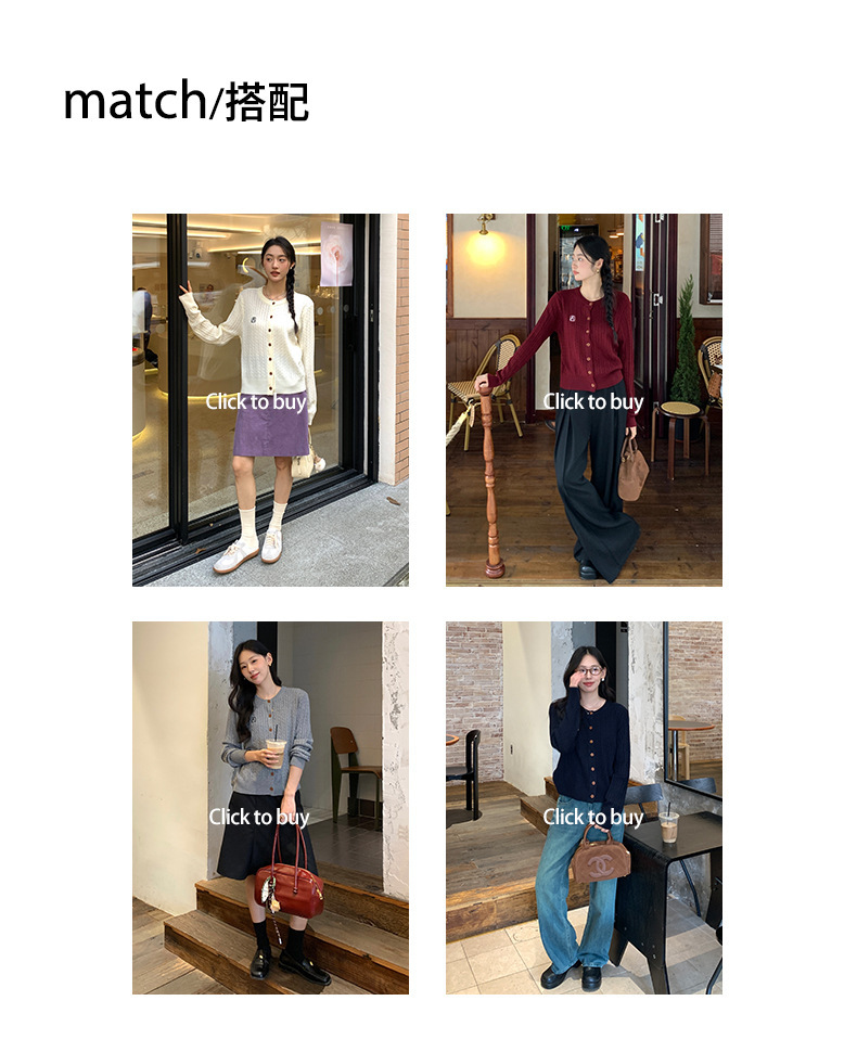 *o-ha-you*【FHZ145MY7092】美式復古學院刺繡針織開襟衫2024冬季正肩圓領長袖外套-4色