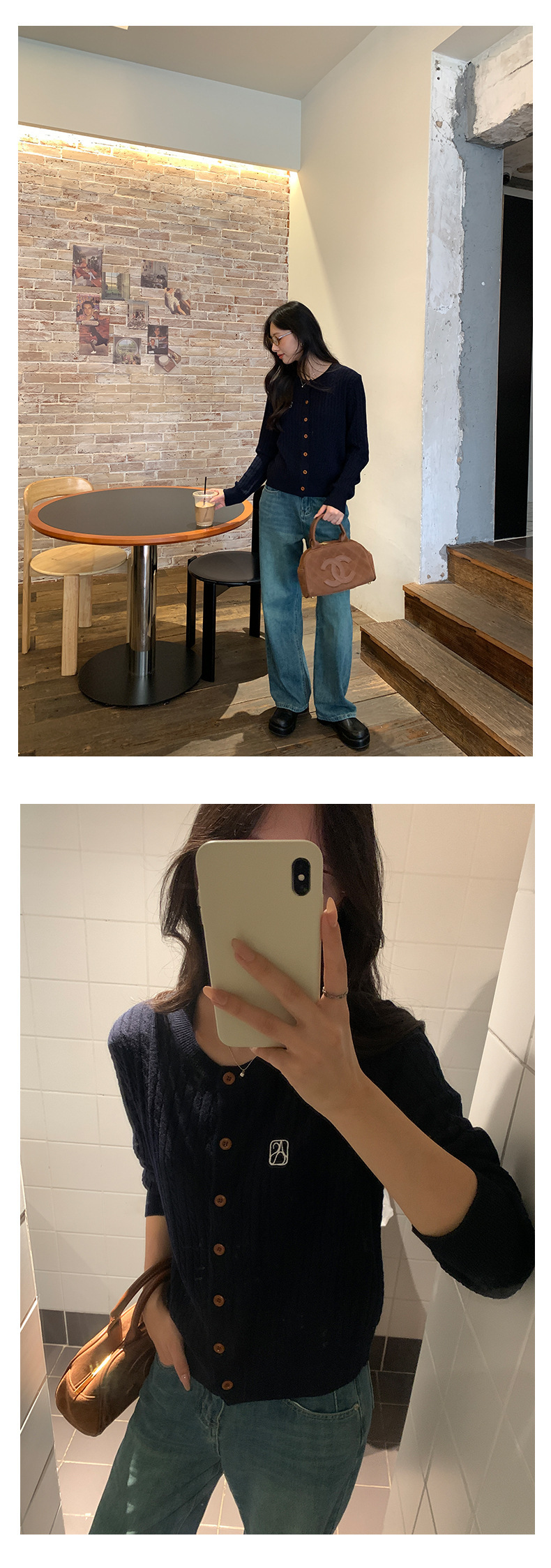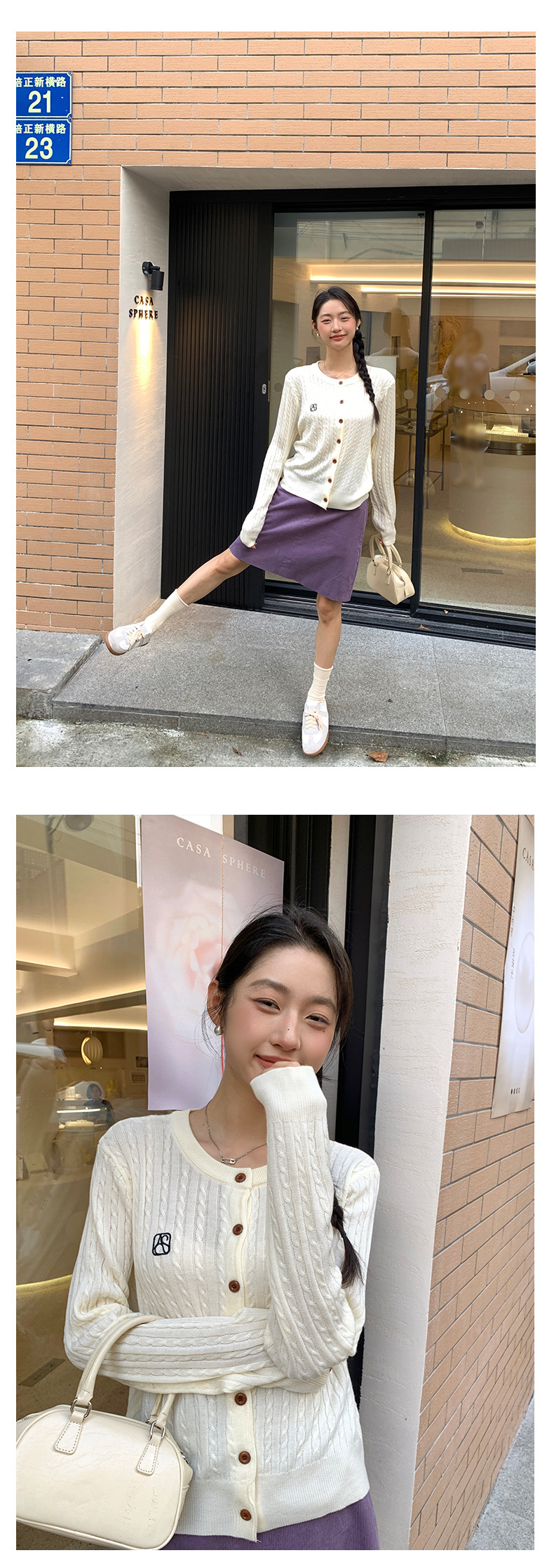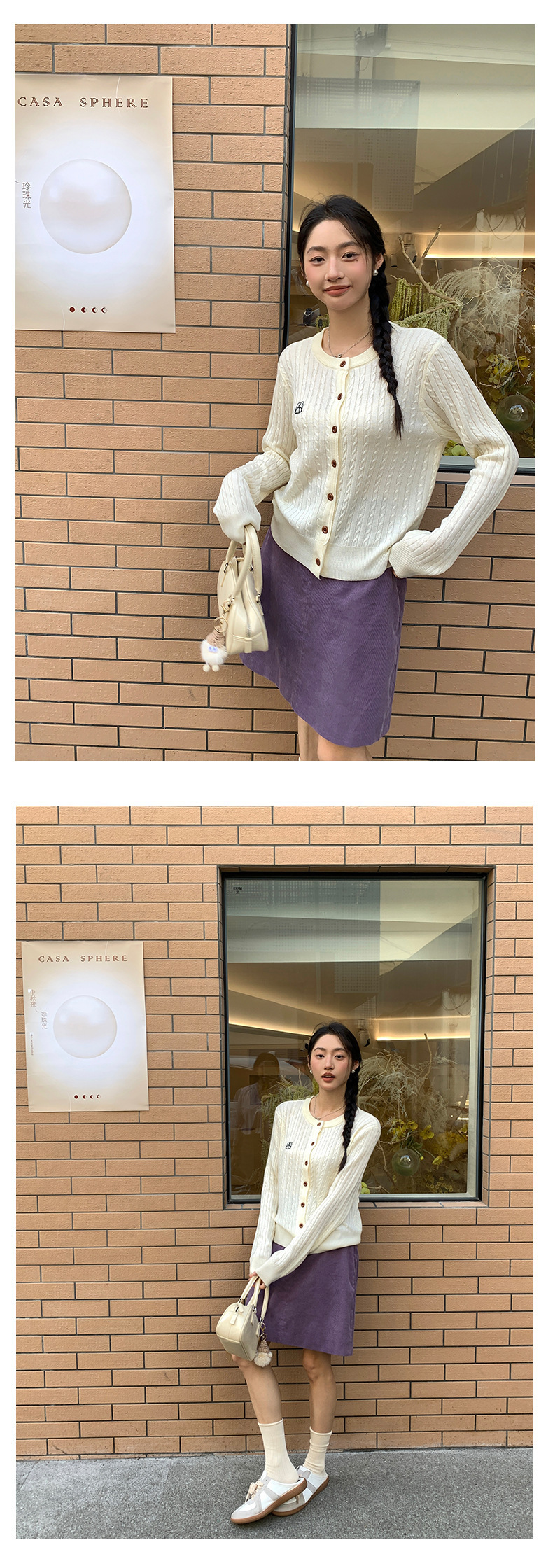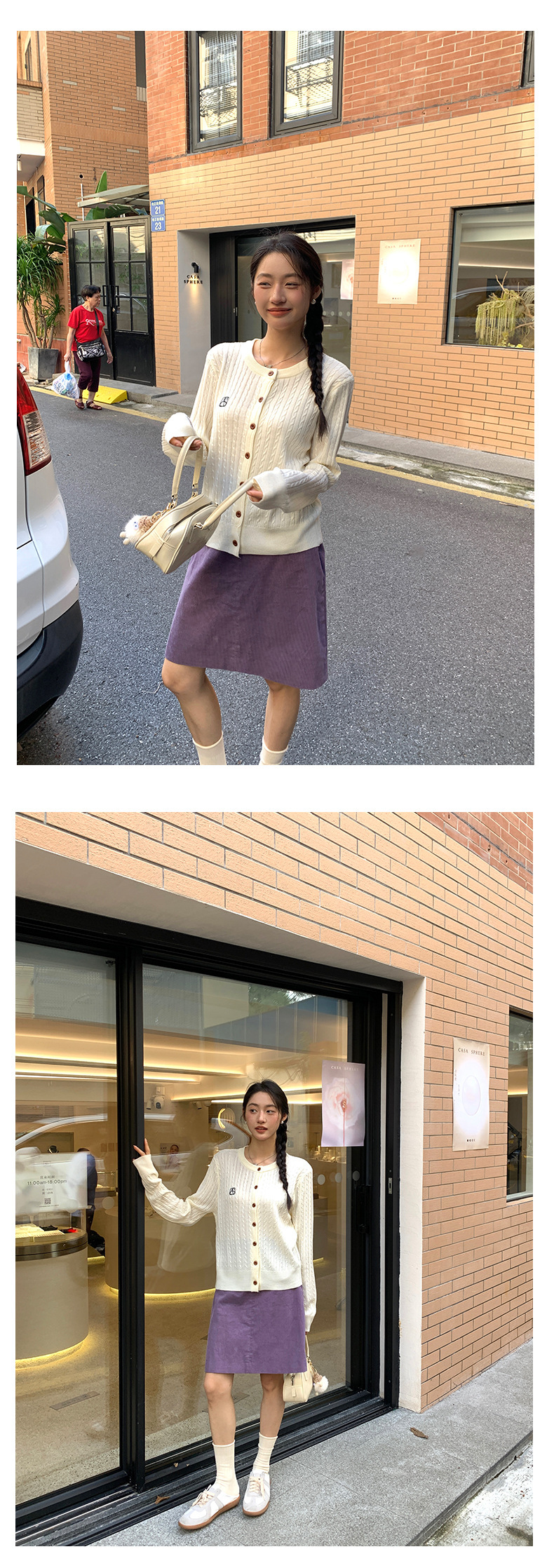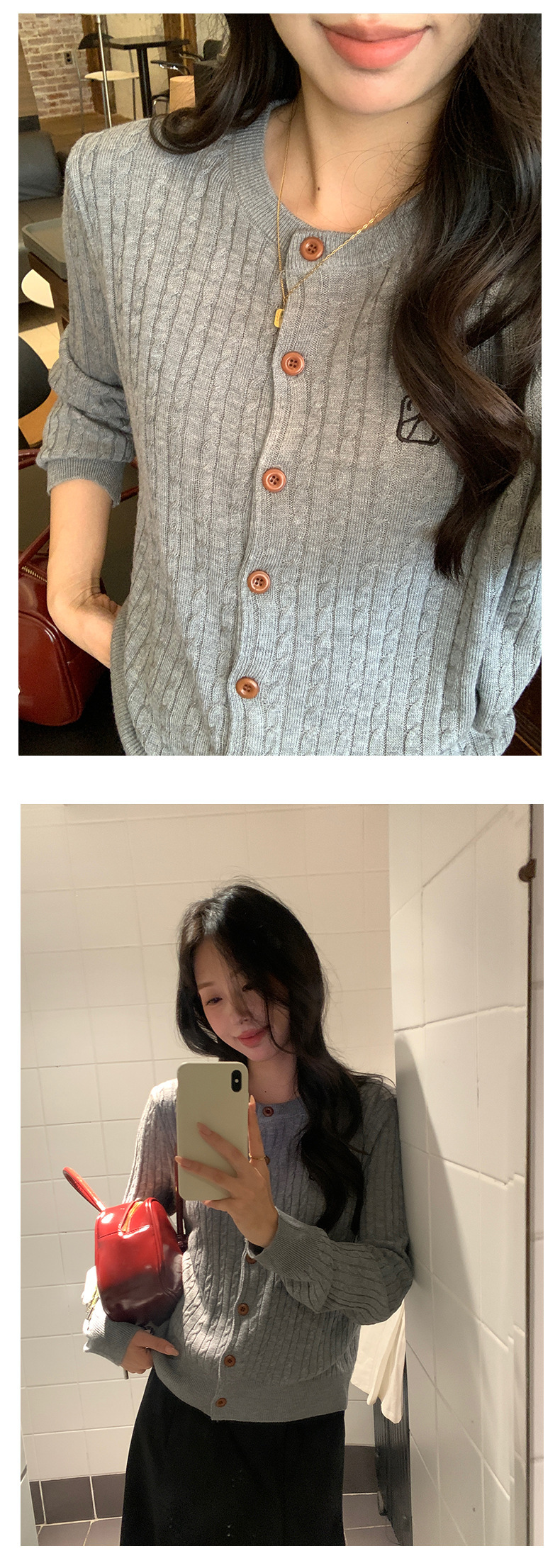 *o-ha-you*【FHZ145MY7092】美式復古學院刺繡針織開襟衫2024冬季正肩圓領長袖外套-4色