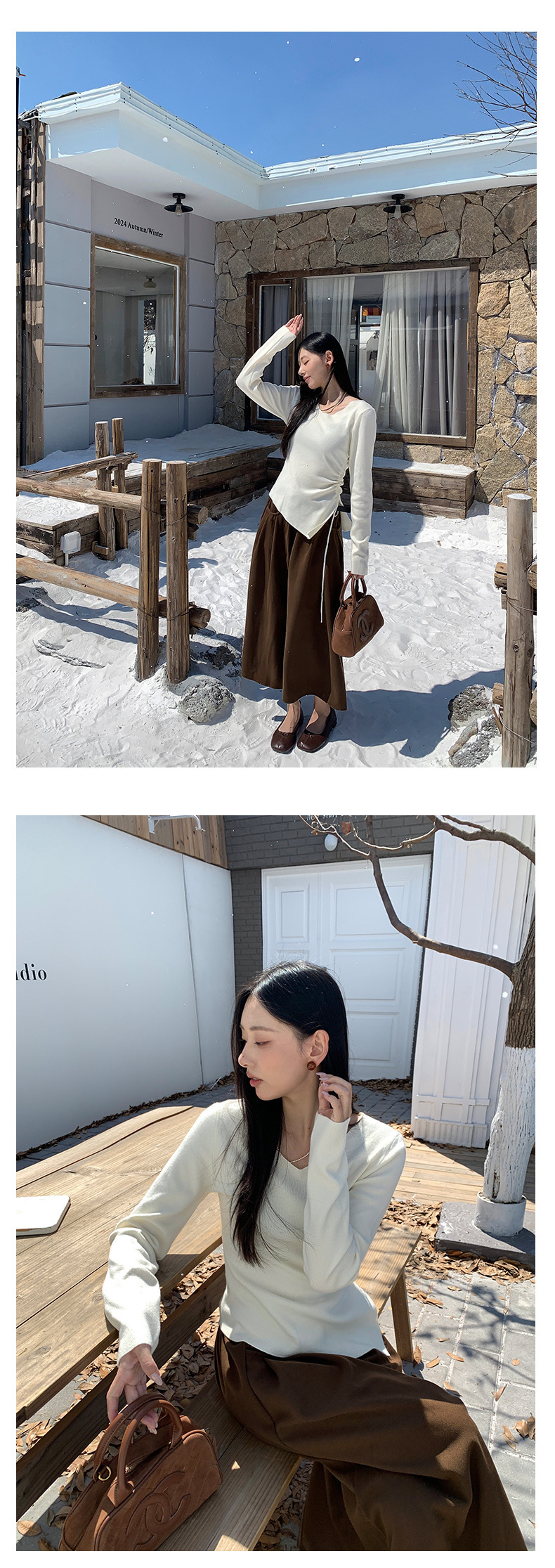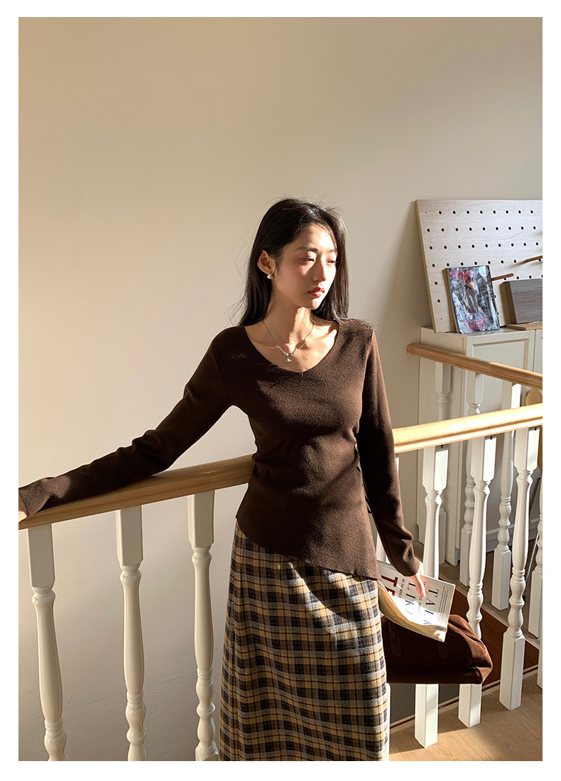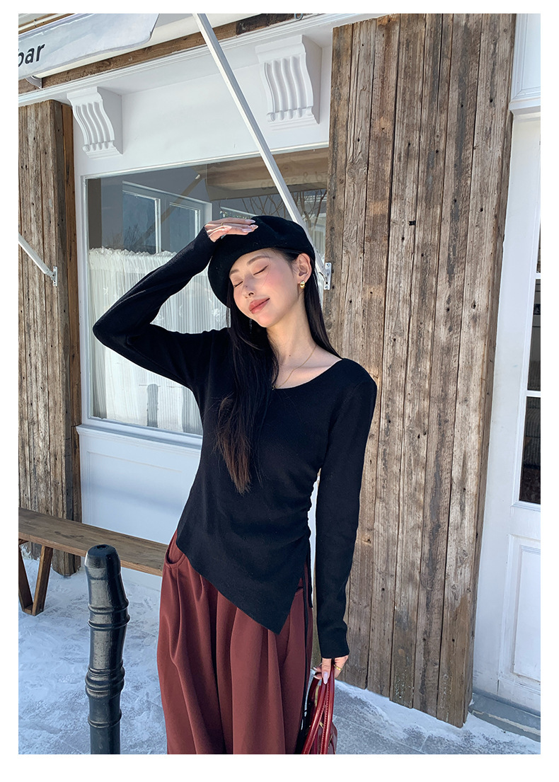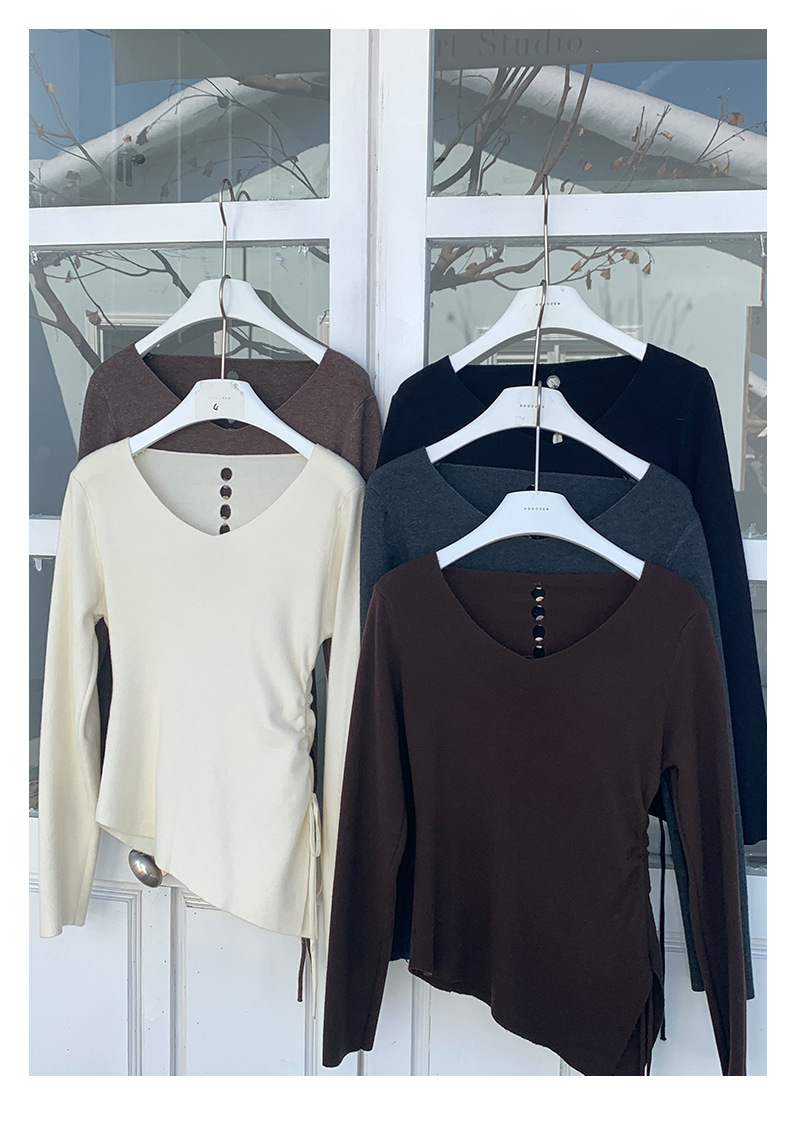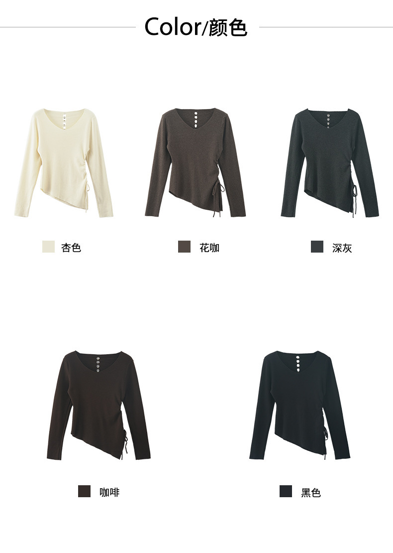 *o-ha-you*【FHZ145MY8003】韓風鏤空不規則V領純色打底2024冬長袖休閒顯瘦上衣-5色