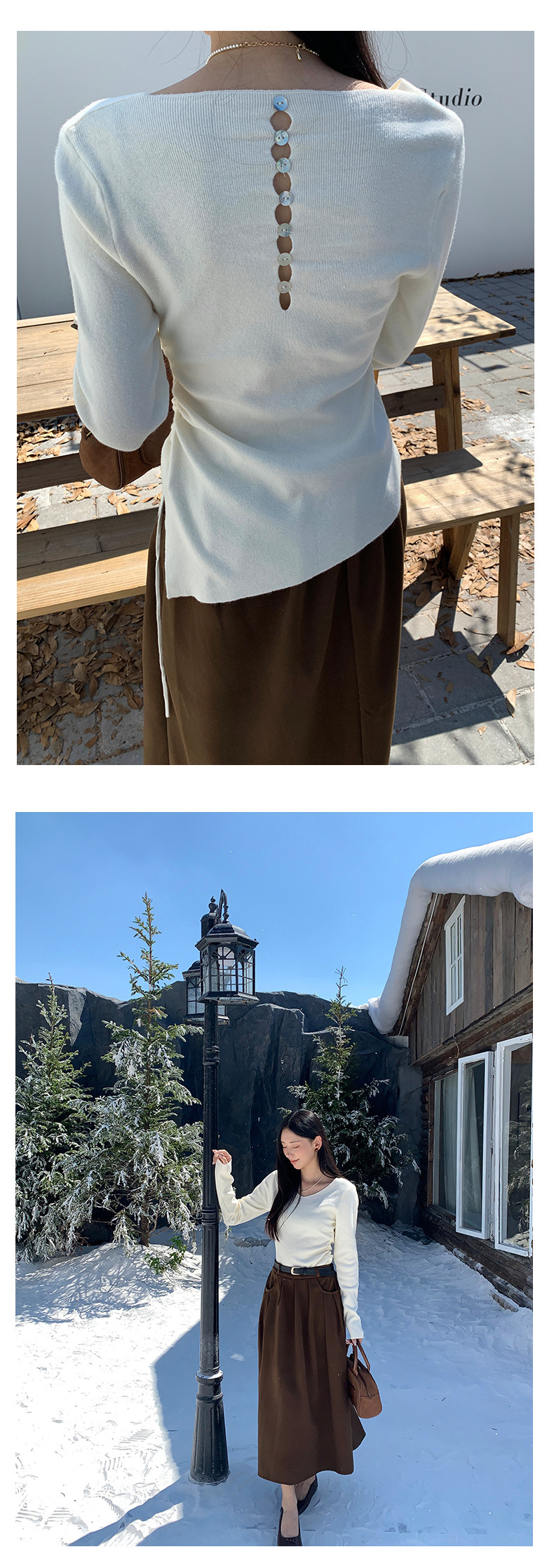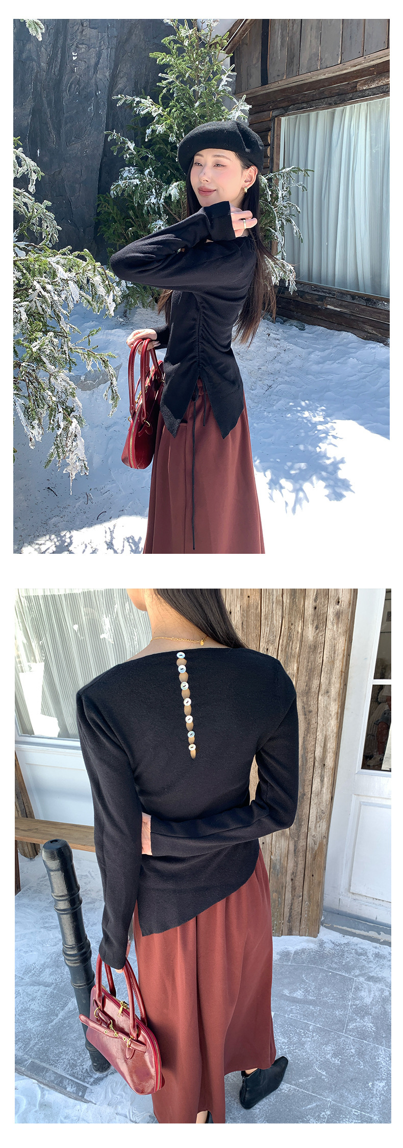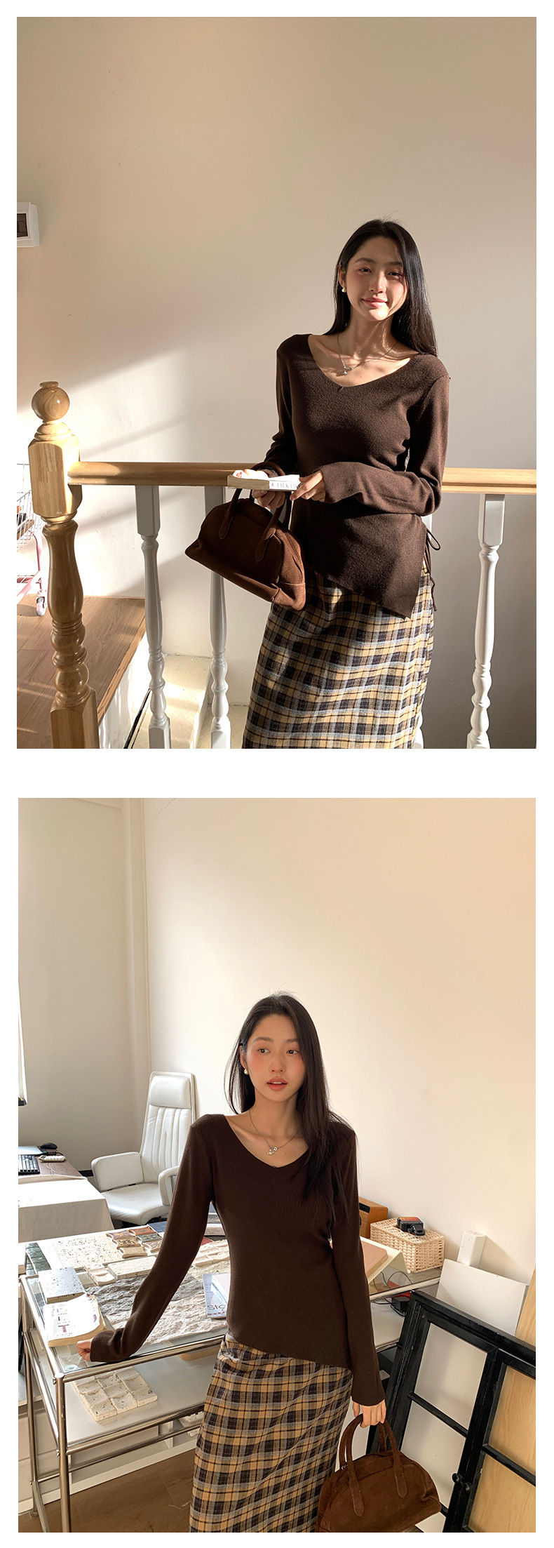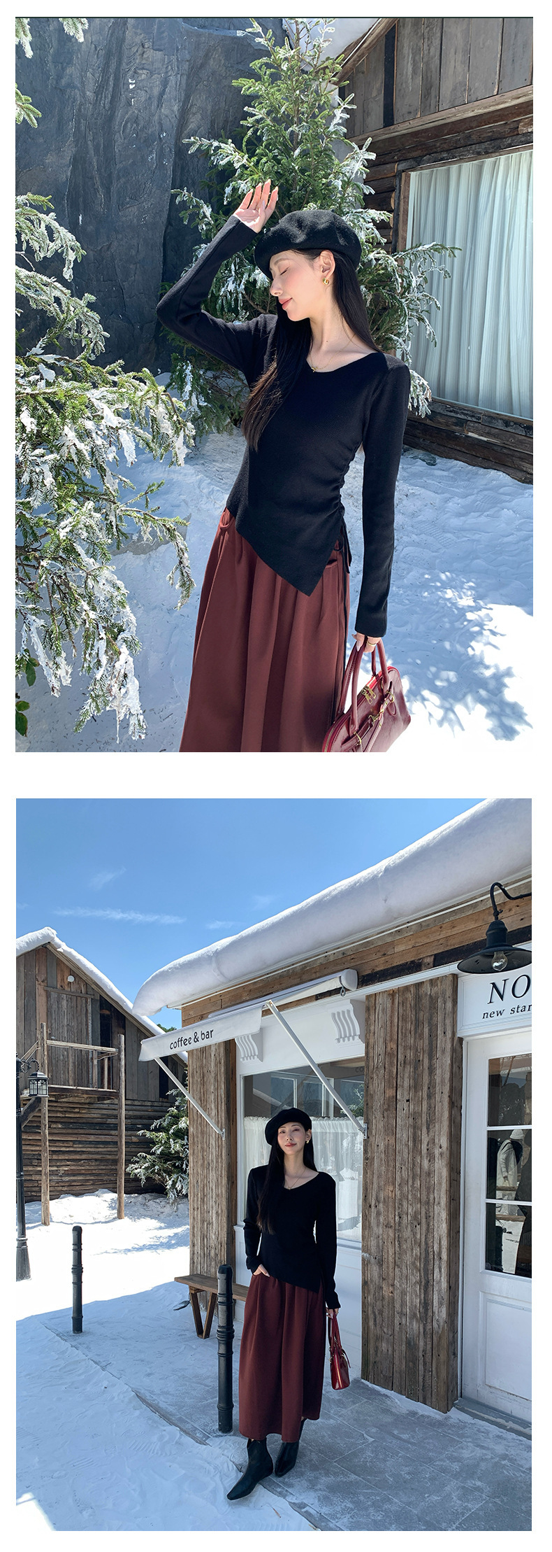 *o-ha-you*【FHZ145MY8003】韓風鏤空不規則V領純色打底2024冬長袖休閒顯瘦上衣-5色