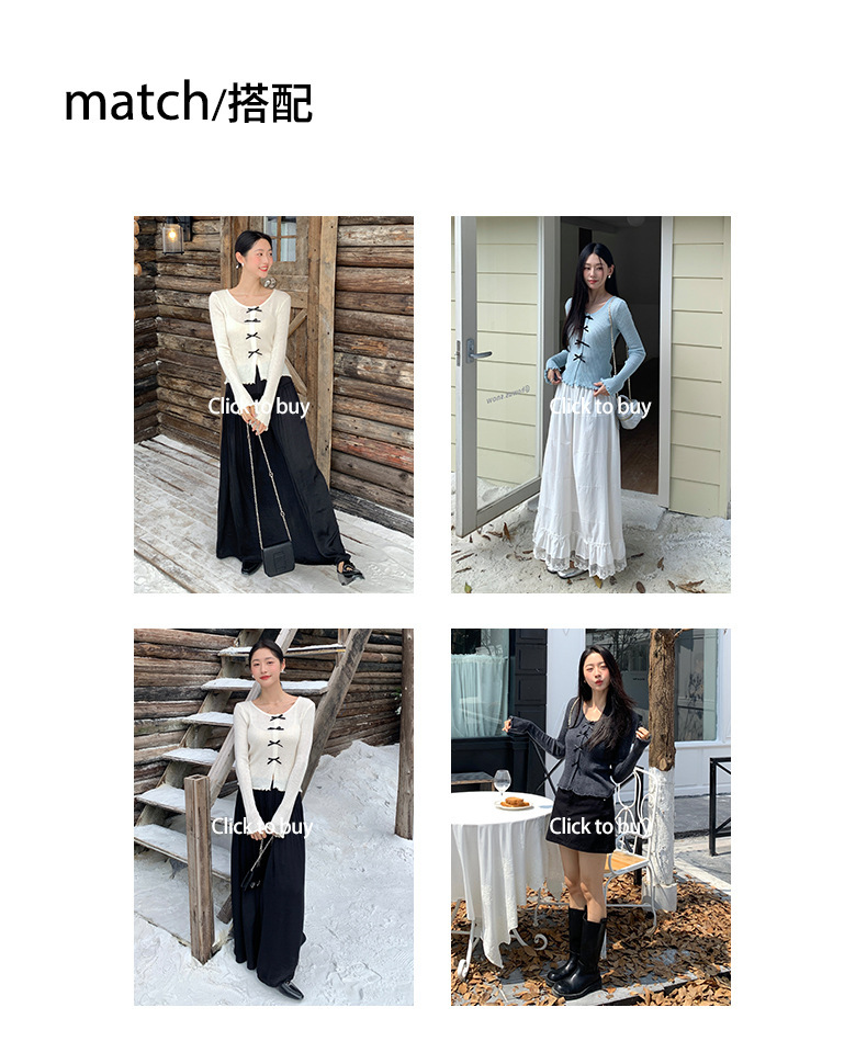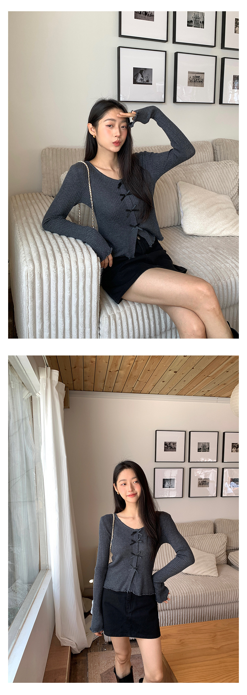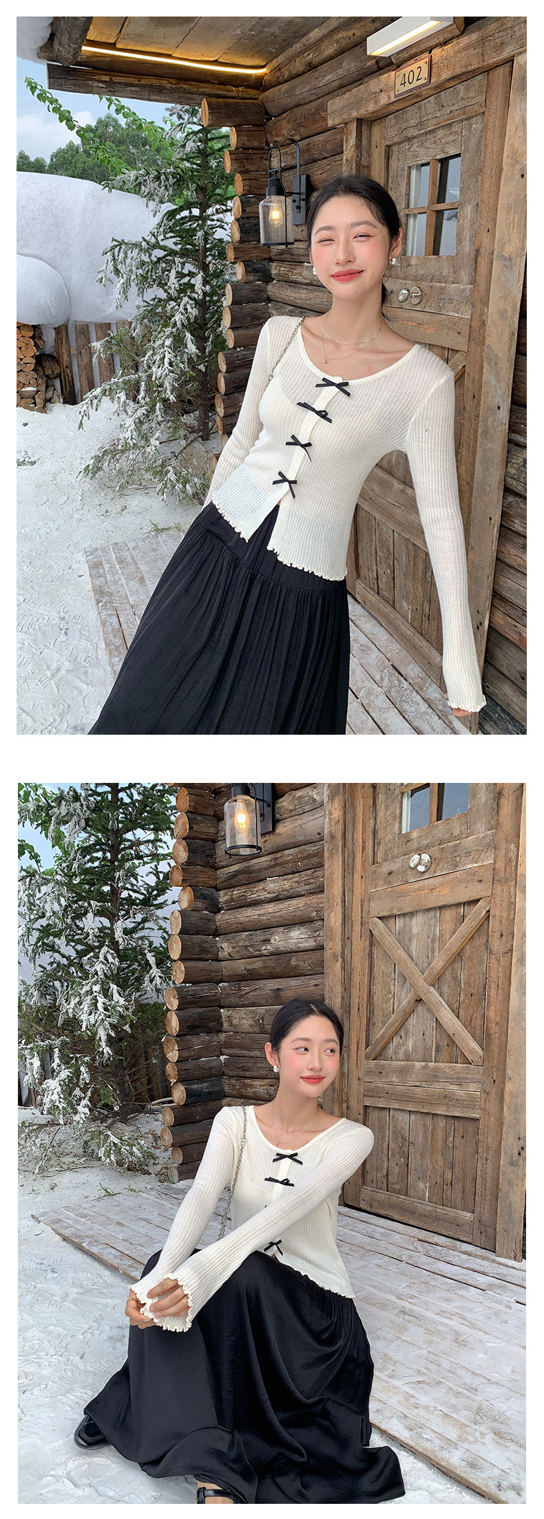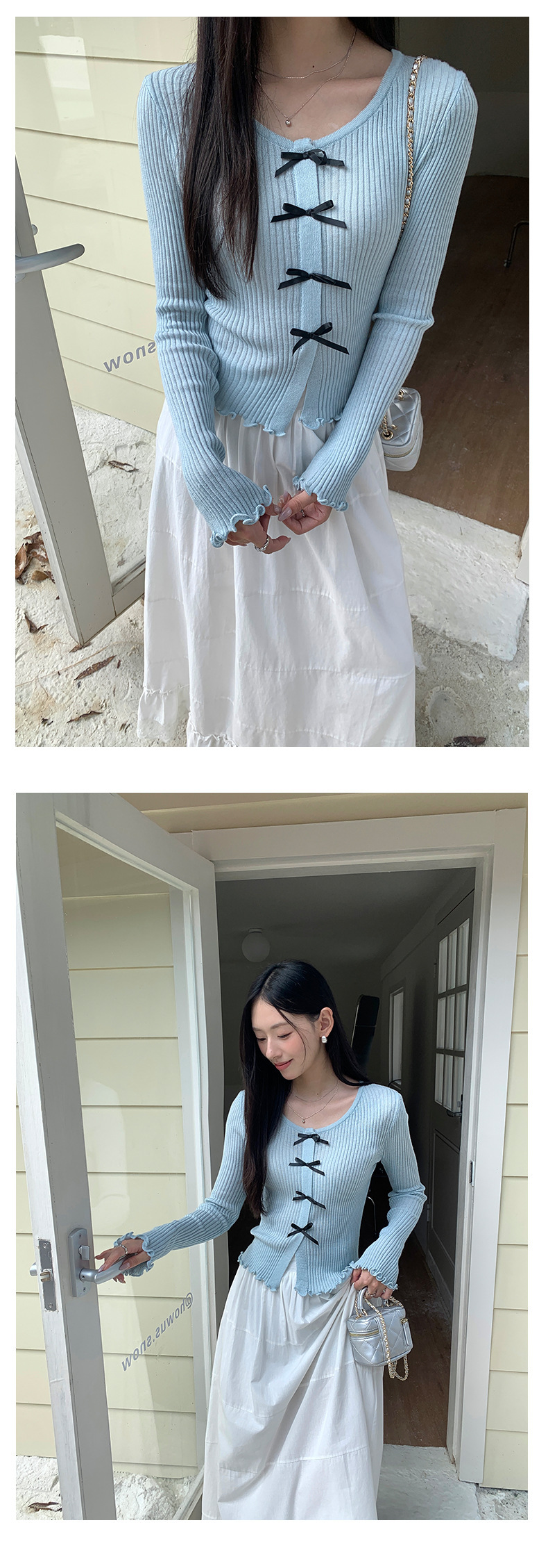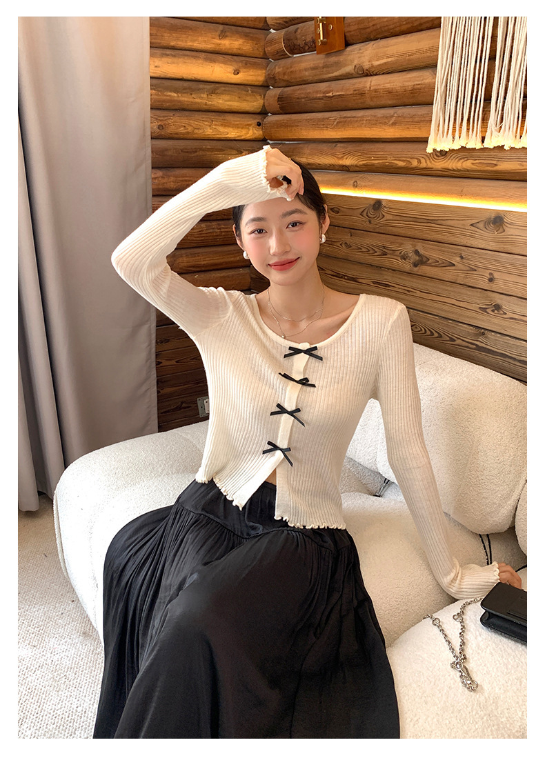 *o-ha-you*【FHZ145MY8009】韓係欲感蝴蝶結打底針織衫2024年冬季T恤長袖顯瘦-3色