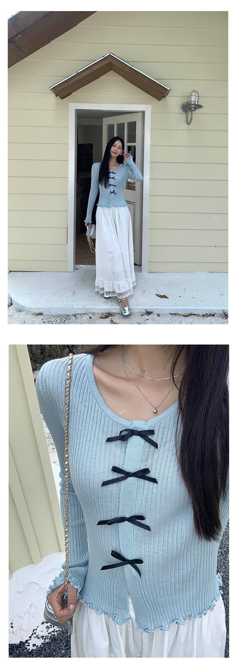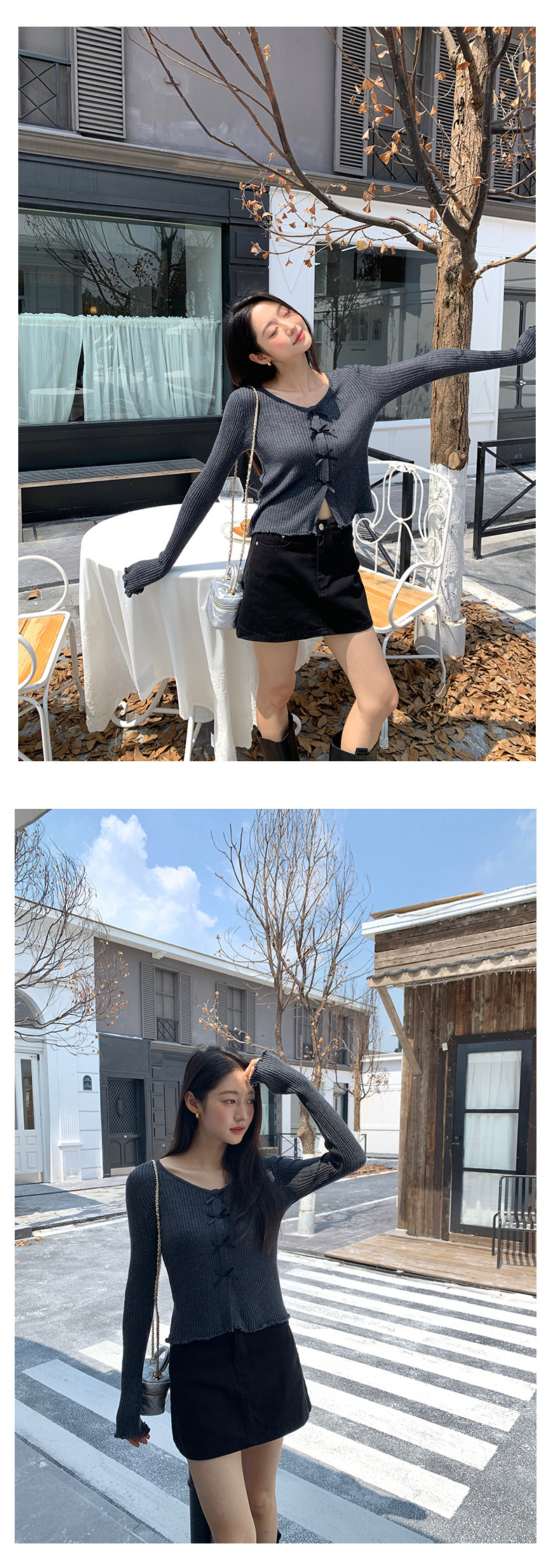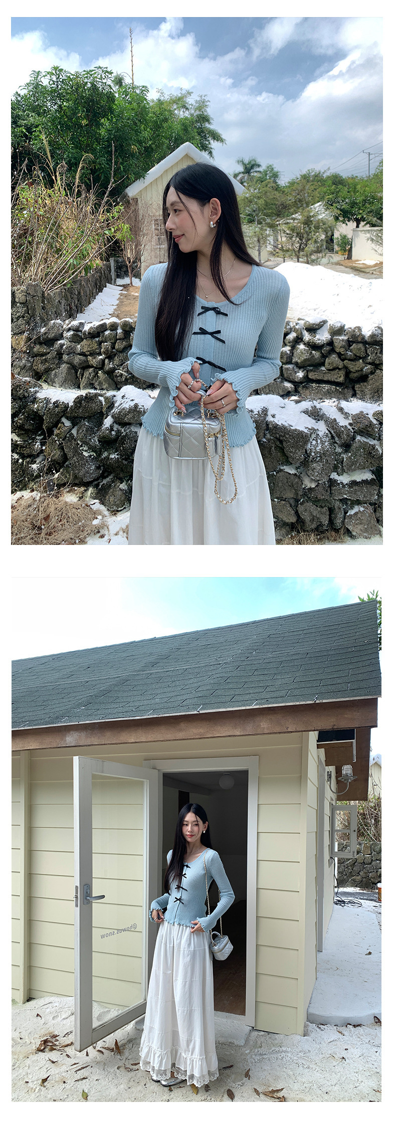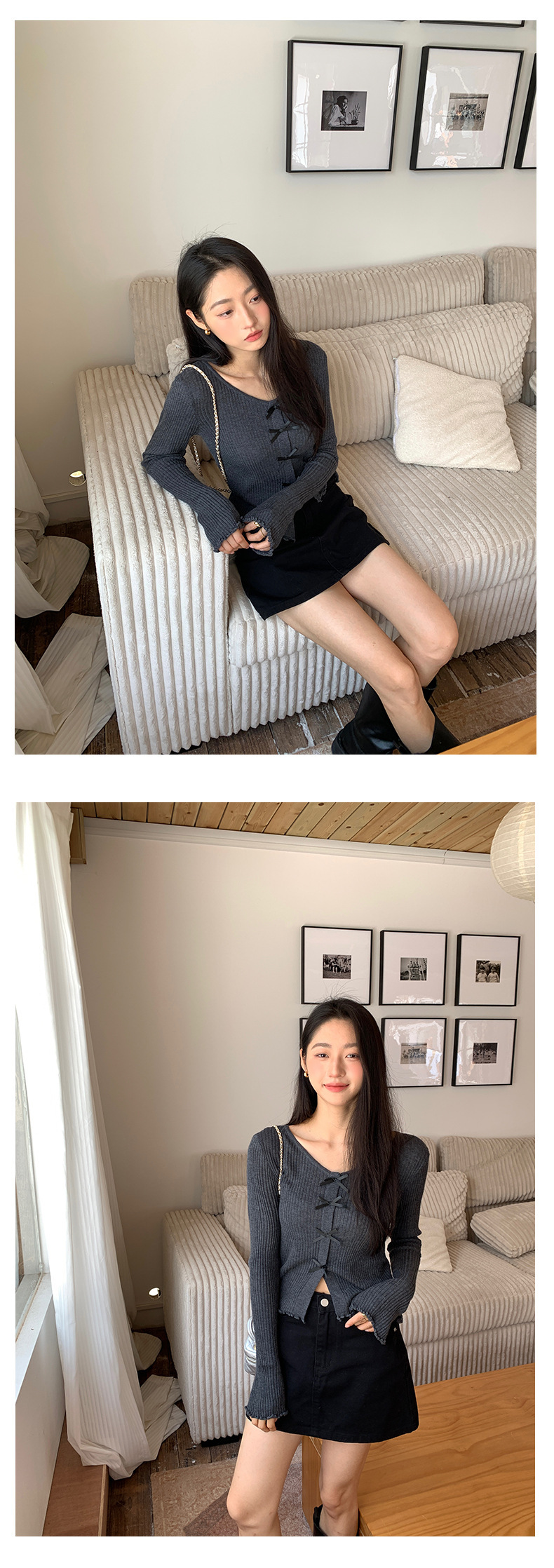 *o-ha-you*【FHZ145MY8009】韓係欲感蝴蝶結打底針織衫2024年冬季T恤長袖顯瘦-3色