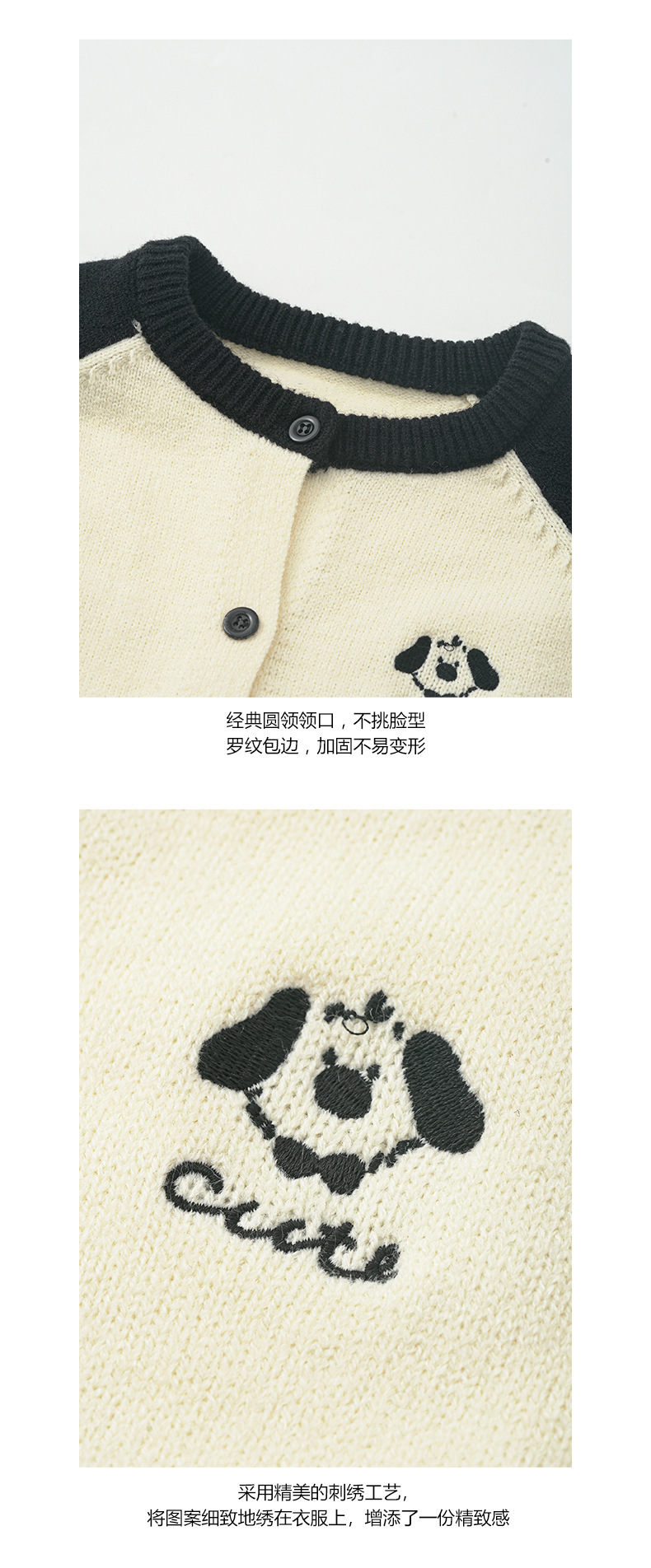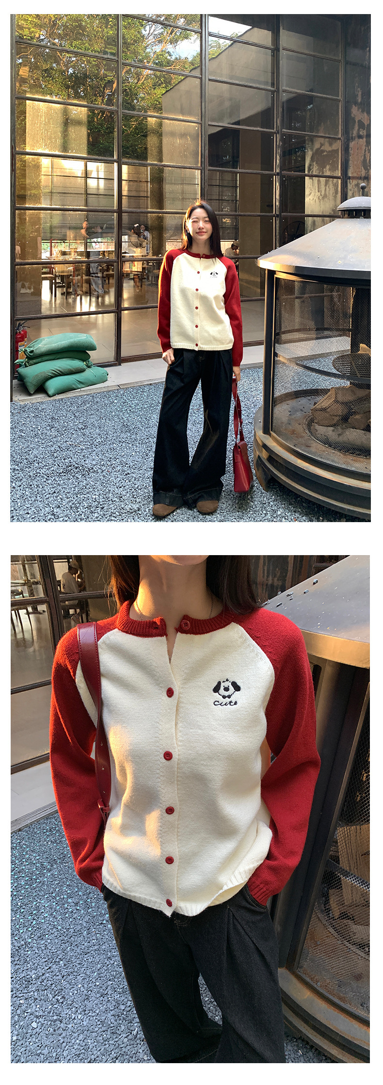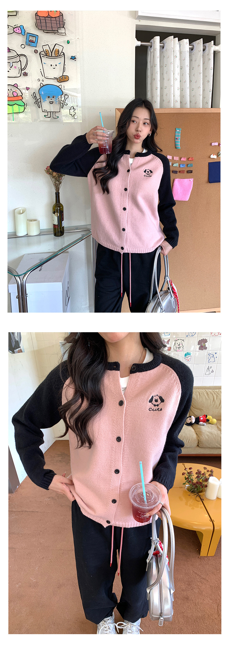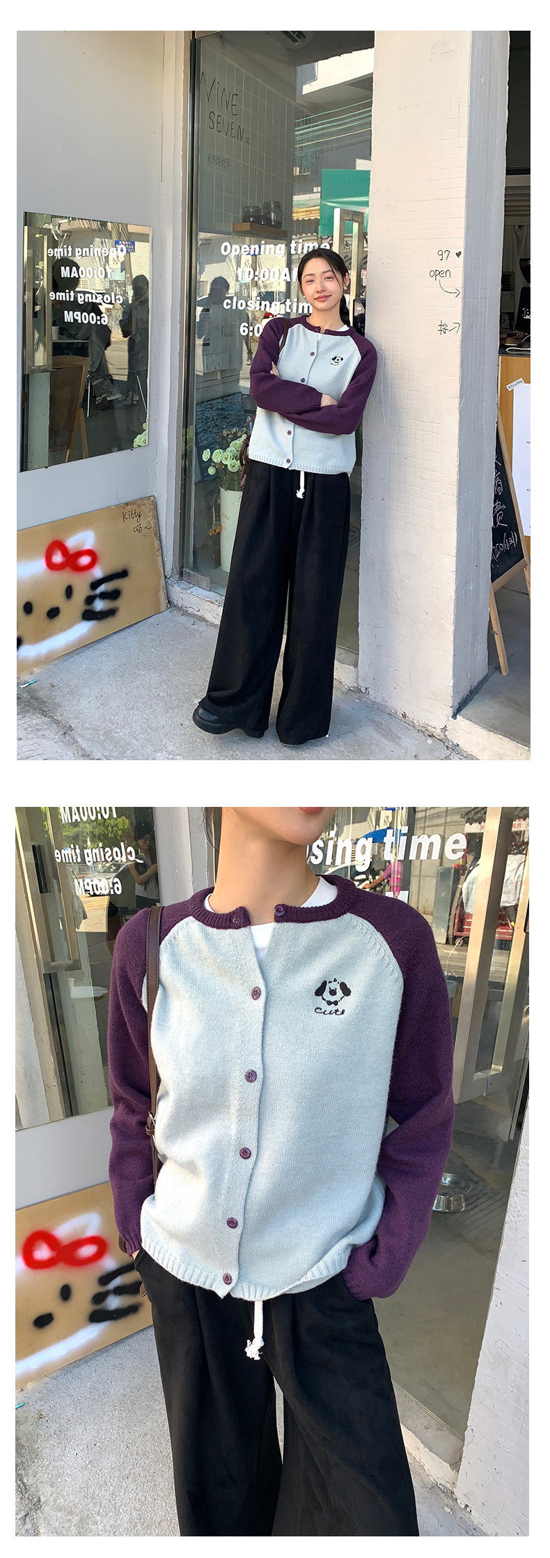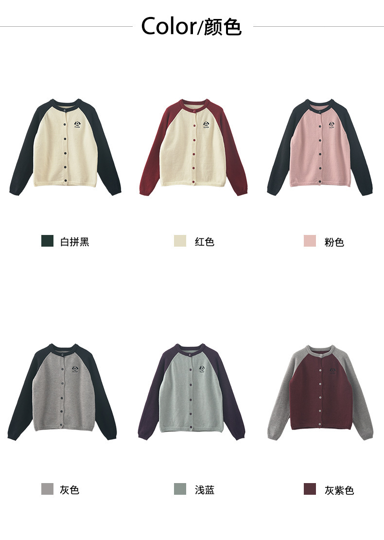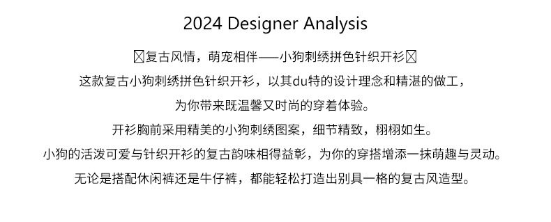 *o-ha-you*【FHZ145MY9063】復古小狗刺繡拼色針織開襟衫2024年冬季寬鬆休閒減齡上衣外套-6色