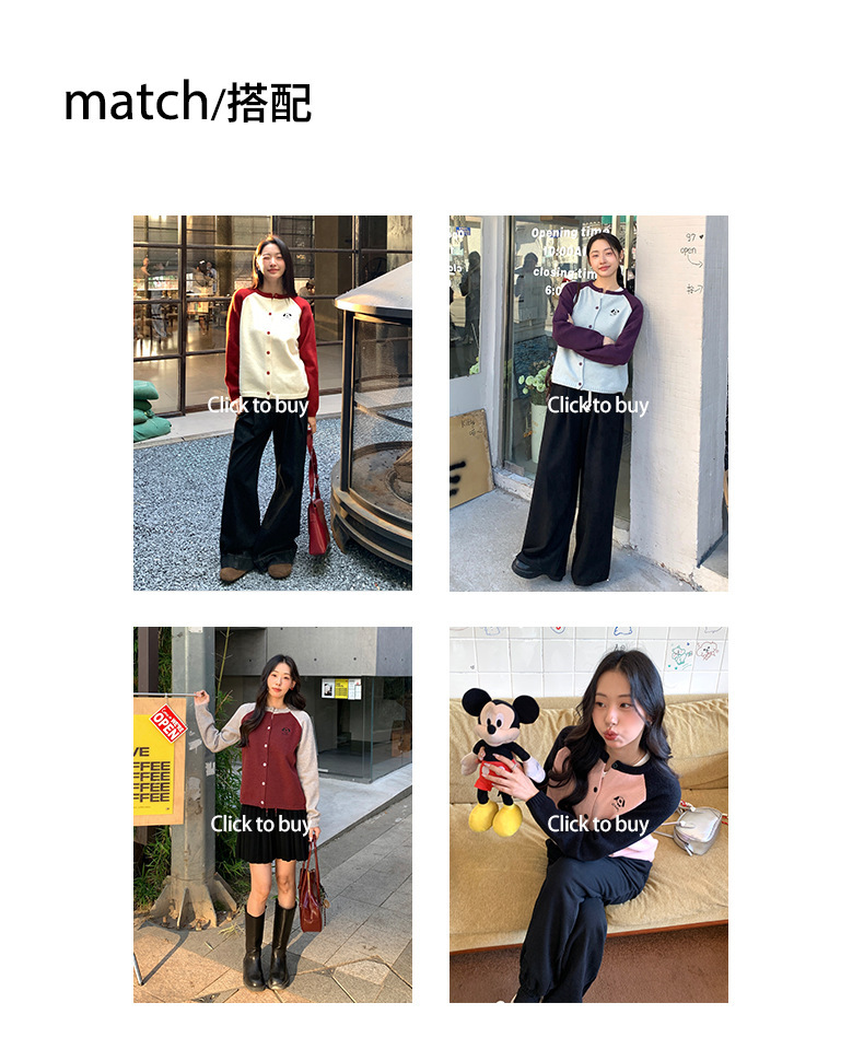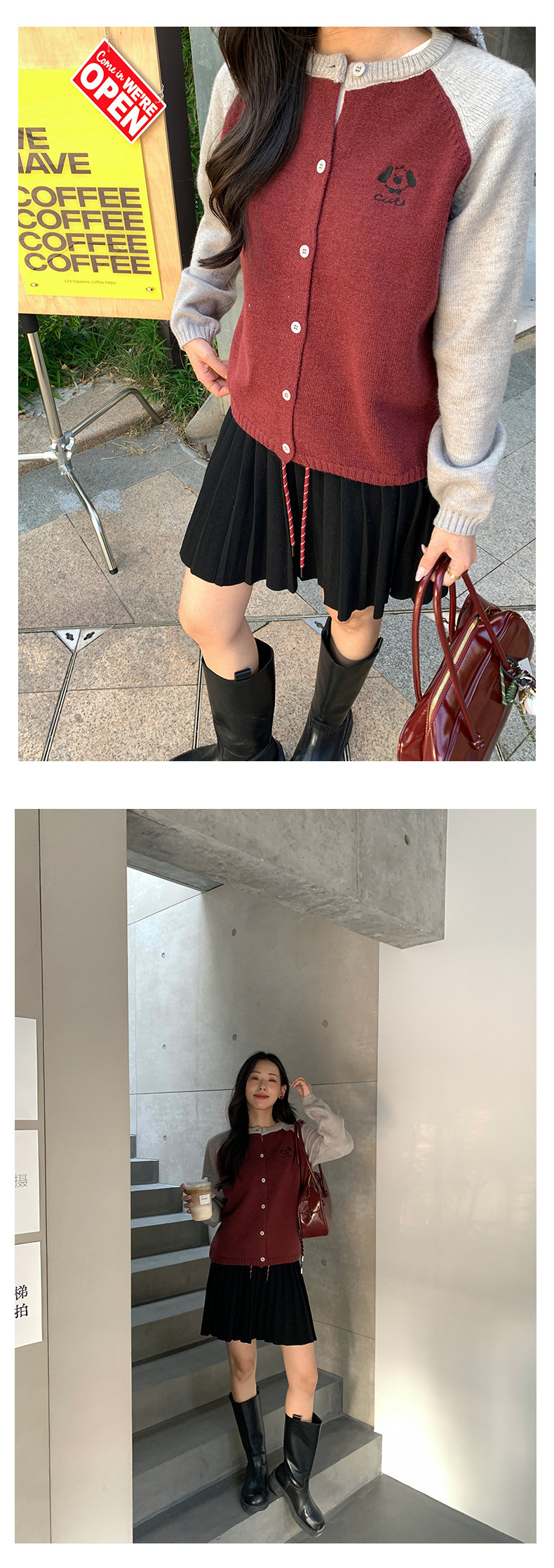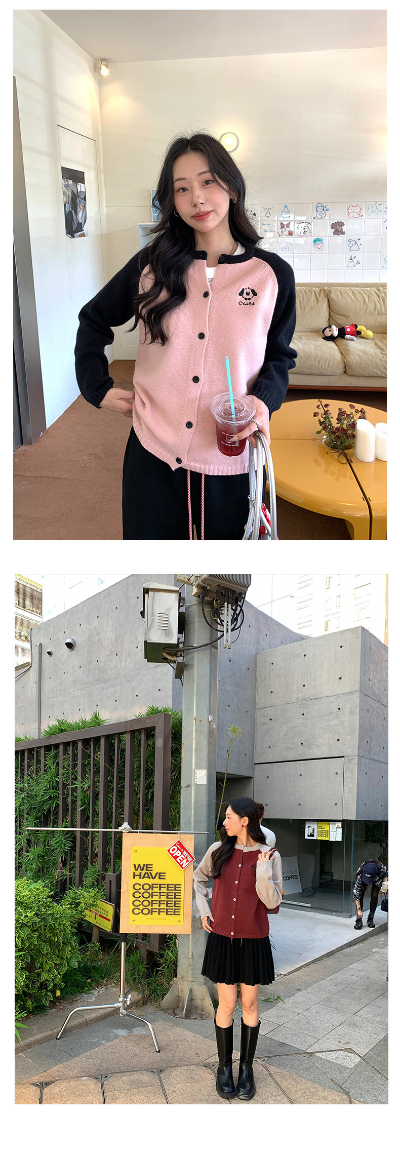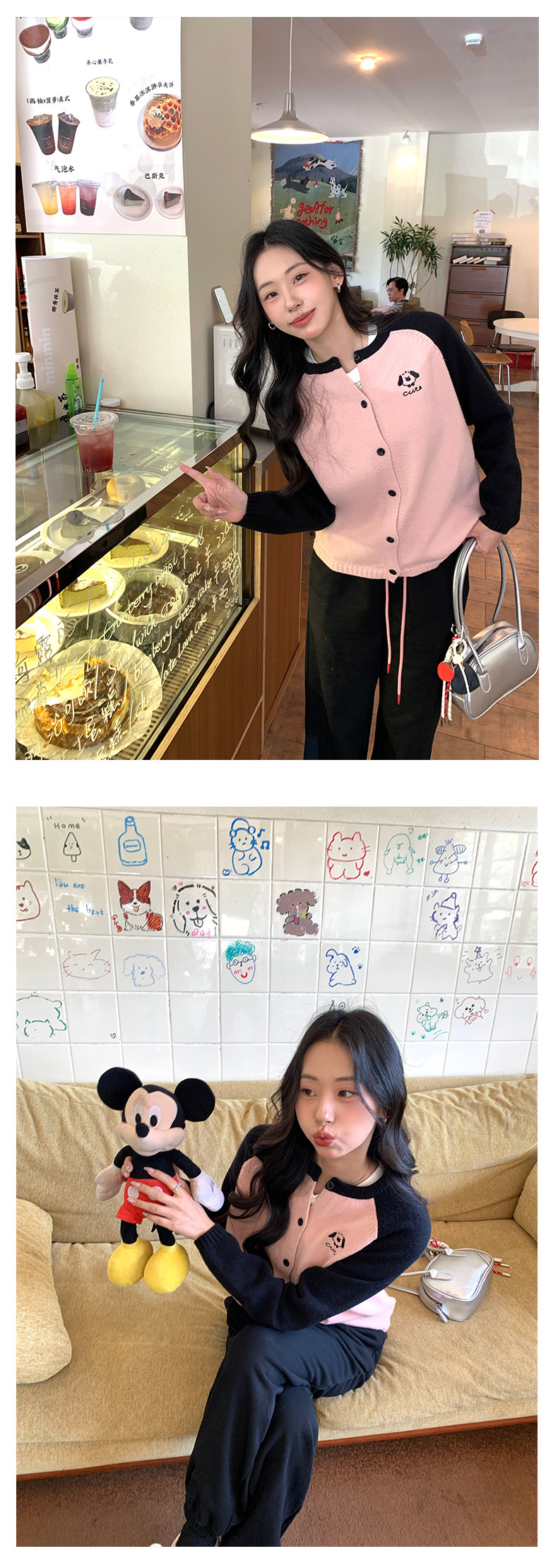 *o-ha-you*【FHZ145MY9063】復古小狗刺繡拼色針織開襟衫2024年冬季寬鬆休閒減齡上衣外套-6色