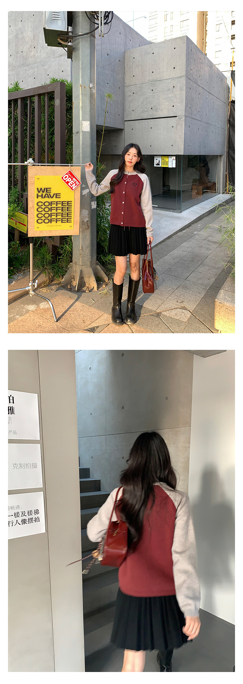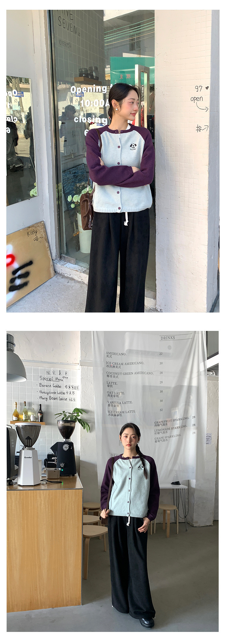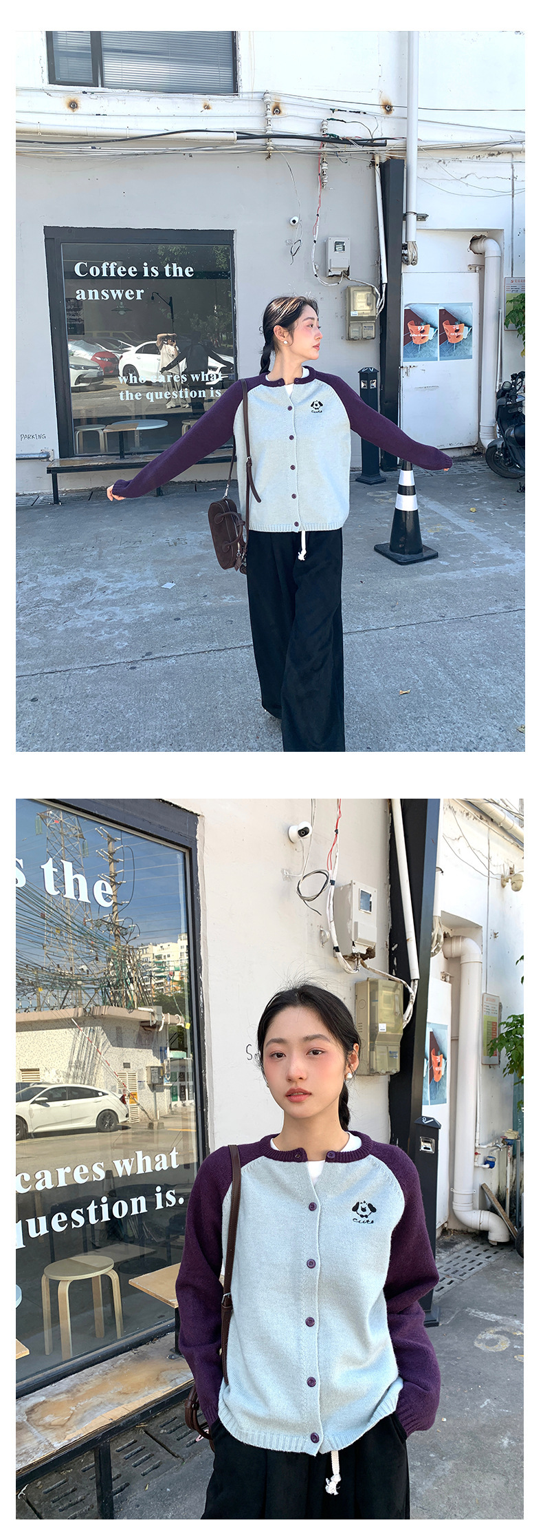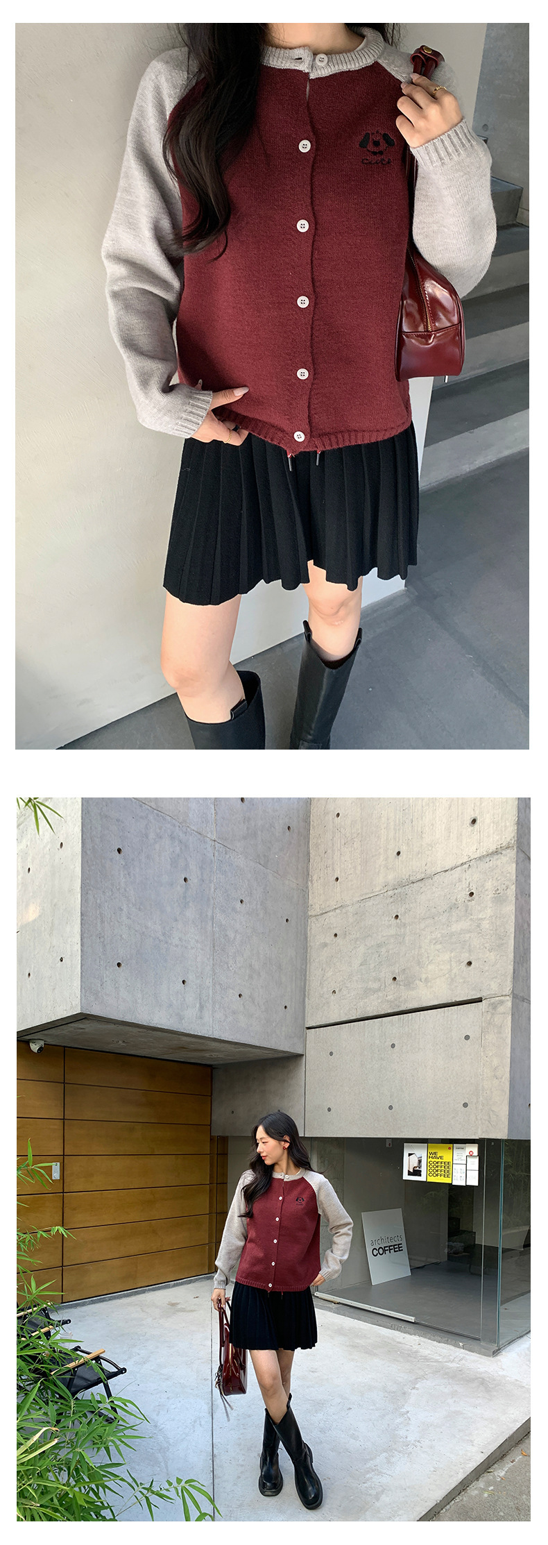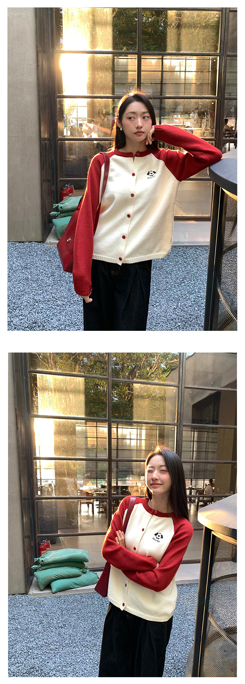 *o-ha-you*【FHZ145MY9063】復古小狗刺繡拼色針織開襟衫2024年冬季寬鬆休閒減齡上衣外套-6色