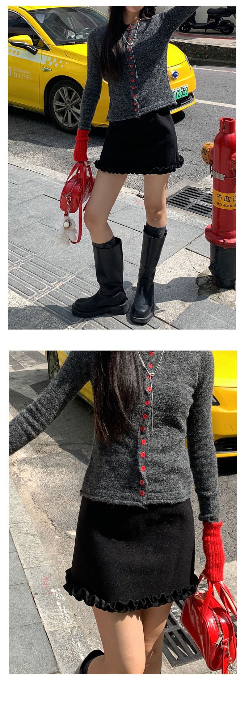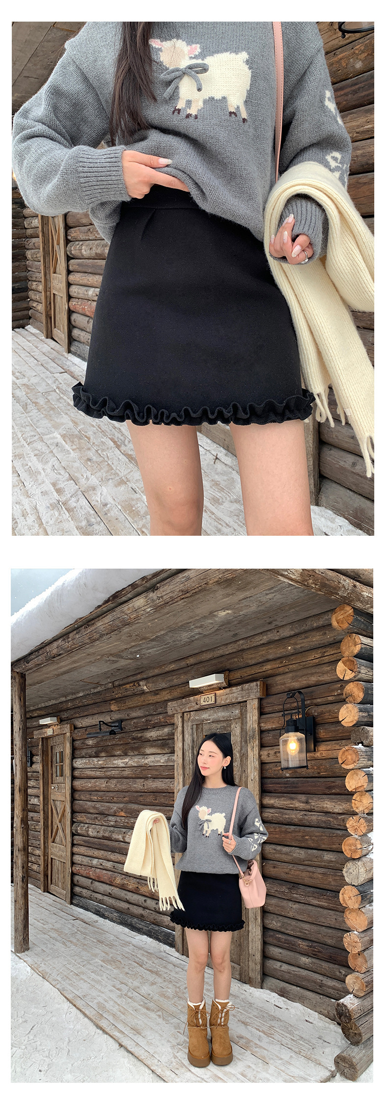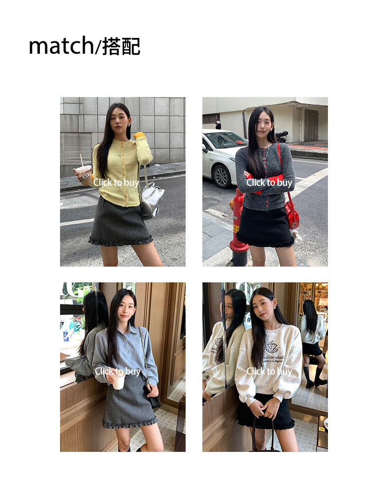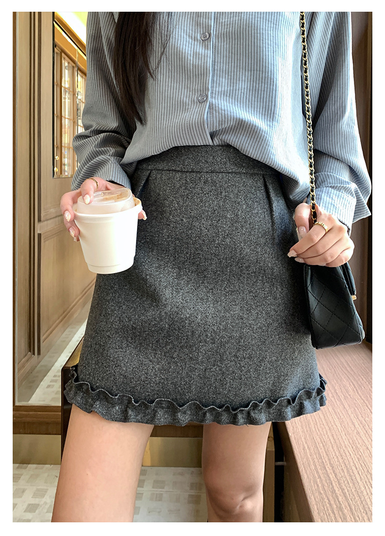 *o-ha-you*【FHZ145QY9028】韓風呢花苞半身裙2024秋冬甜美純欲純色花邊拼接-如有需要請先諮詢