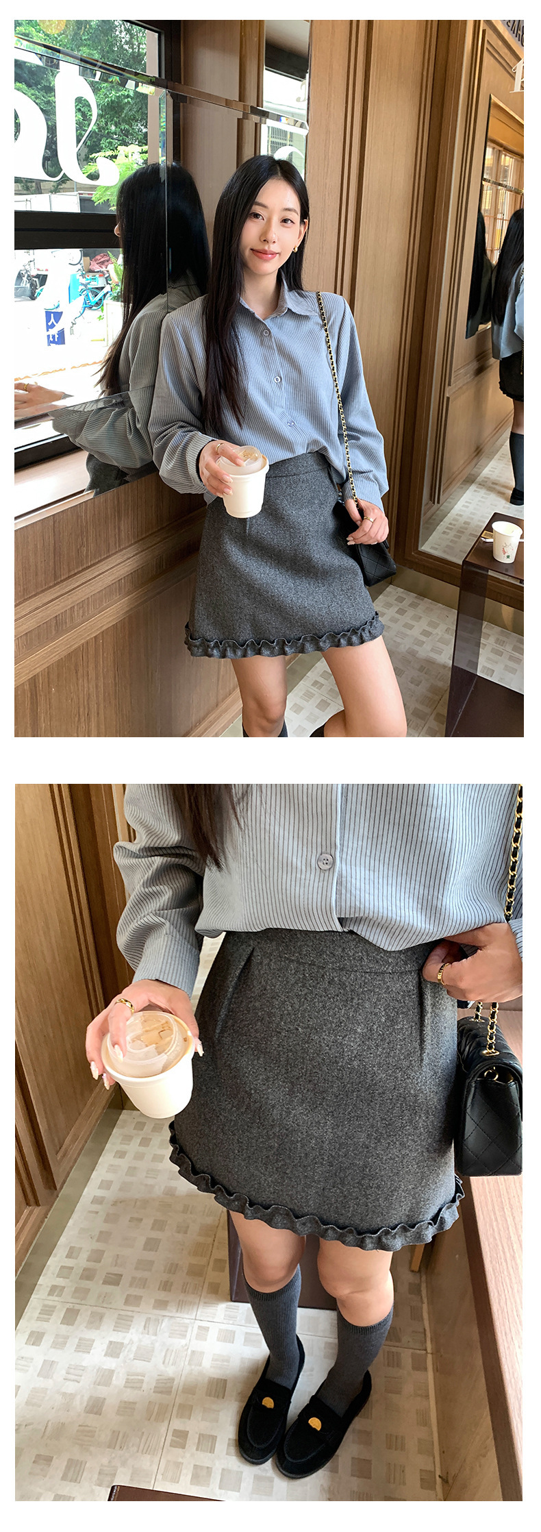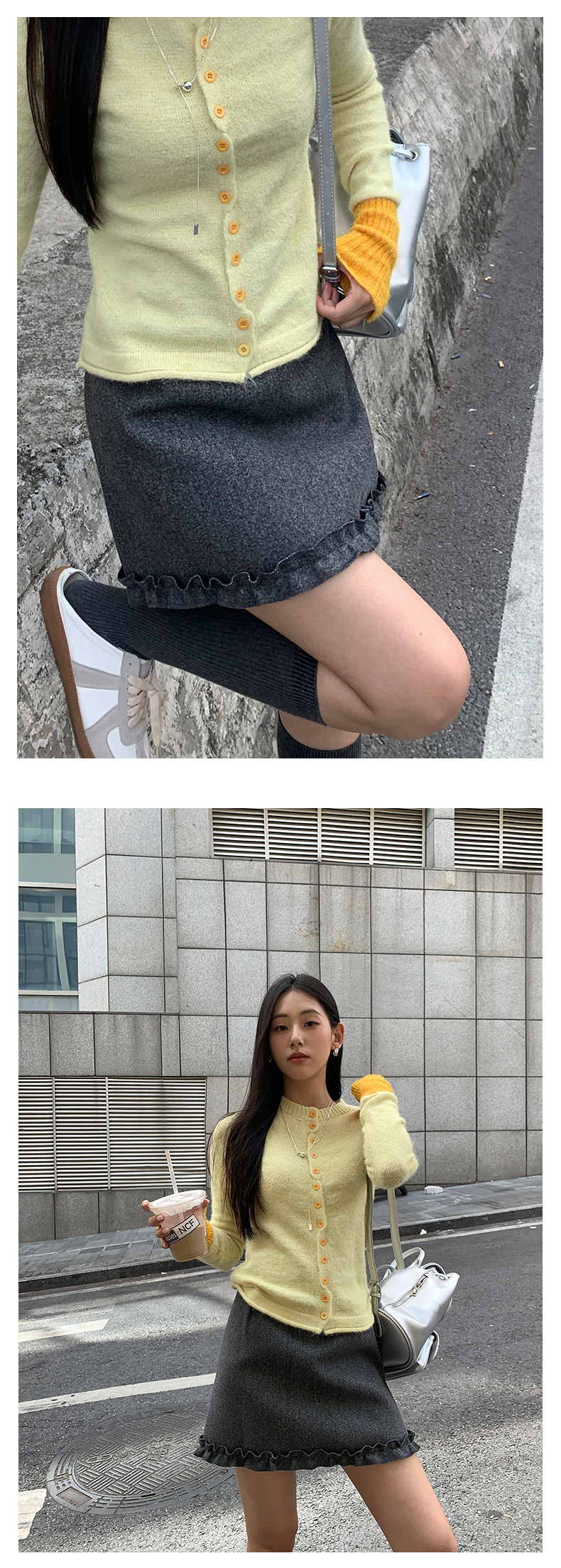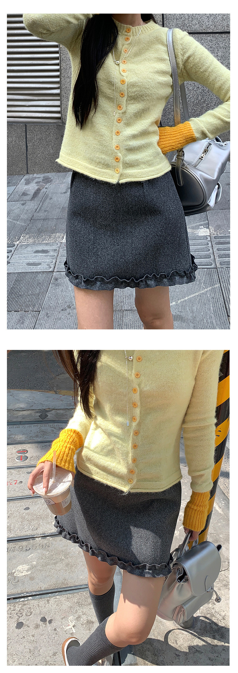 *o-ha-you*【FHZ145QY9028】韓風呢花苞半身裙2024秋冬甜美純欲純色花邊拼接-如有需要請先諮詢