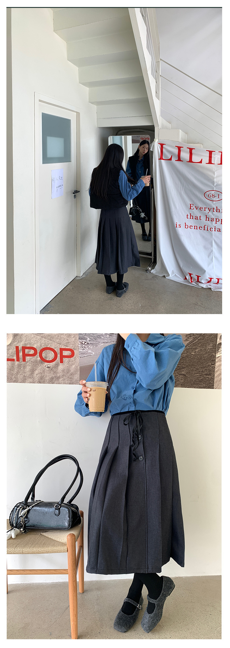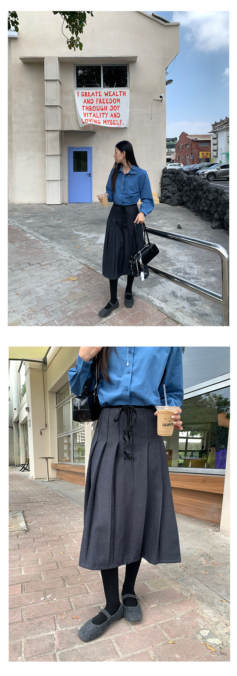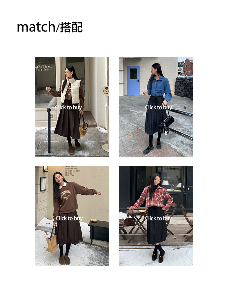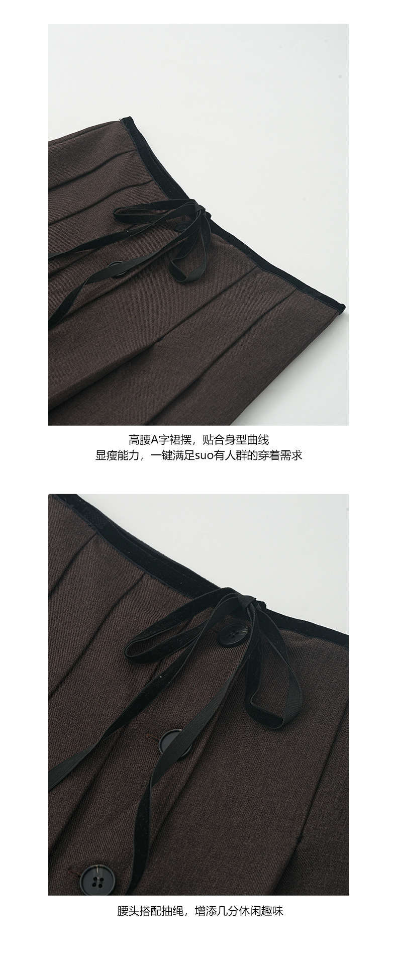 *o-ha-you*【FHZ145QY9040】法式繫帶排扣半身裙 2024年冬季高腰顯瘦A字裙收腰-3色