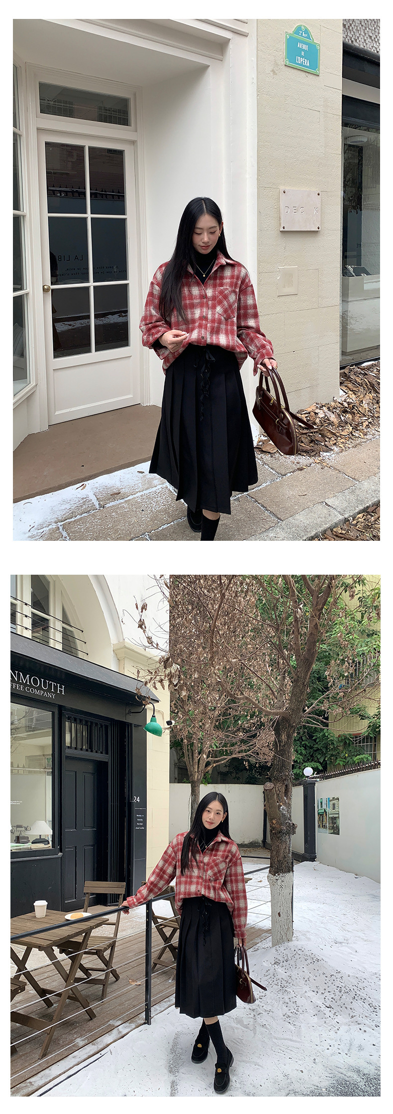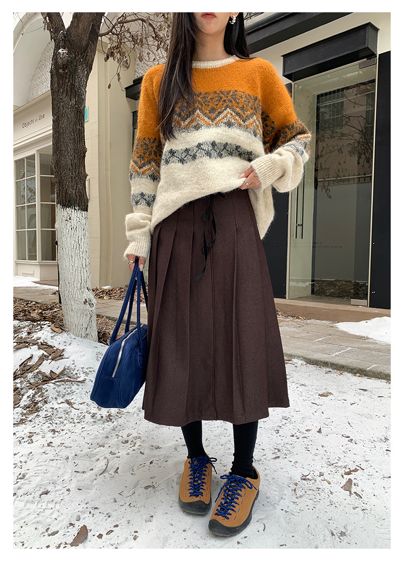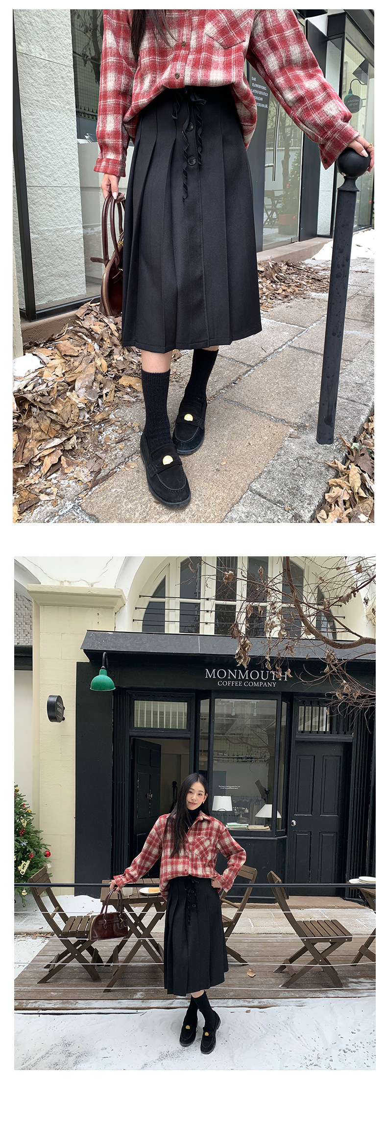 *o-ha-you*【FHZ145QY9040】法式繫帶排扣半身裙 2024年冬季高腰顯瘦A字裙收腰-3色