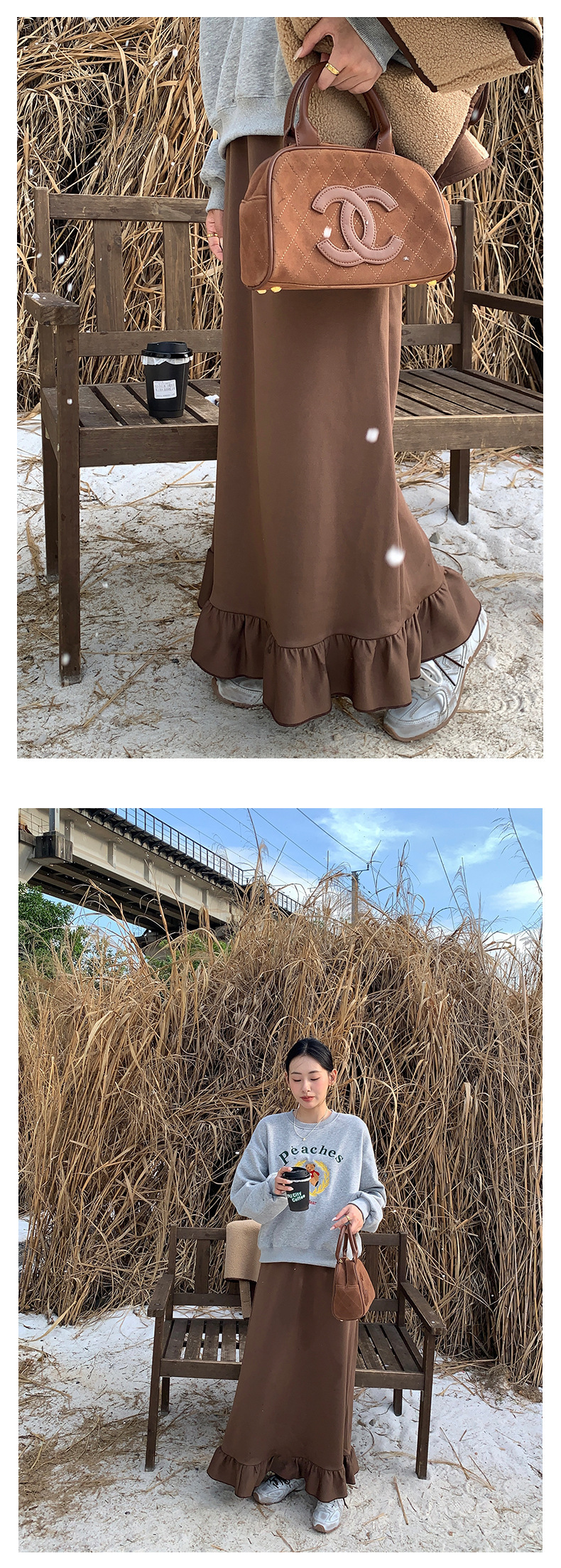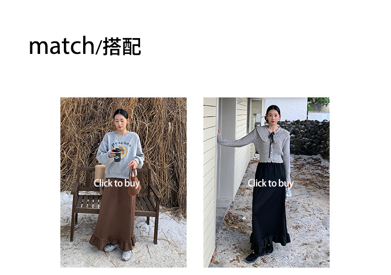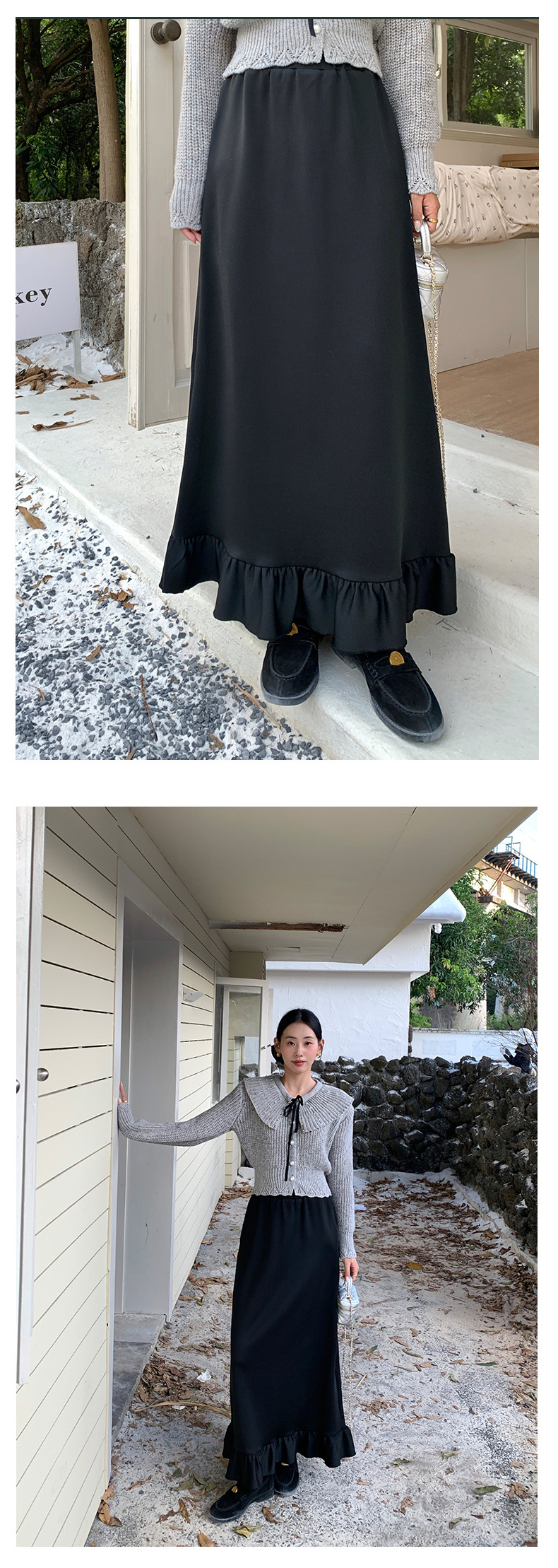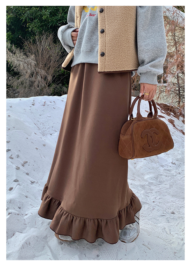 *o-ha-you*【FHZ145QY9085】復古鬆緊腰淨色高腰半身裙2024冬顯瘦木耳邊通勤-2色