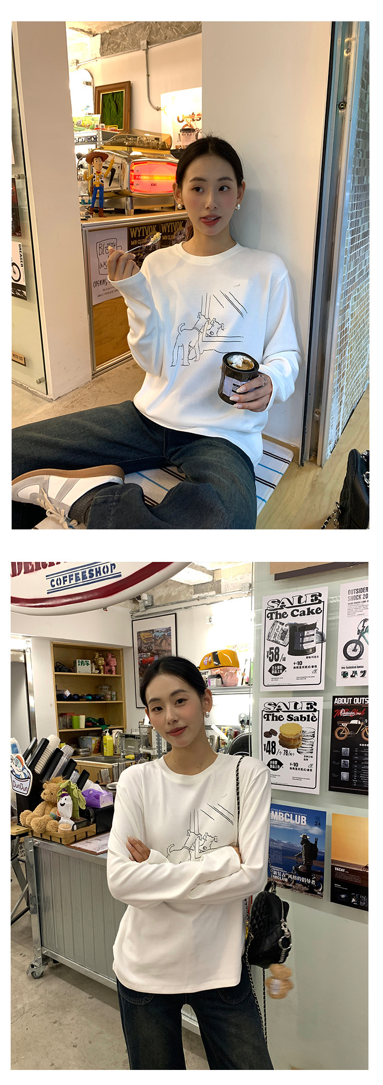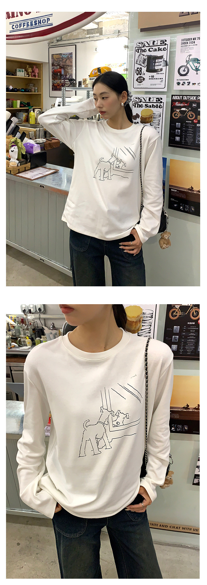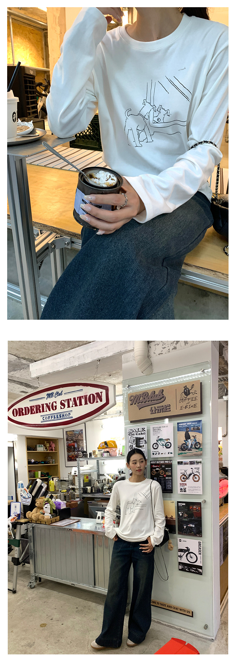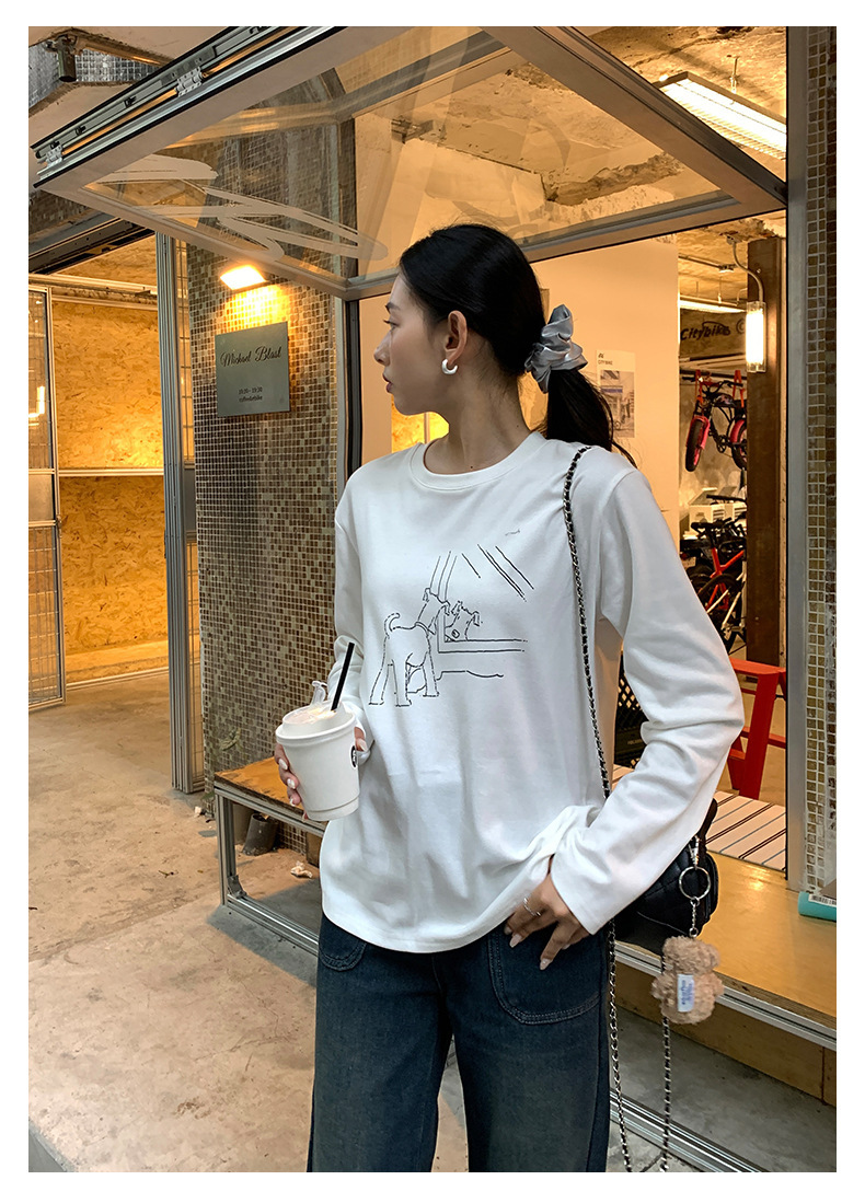 *o-ha-you*【FHZ145TY10046】韓系小狗照鏡子印花T恤2024冬季長袖保暖上衣