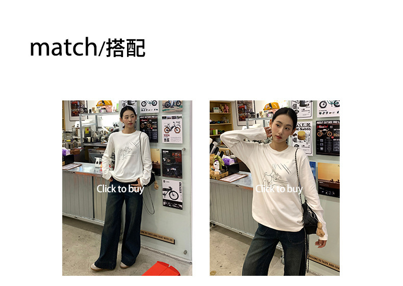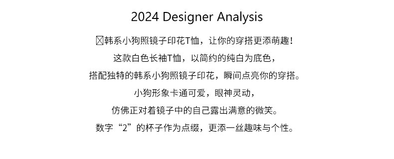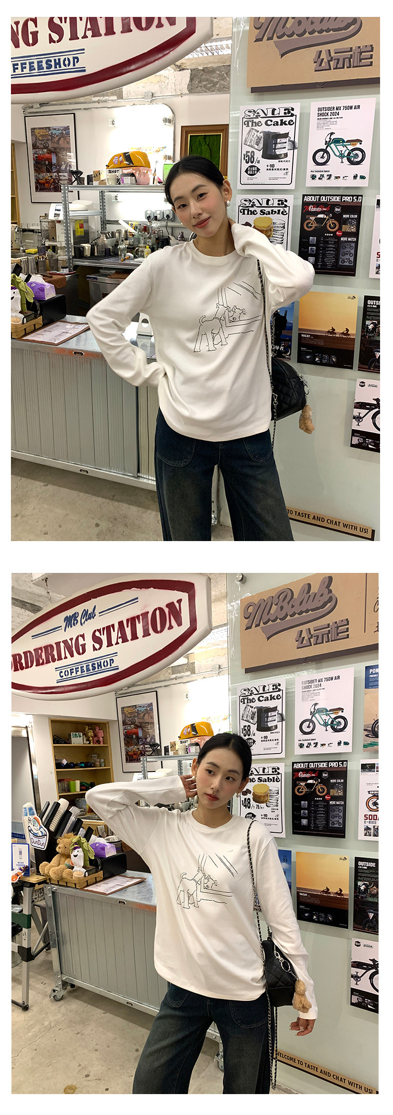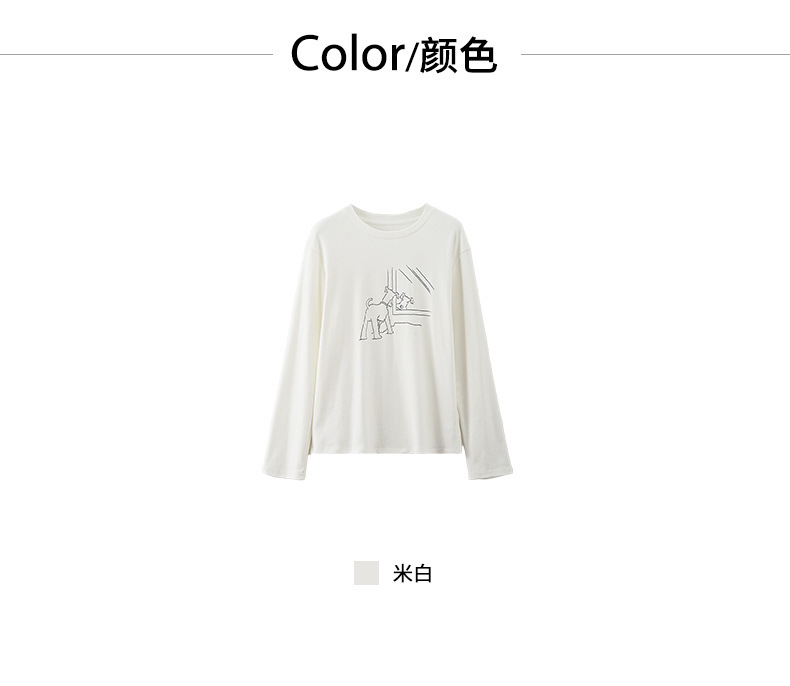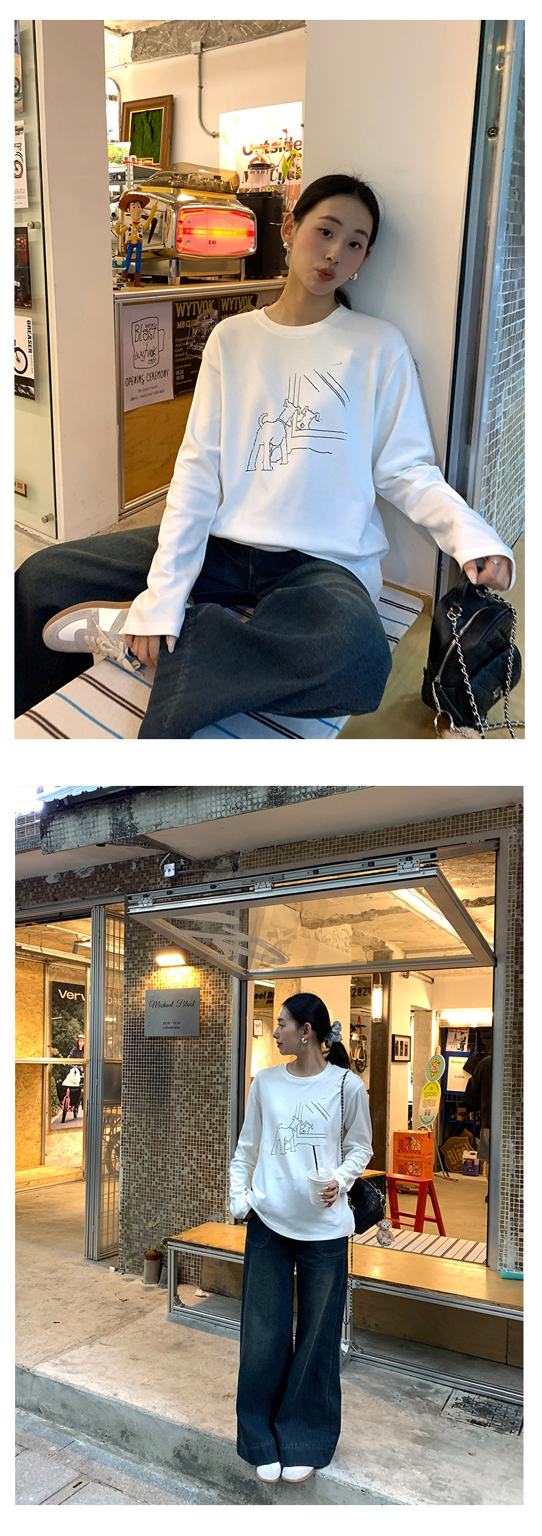 *o-ha-you*【FHZ145TY10046】韓系小狗照鏡子印花T恤2024冬季長袖保暖上衣