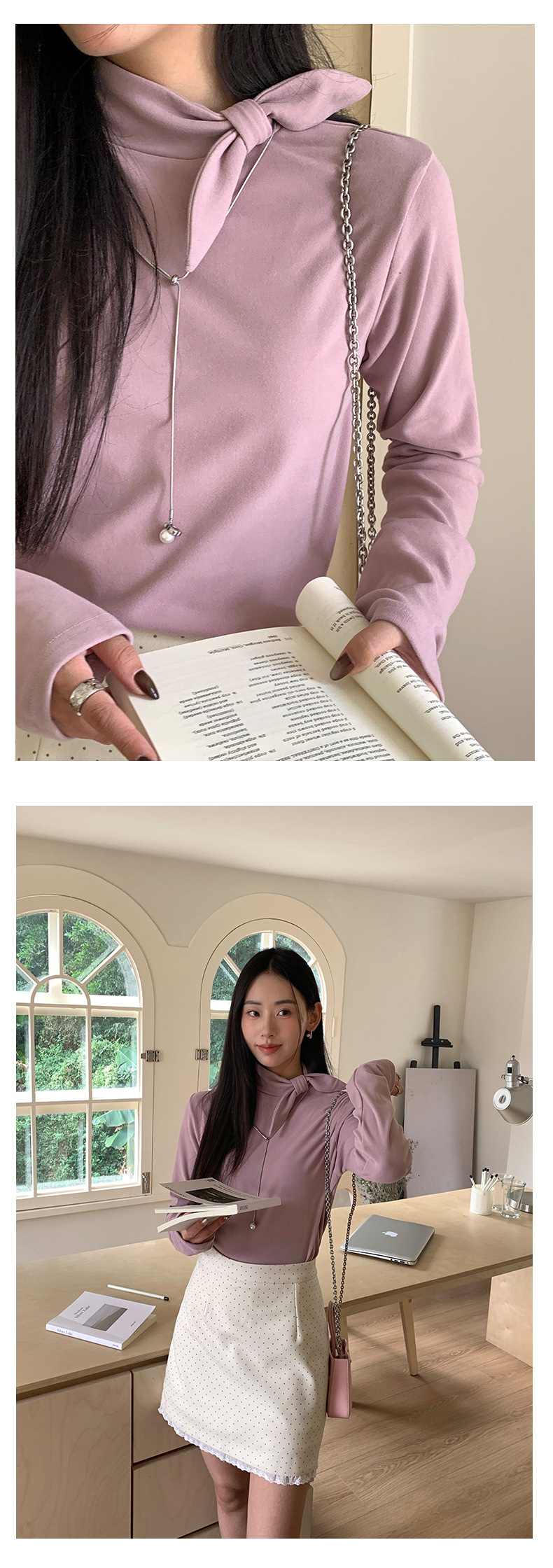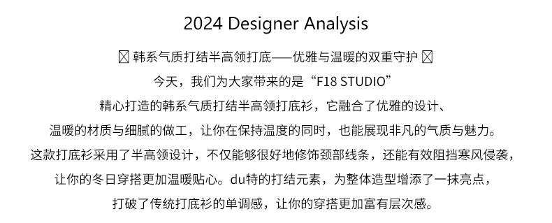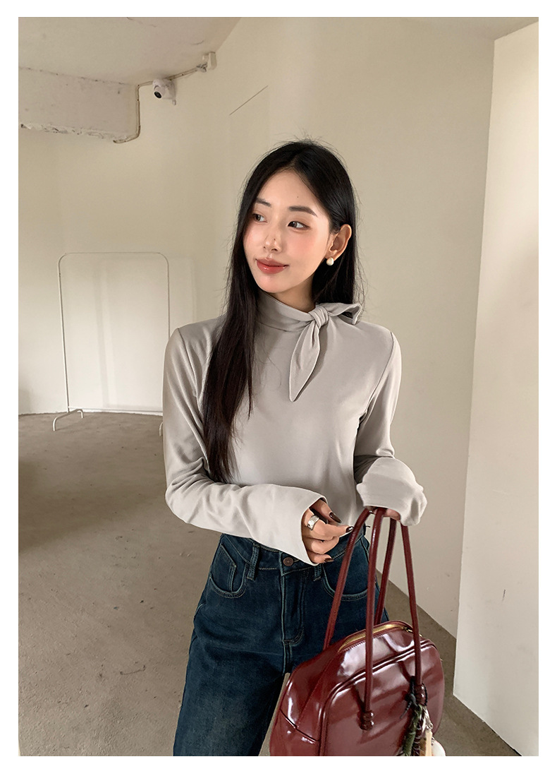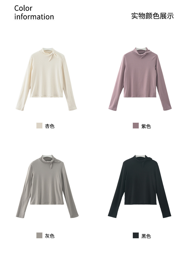 *o-ha-you*【FHZ145TY10083】韓系氣質打結加絨半高領打底2024年冬季淨色保暖上衣-4色