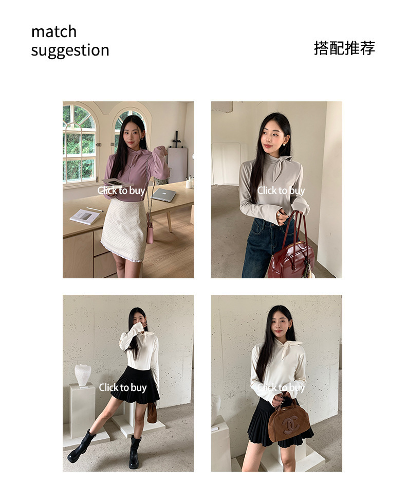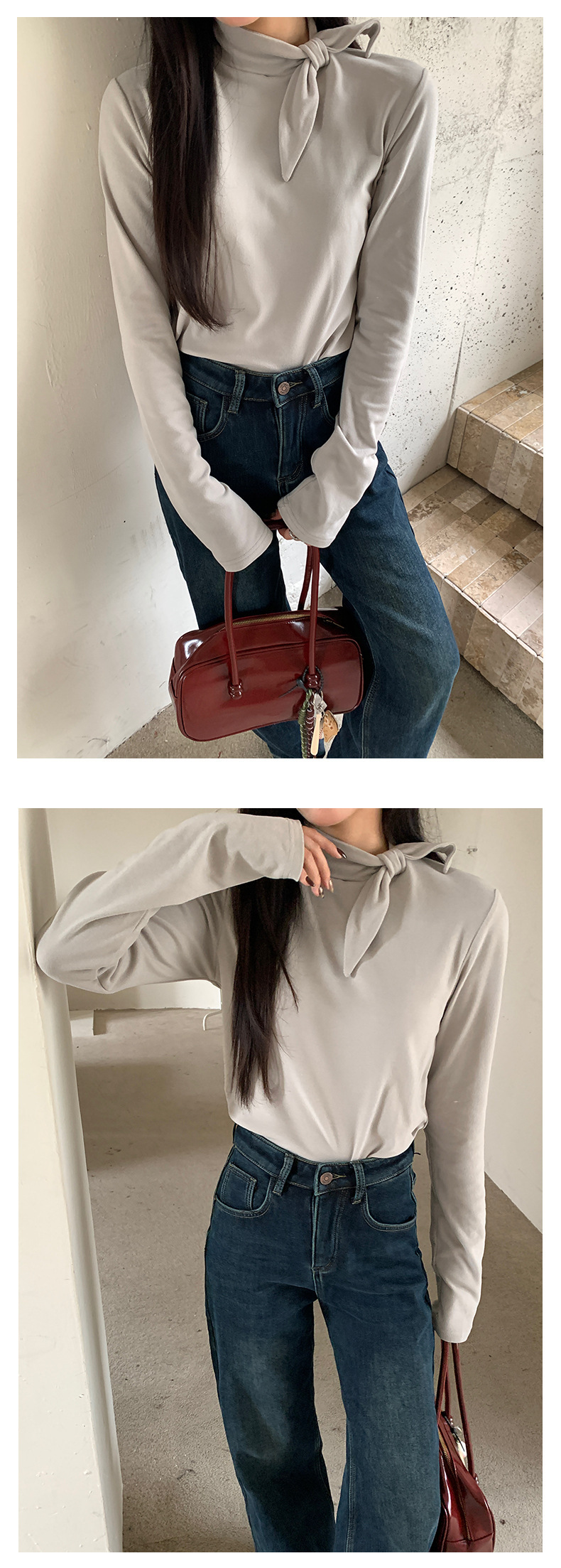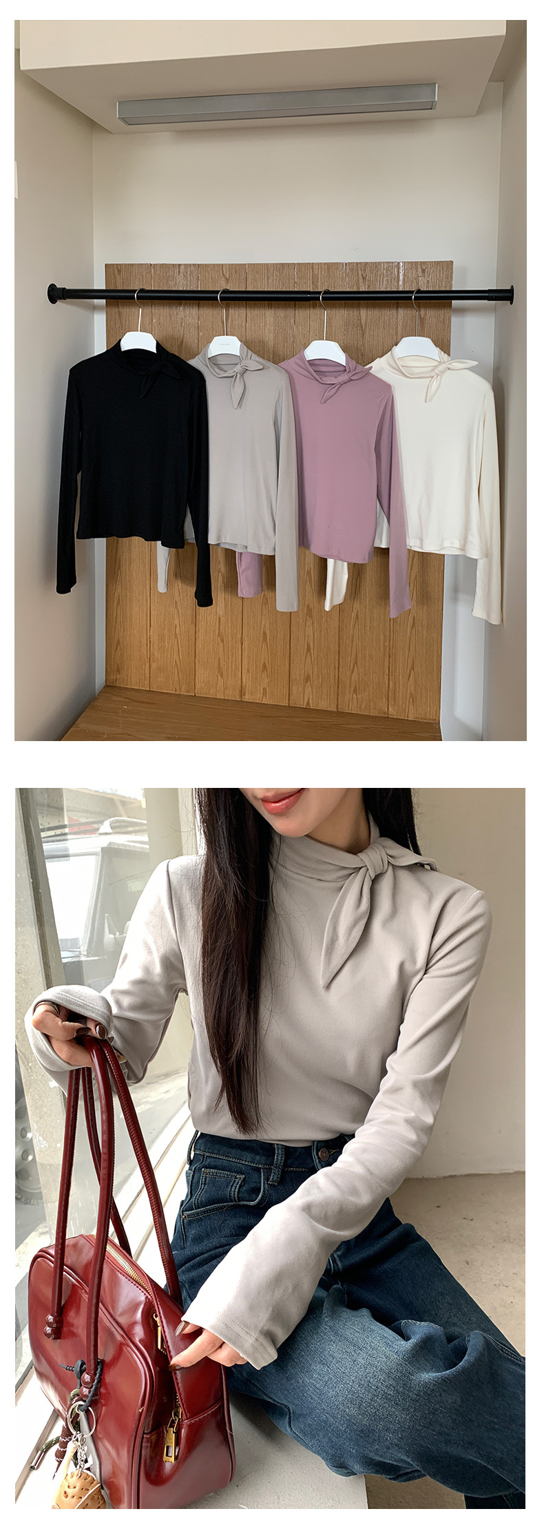 *o-ha-you*【FHZ145TY10083】韓系氣質打結加絨半高領打底2024年冬季淨色保暖上衣-4色