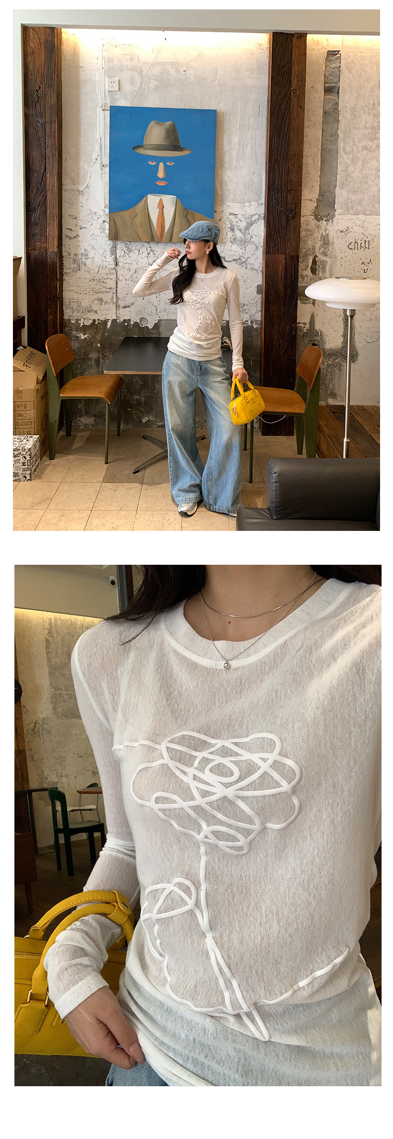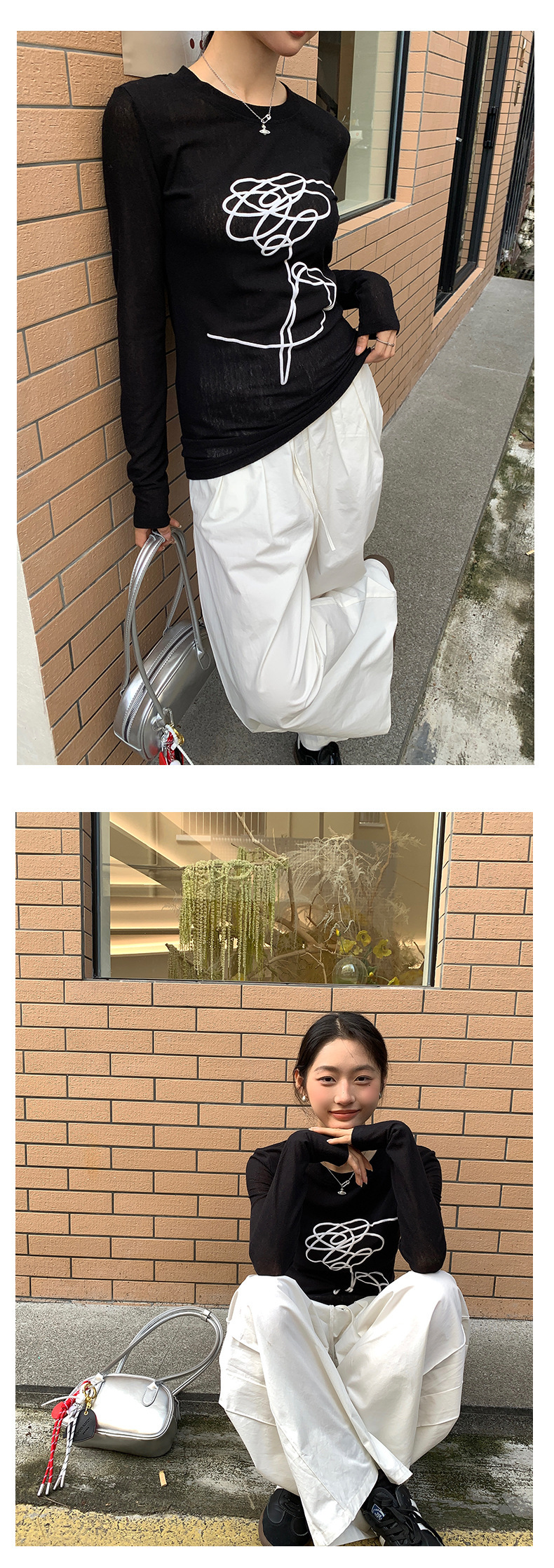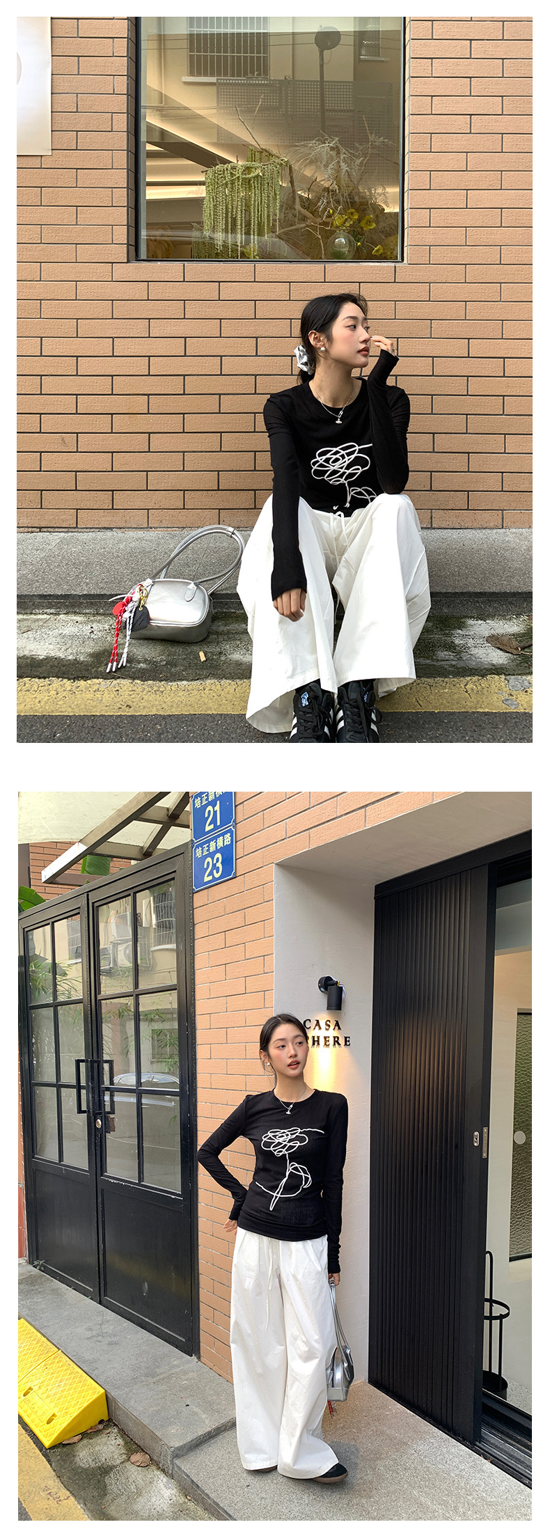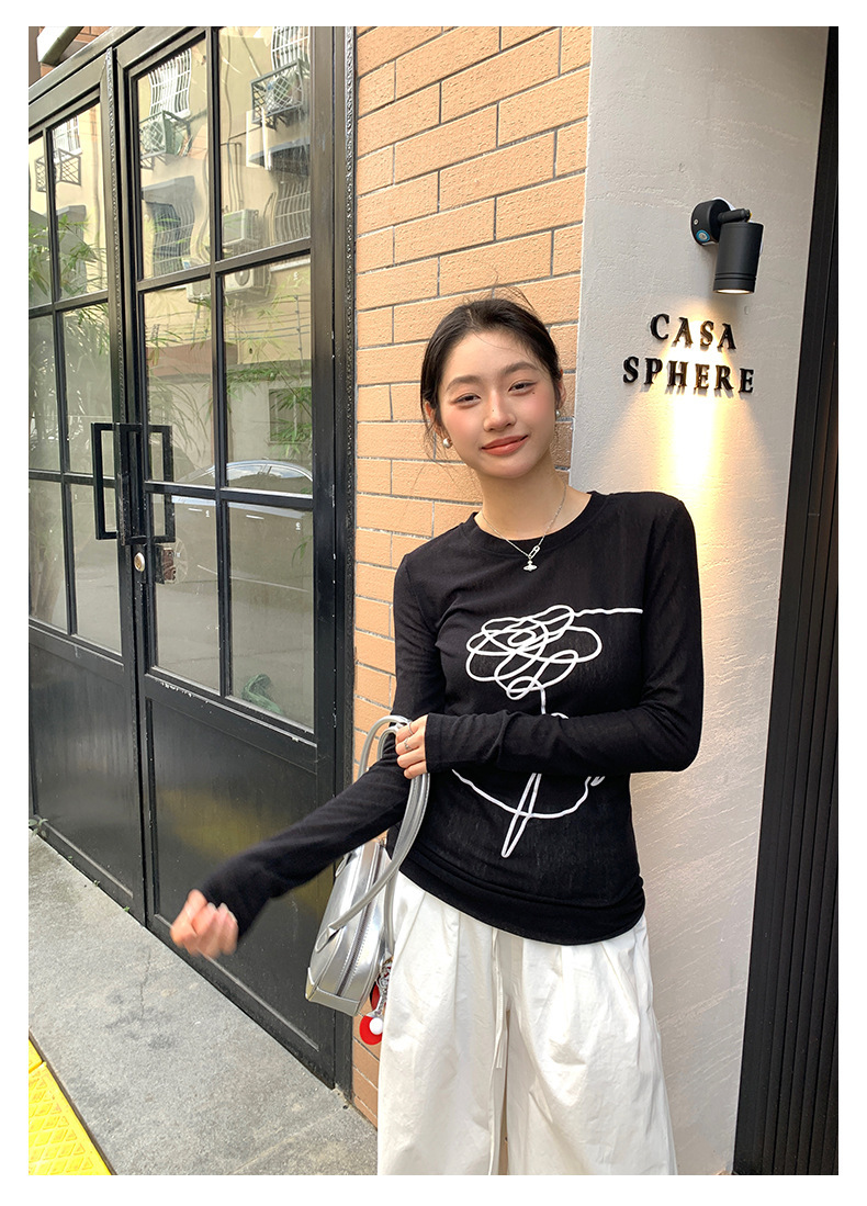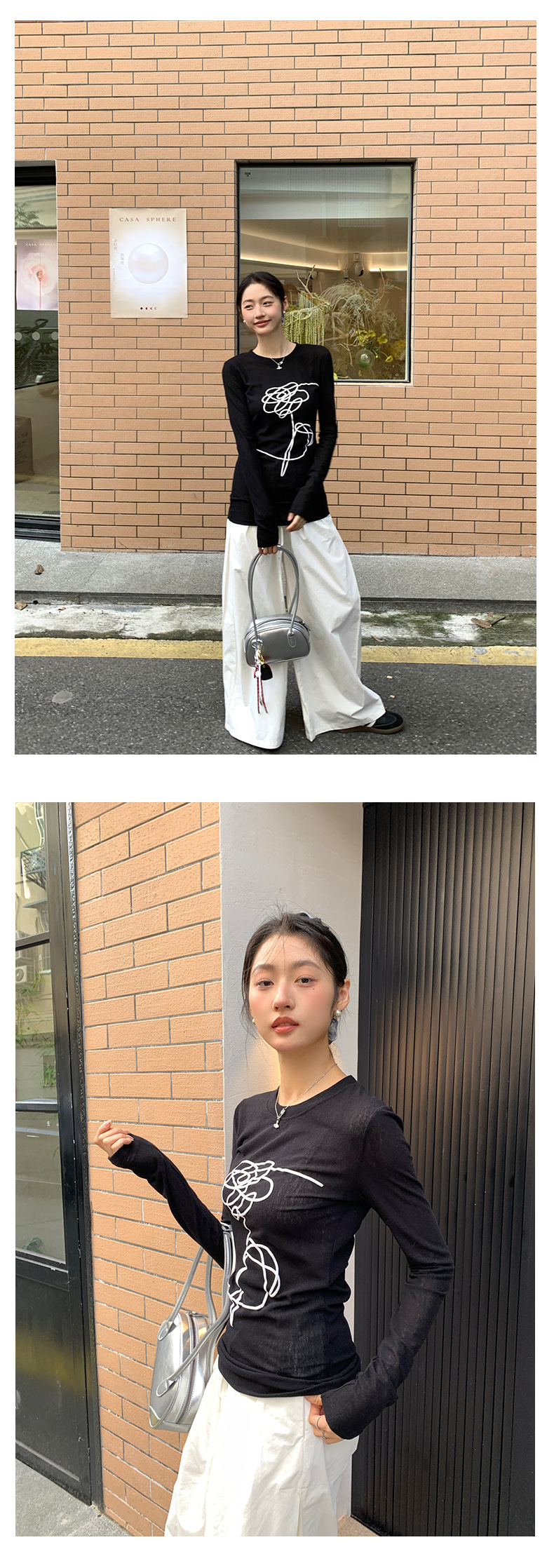 *o-ha-you*【FHZ145TY7066】甜辣不規則玫瑰印針織打底衫2024冬季顯瘦長上衣-2色
