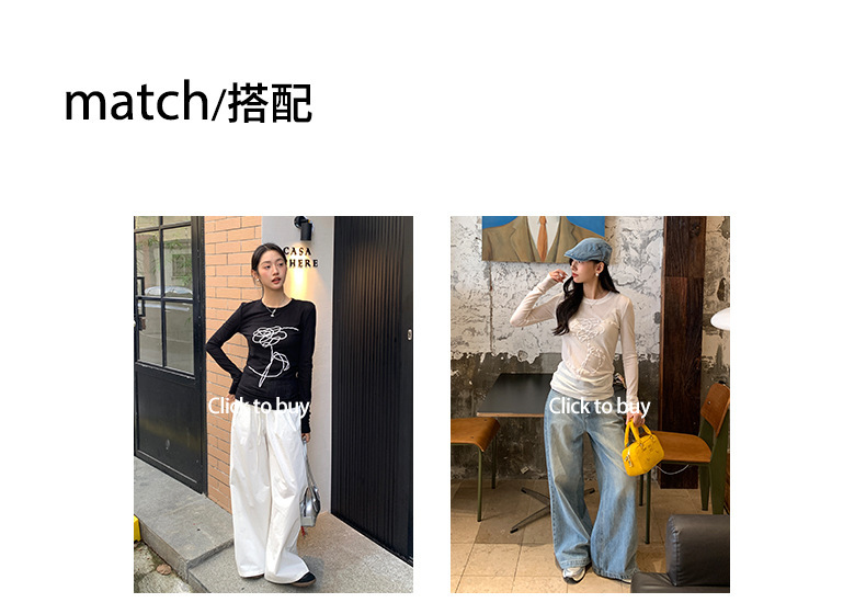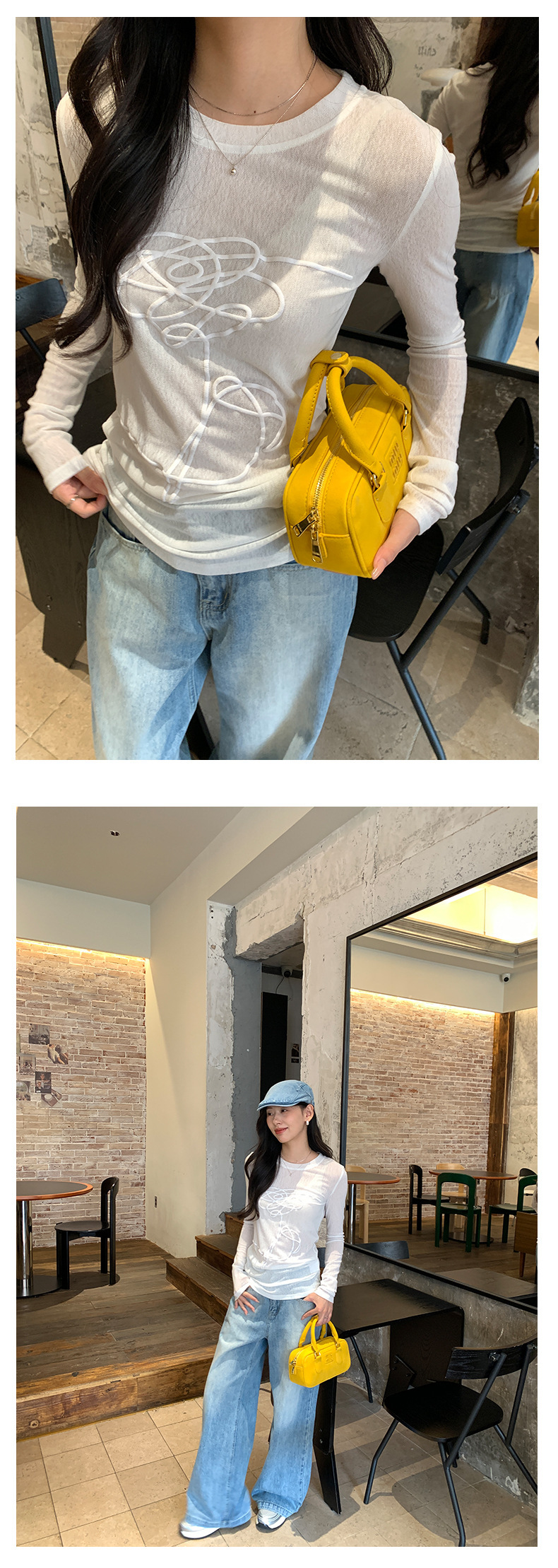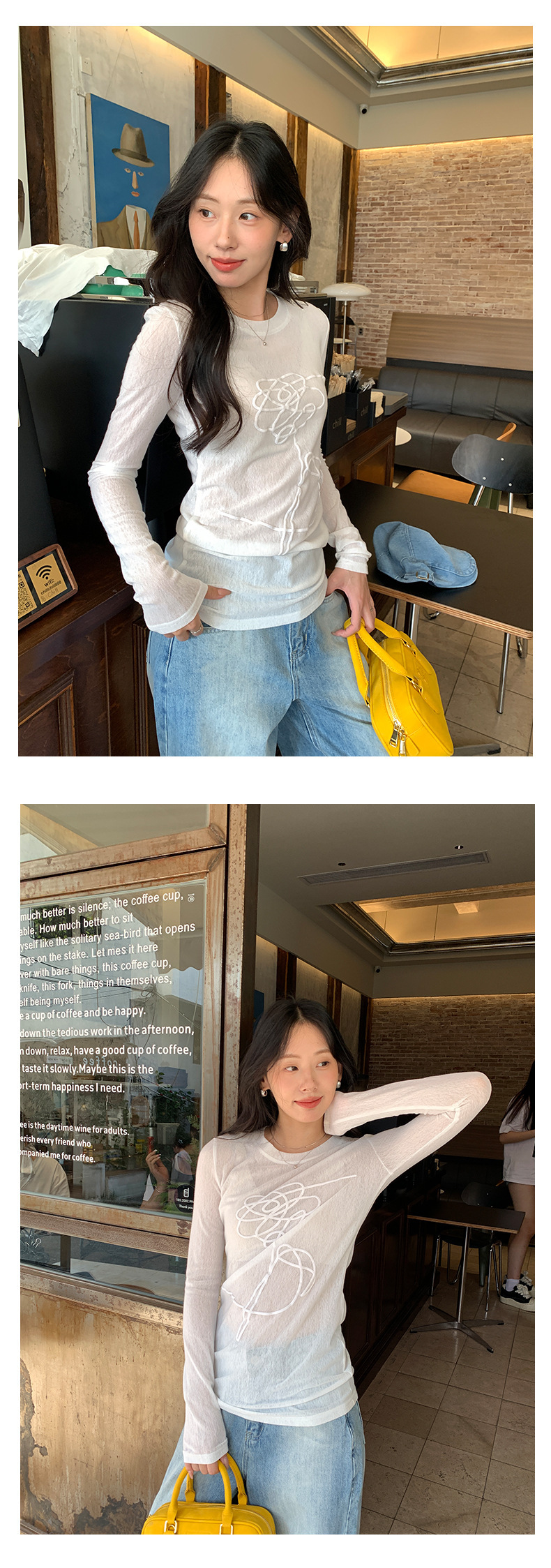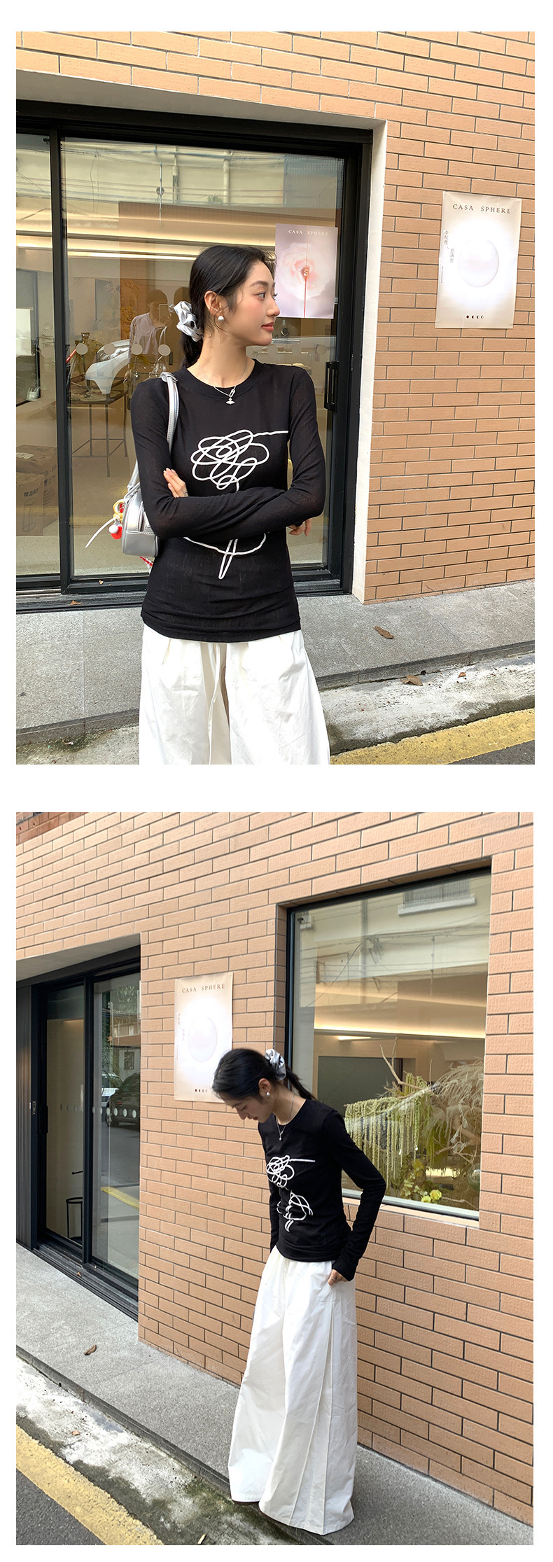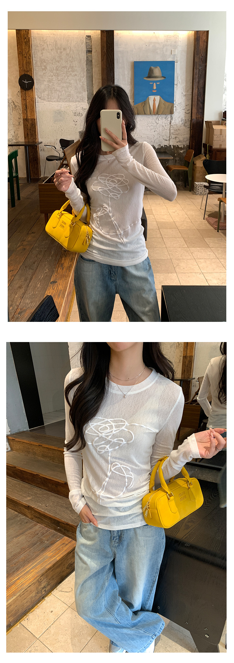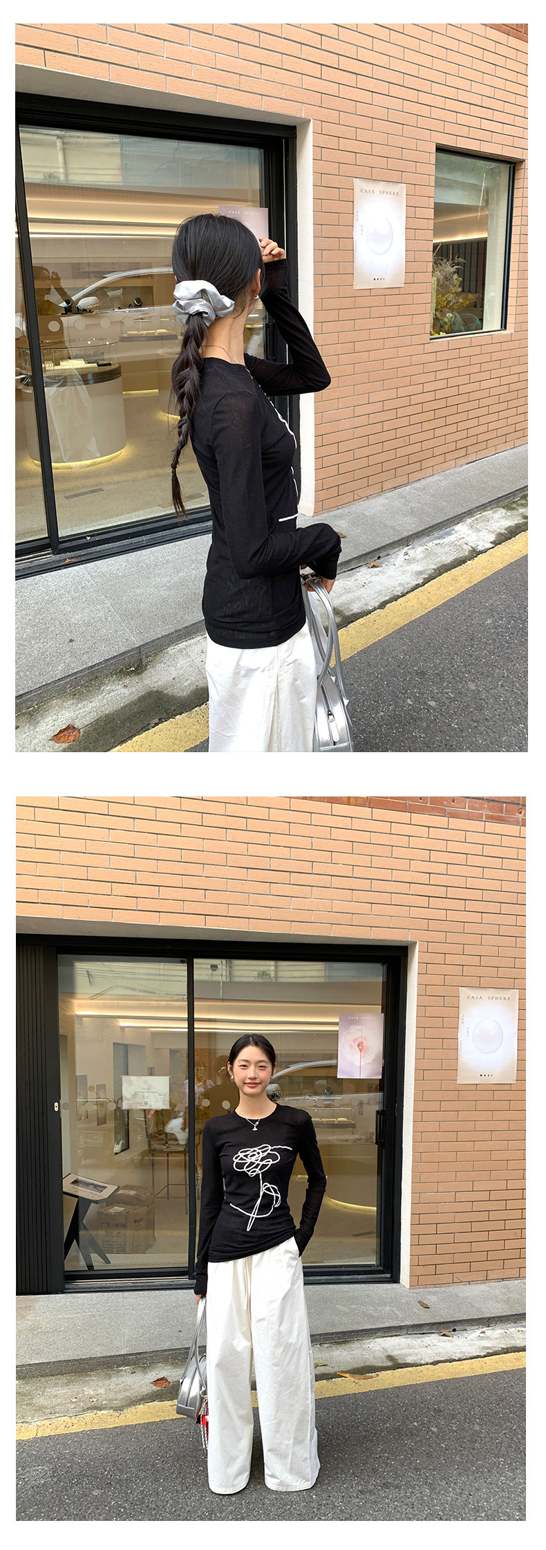 *o-ha-you*【FHZ145TY7066】甜辣不規則玫瑰印針織打底衫2024冬季顯瘦長上衣-2色