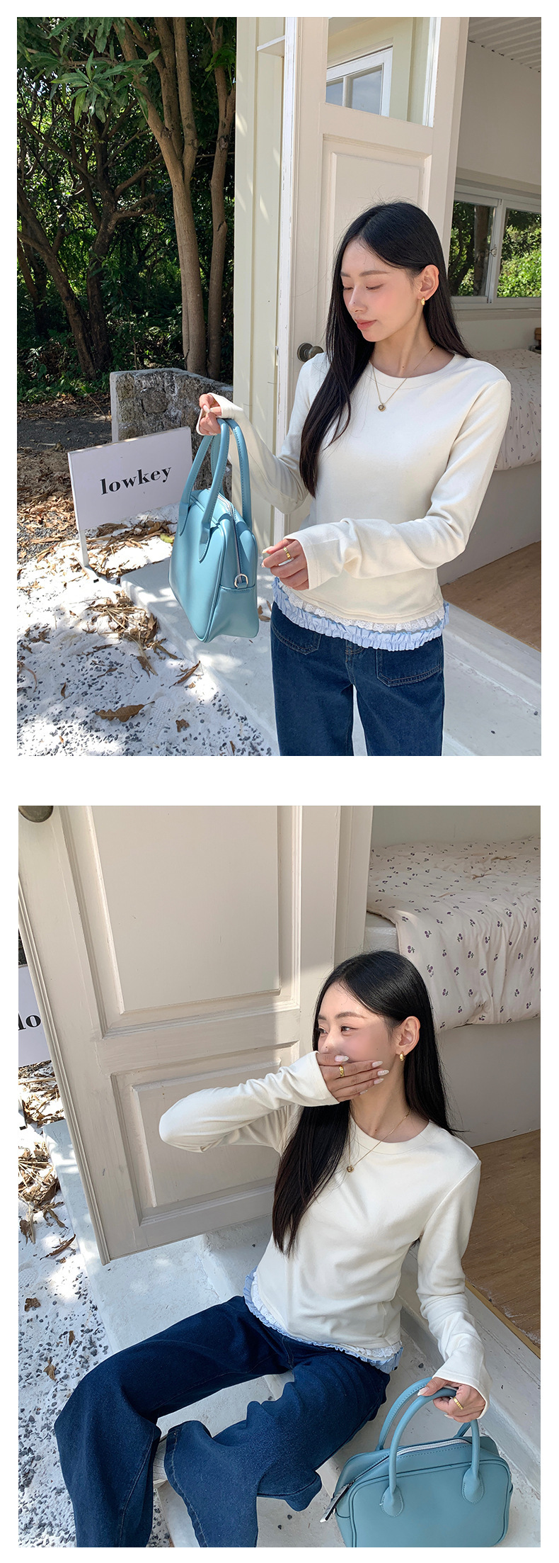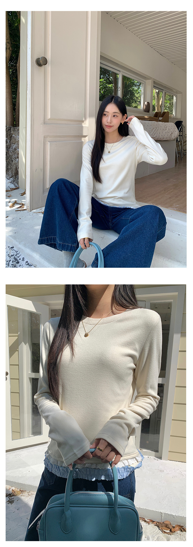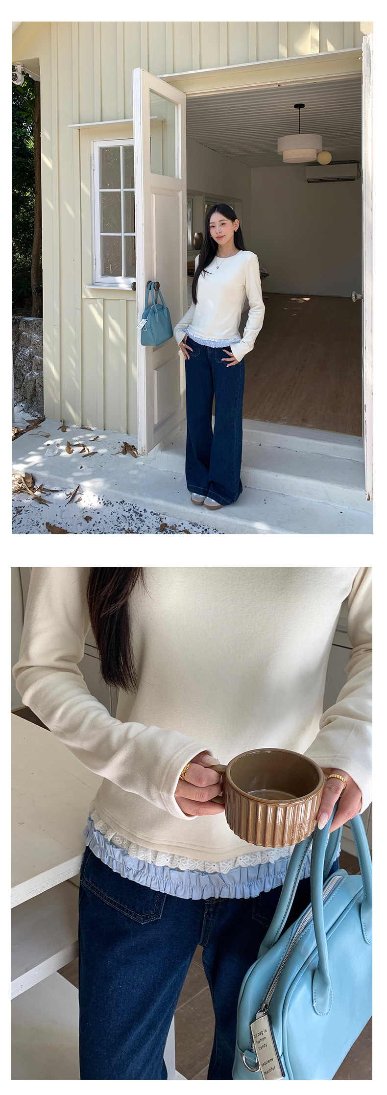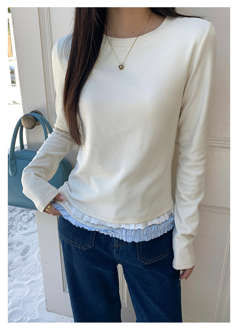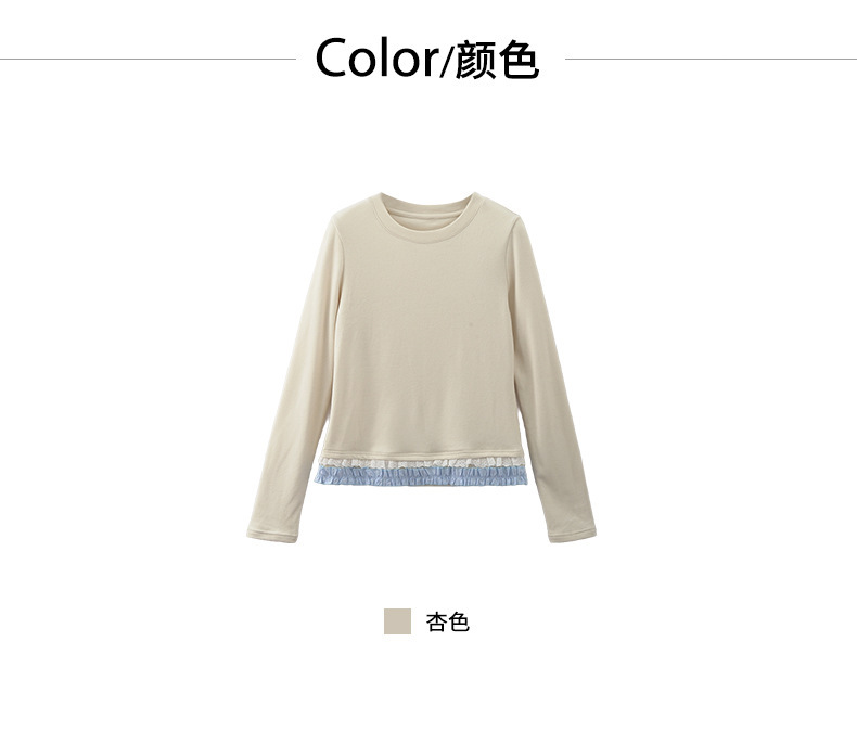 *o-ha-you*【FHZ145TY9015】韓式淨色蕾絲擺圍打底衫2024冬季T恤可愛芭蕾長袖上衣
