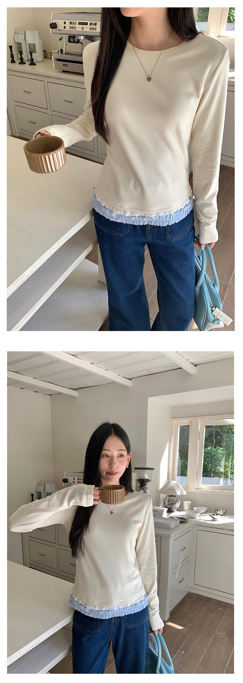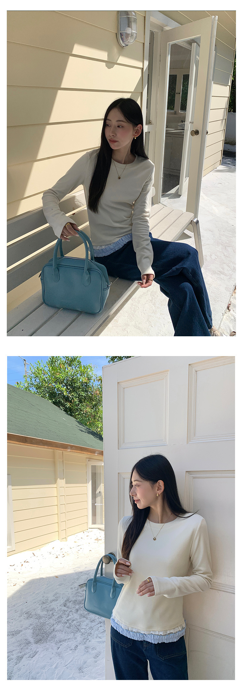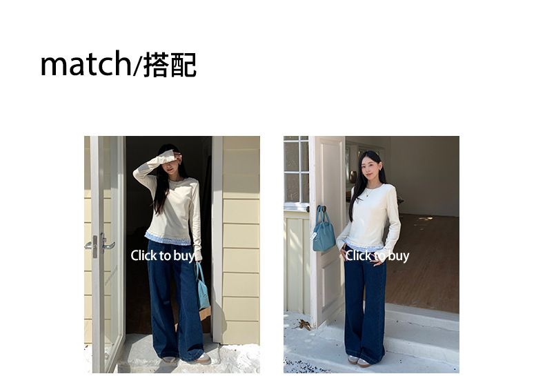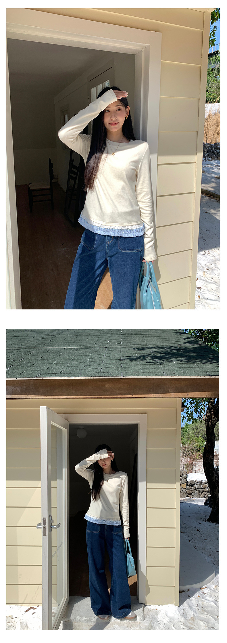 *o-ha-you*【FHZ145TY9015】韓式淨色蕾絲擺圍打底衫2024冬季T恤可愛芭蕾長袖上衣
