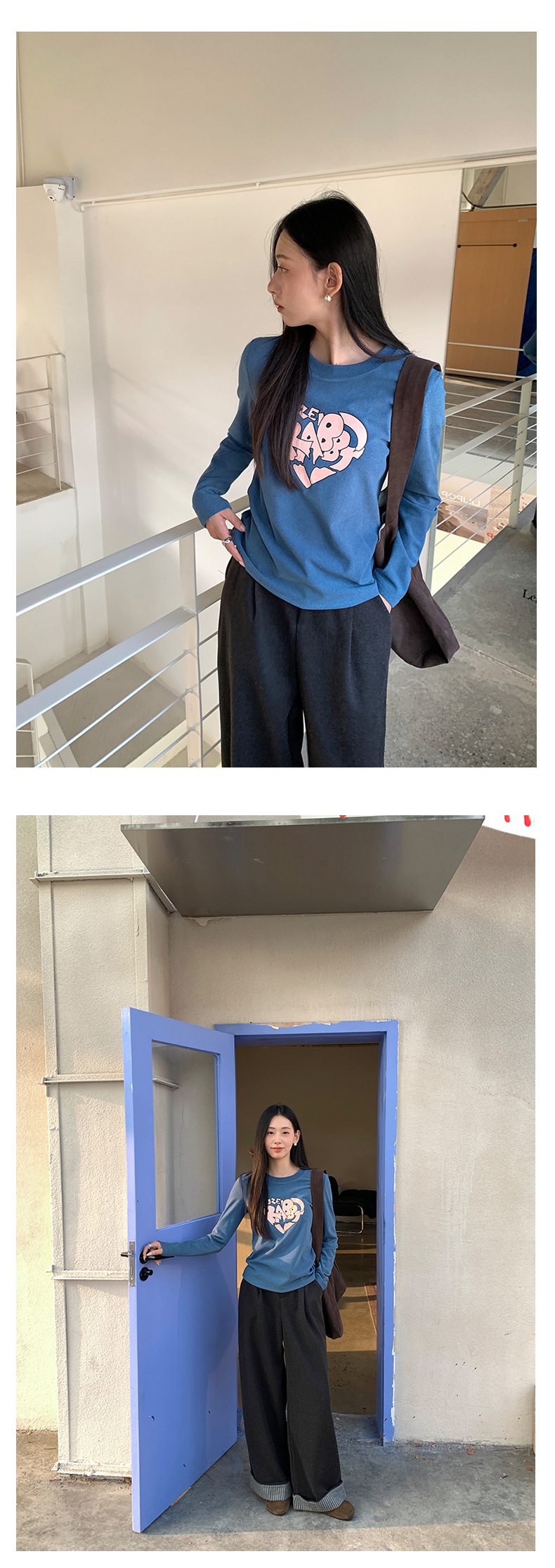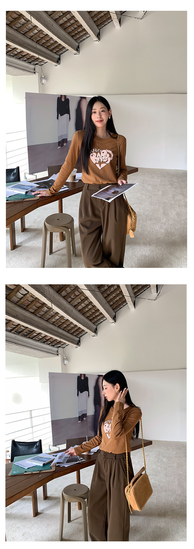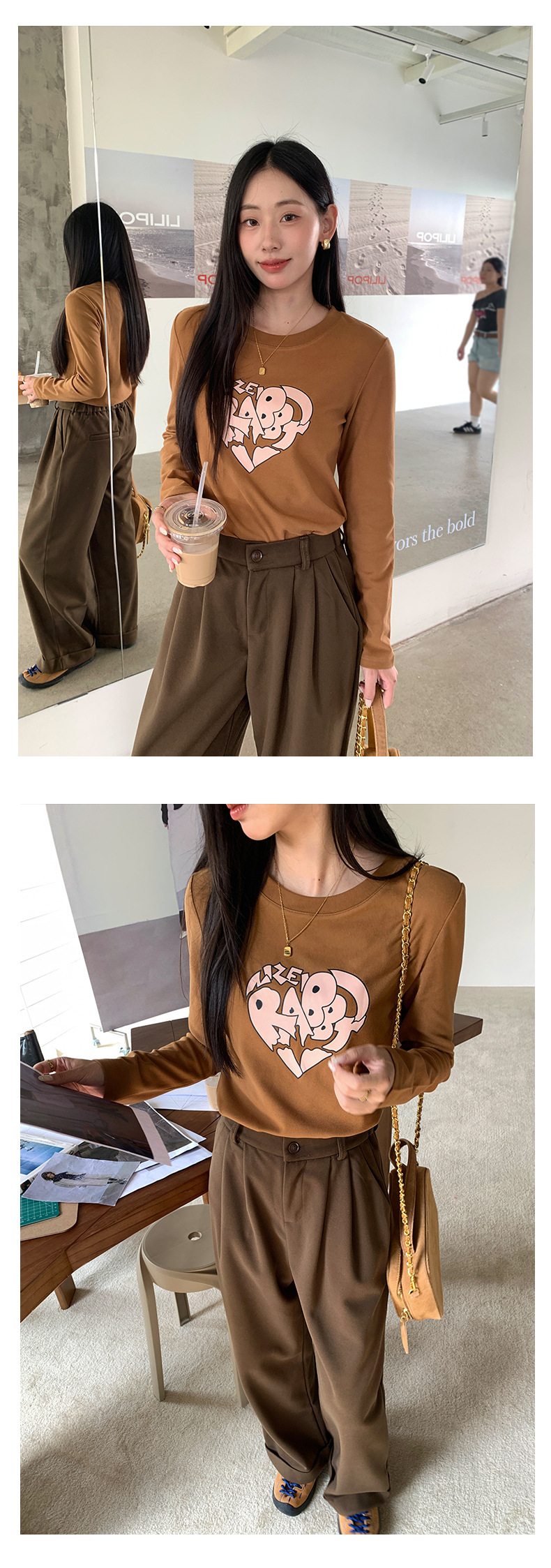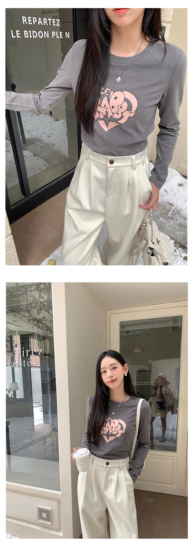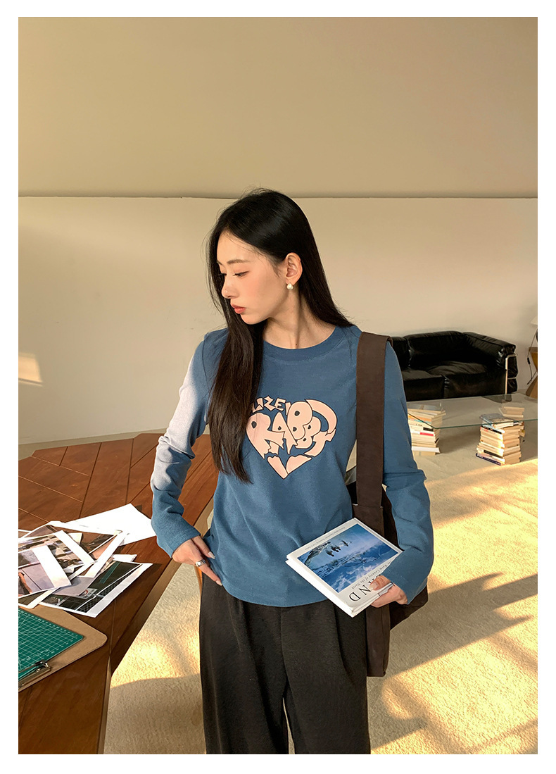 *o-ha-you*【FHZ145TY9033】韓版不規則心臟印花打底衫2024冬季顯瘦保暖長袖磨毛-3色-如有需要請先諮詢