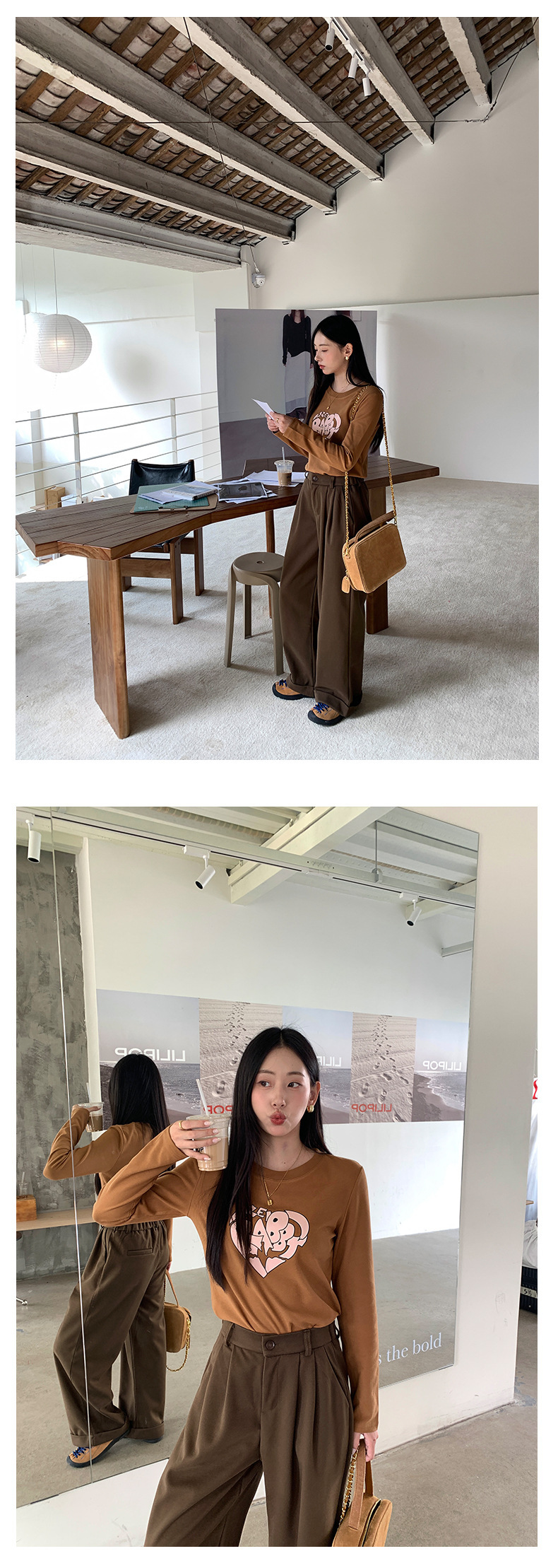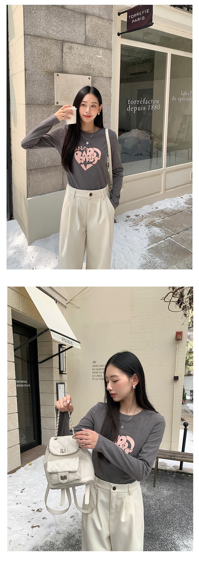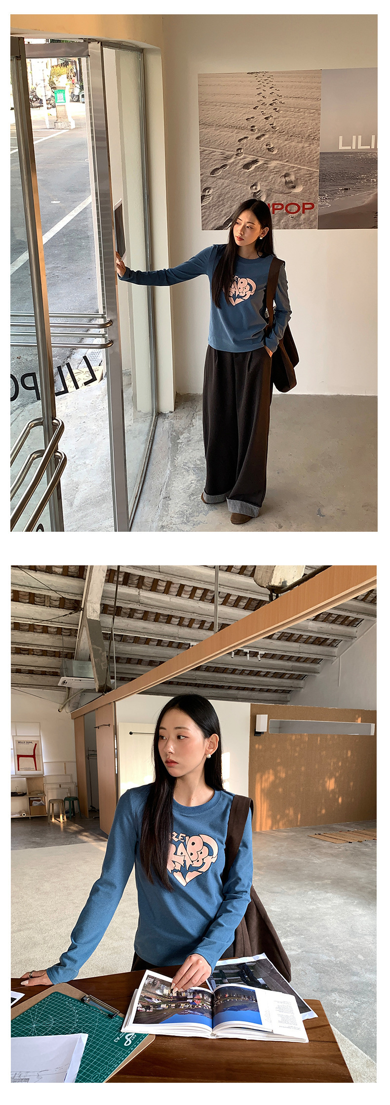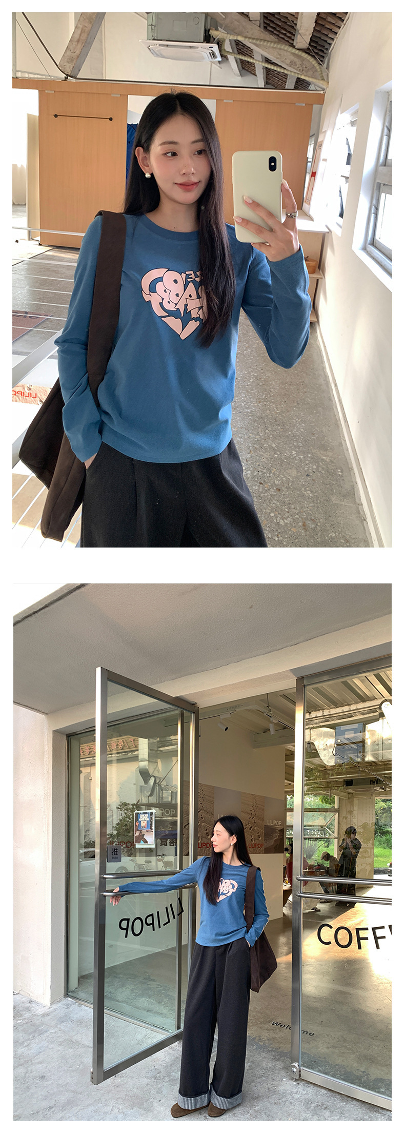 *o-ha-you*【FHZ145TY9033】韓版不規則心臟印花打底衫2024冬季顯瘦保暖長袖磨毛-3色-如有需要請先諮詢