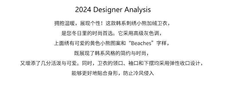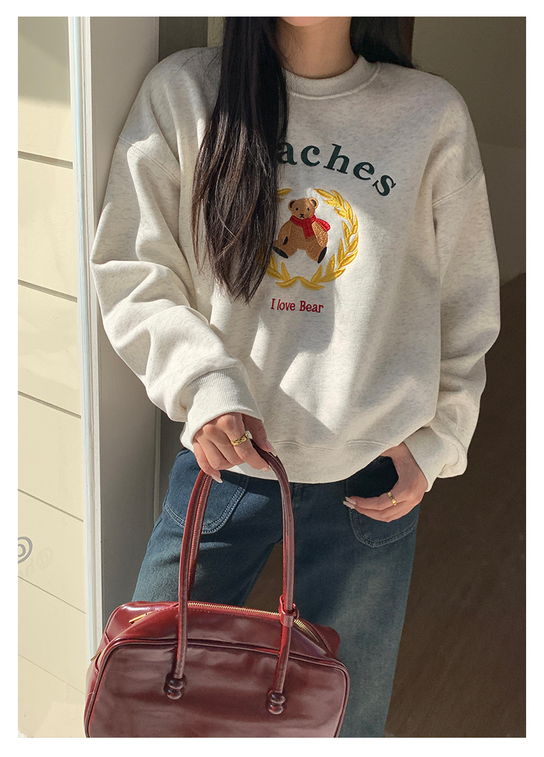 *o-ha-you*【FHZ145WY10013】韓系刺繡小熊加絨衛衣2024冬加厚實休閒氣質重工上衣-2色