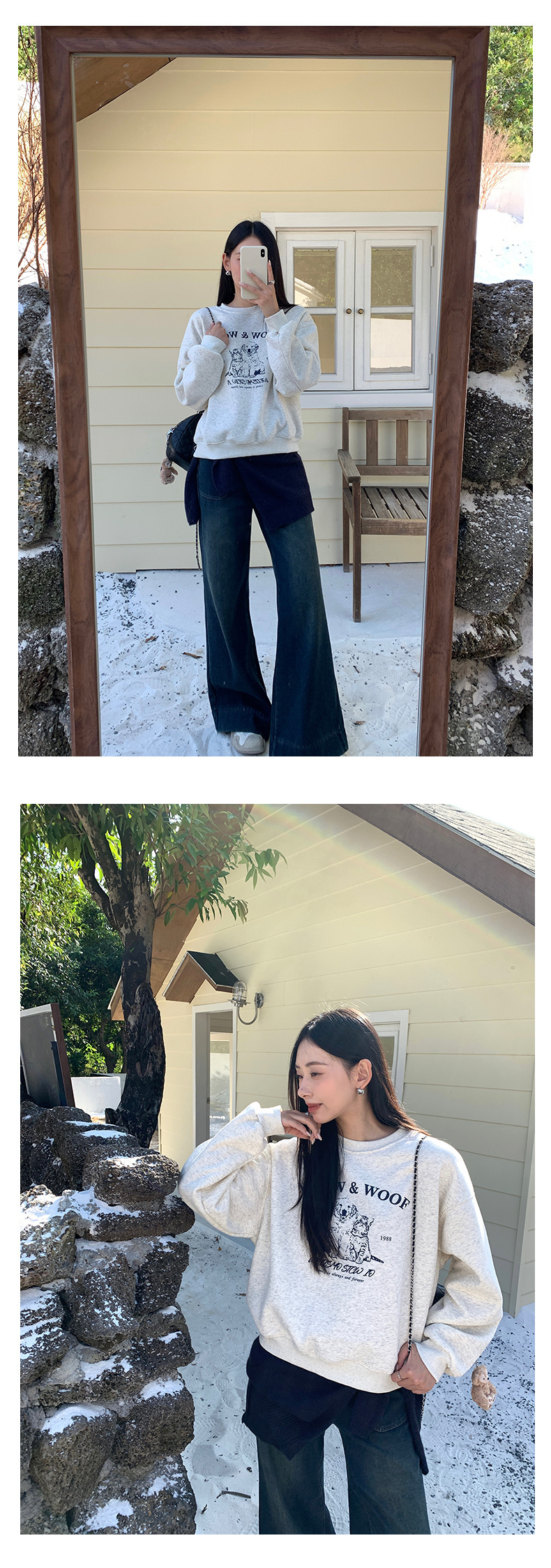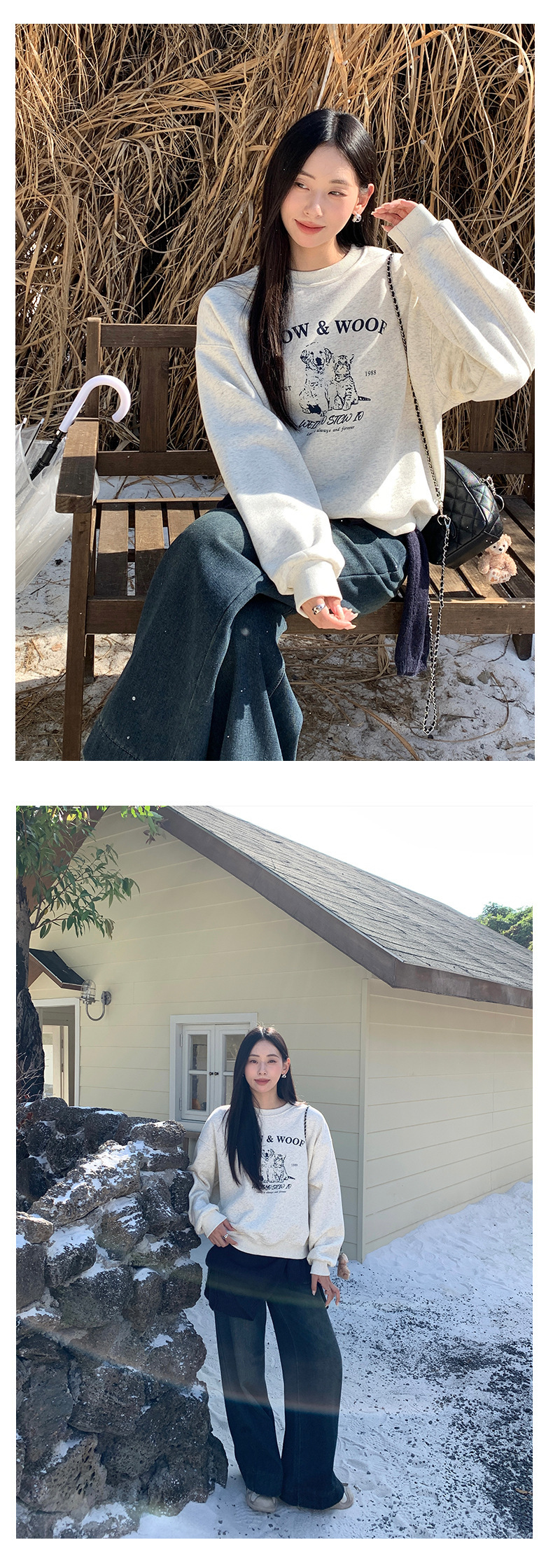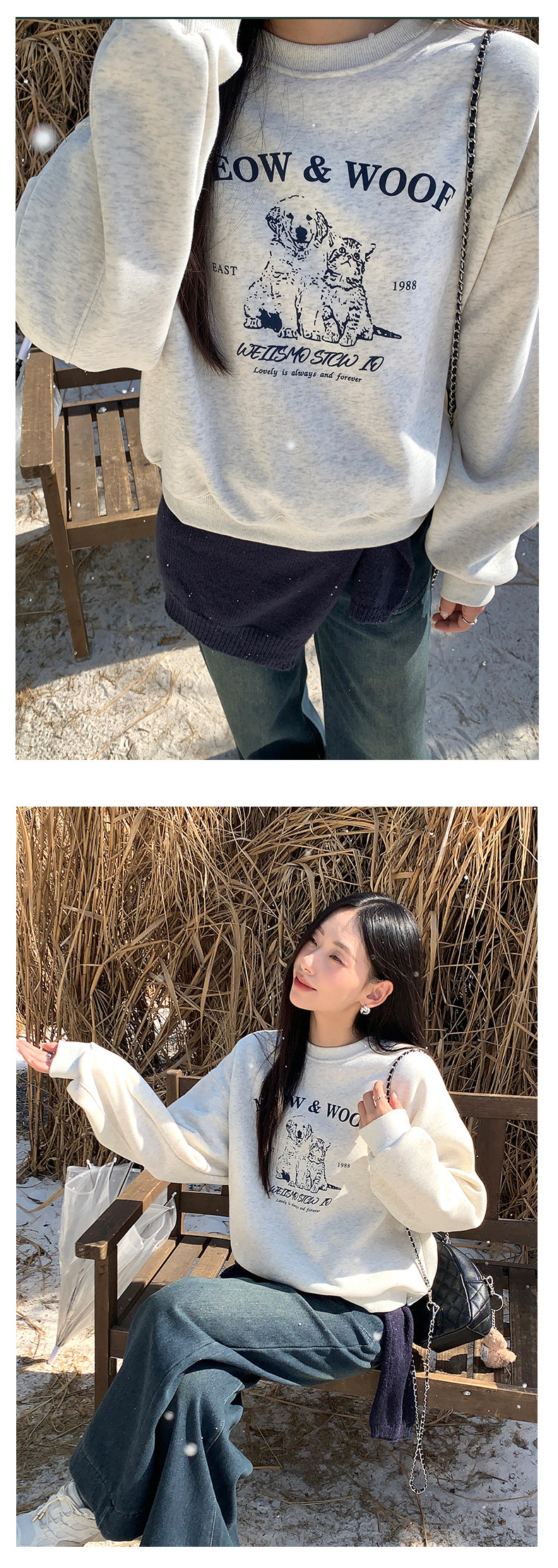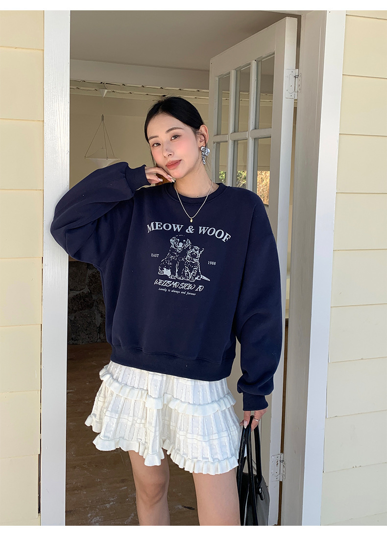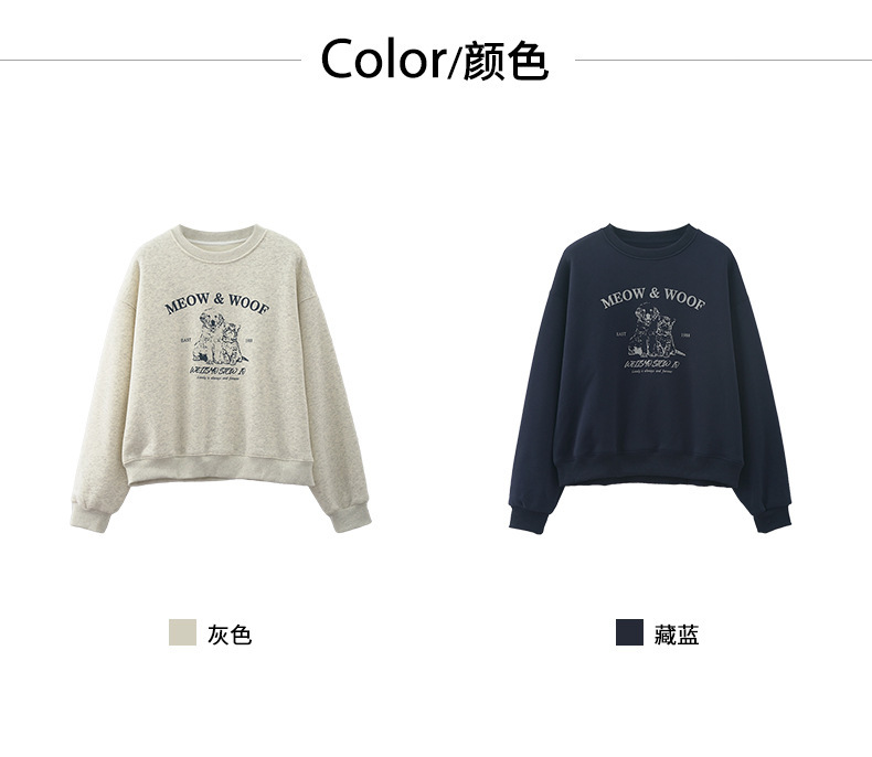 *o-ha-you*【FHZ145WY10014】韓系加絨狗狗印花字母衛衣2024冬加厚百搭套頭上衣-2色