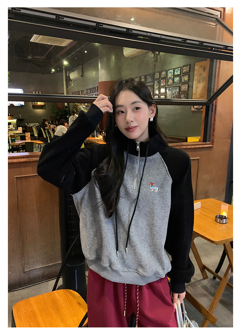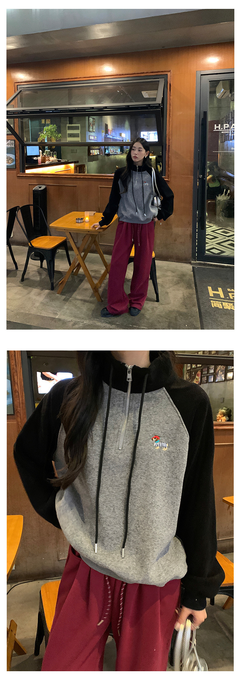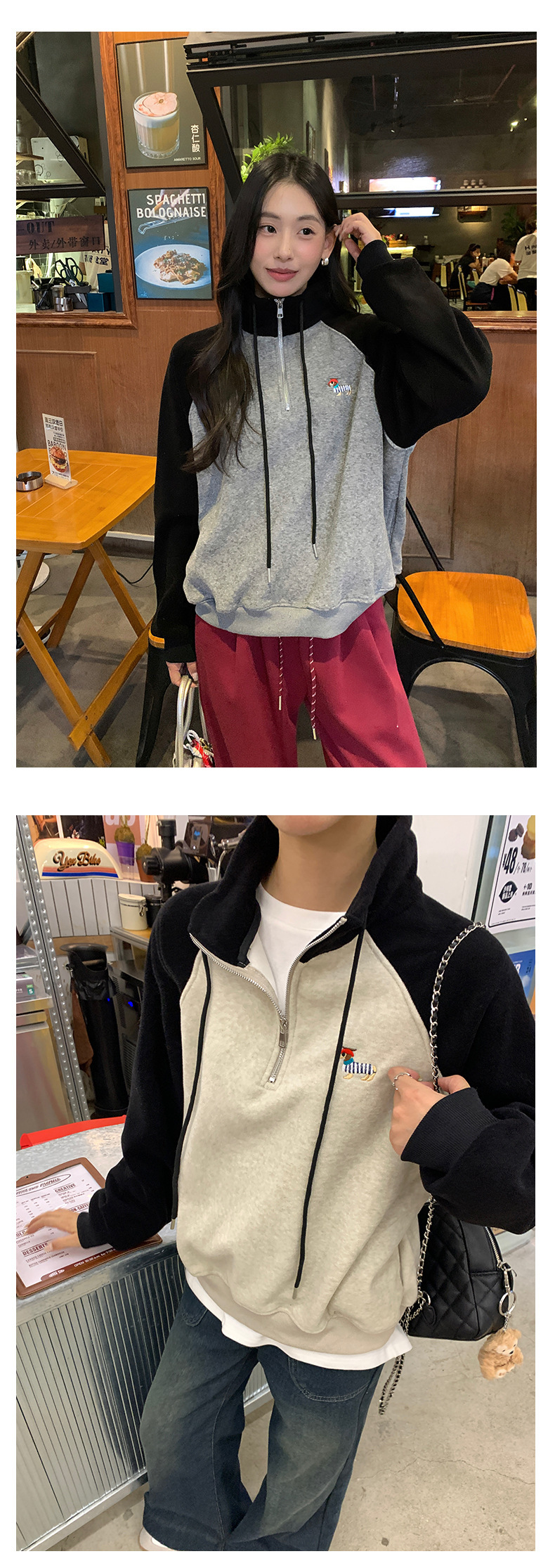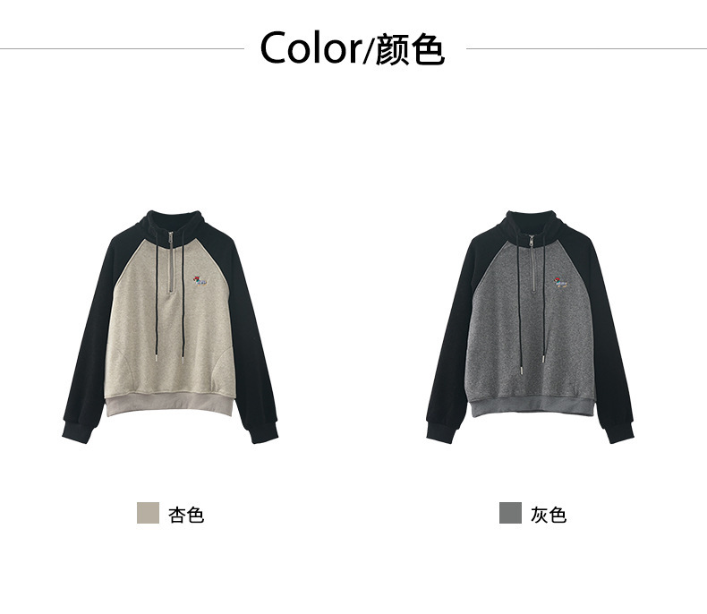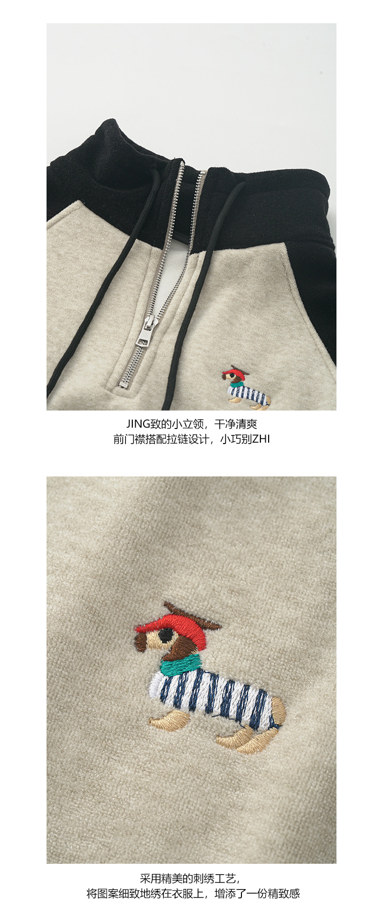 *o-ha-you*【FHZ145WY10032】韓系半拉鍊卡通刺繡加絨衛衣2024冬拼色-2色