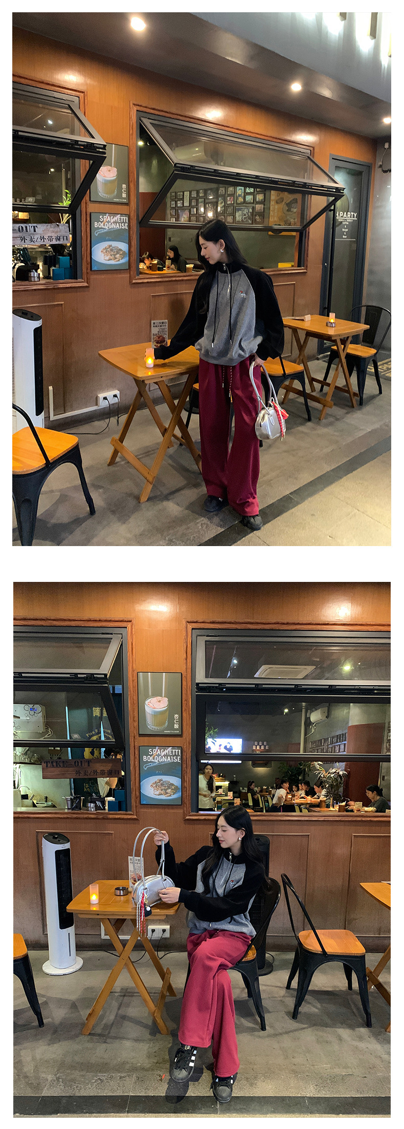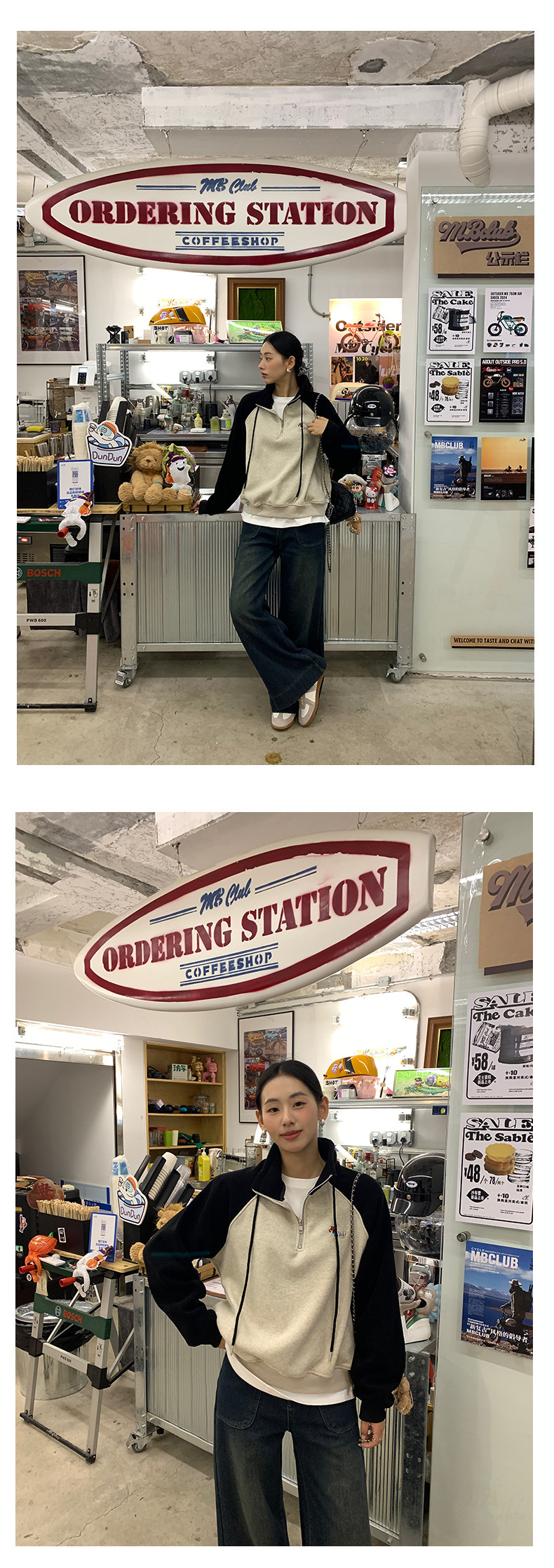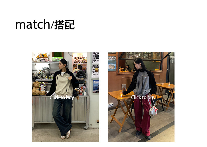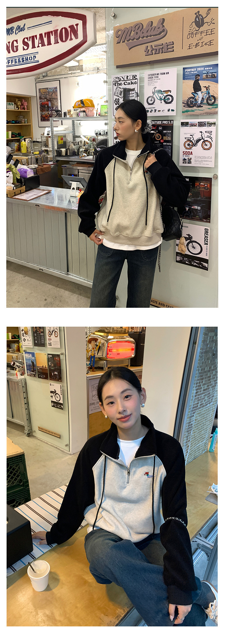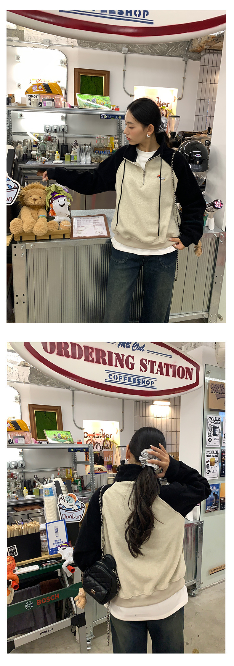 *o-ha-you*【FHZ145WY10032】韓系半拉鍊卡通刺繡加絨衛衣2024冬拼色-2色