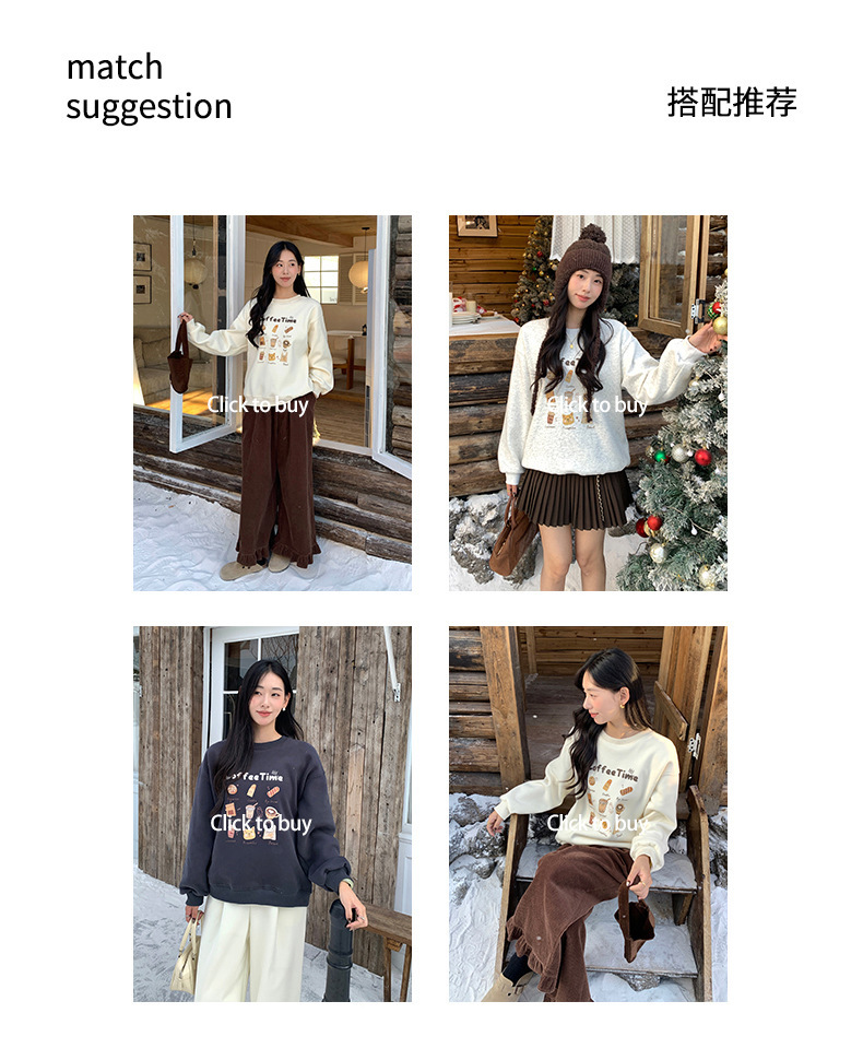 *o-ha-you*【FHZ145WY10052】甜點印花加絨衛衣2024冬套頭休閒加厚上衣-4色
