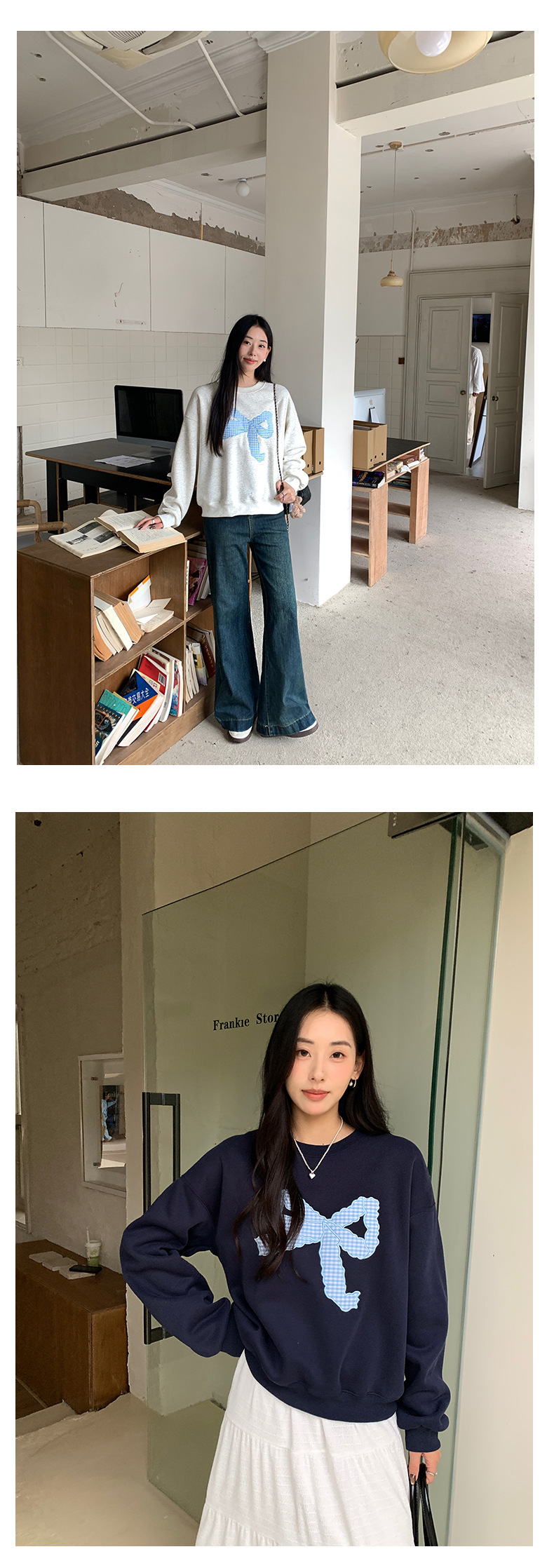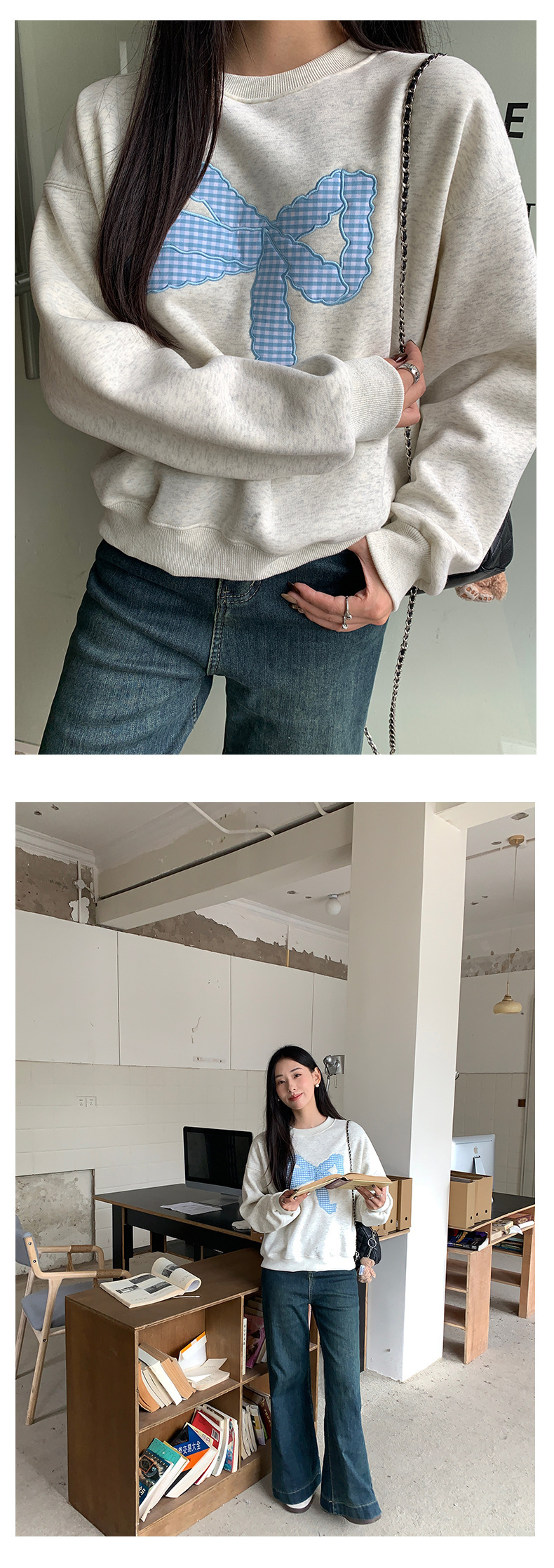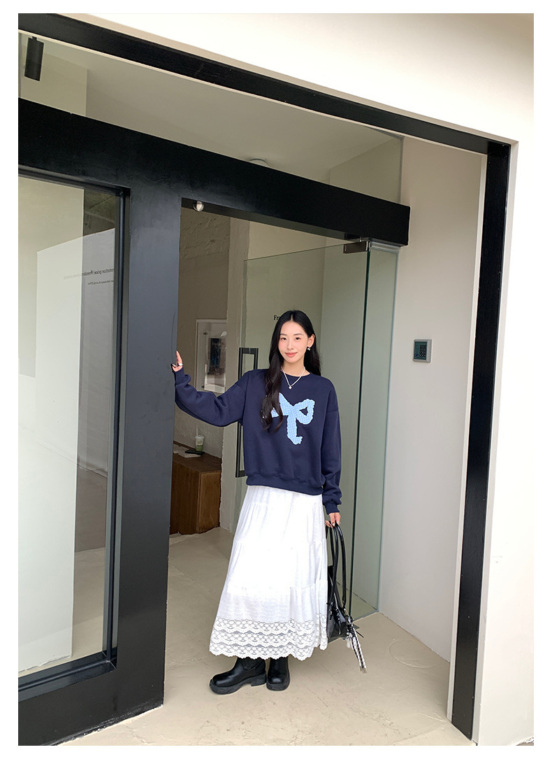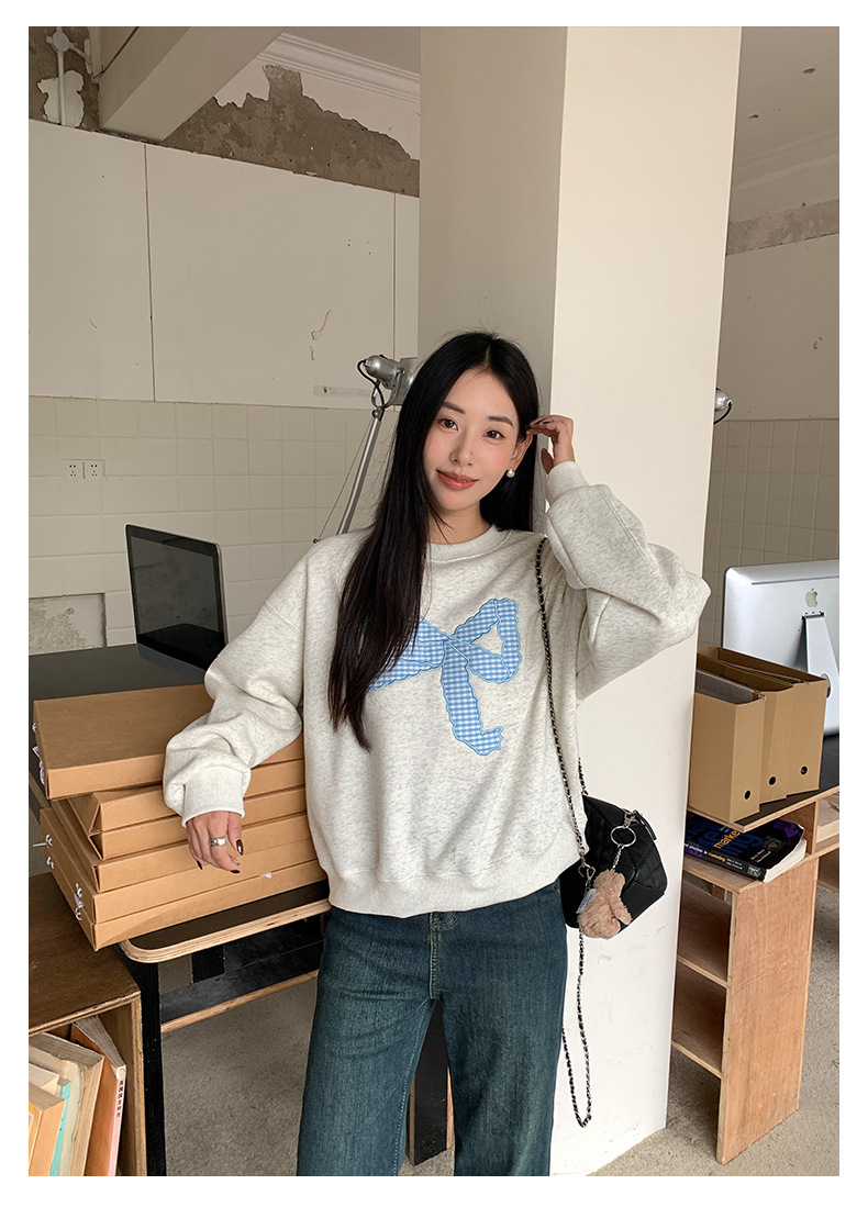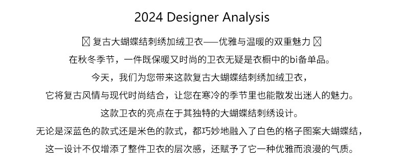 *o-ha-you*【FHZ145WY10071】復古大蝴蝶結刺繡加絨衛衣2024年冬保暖加厚長袖上衣-2色