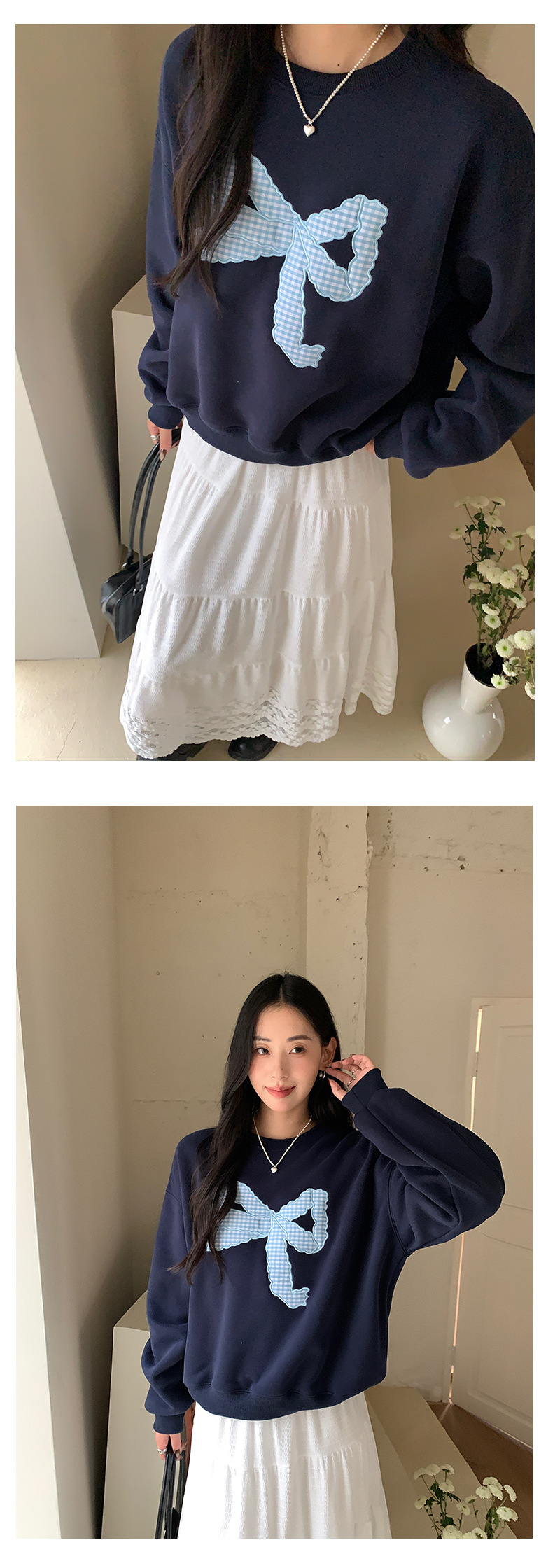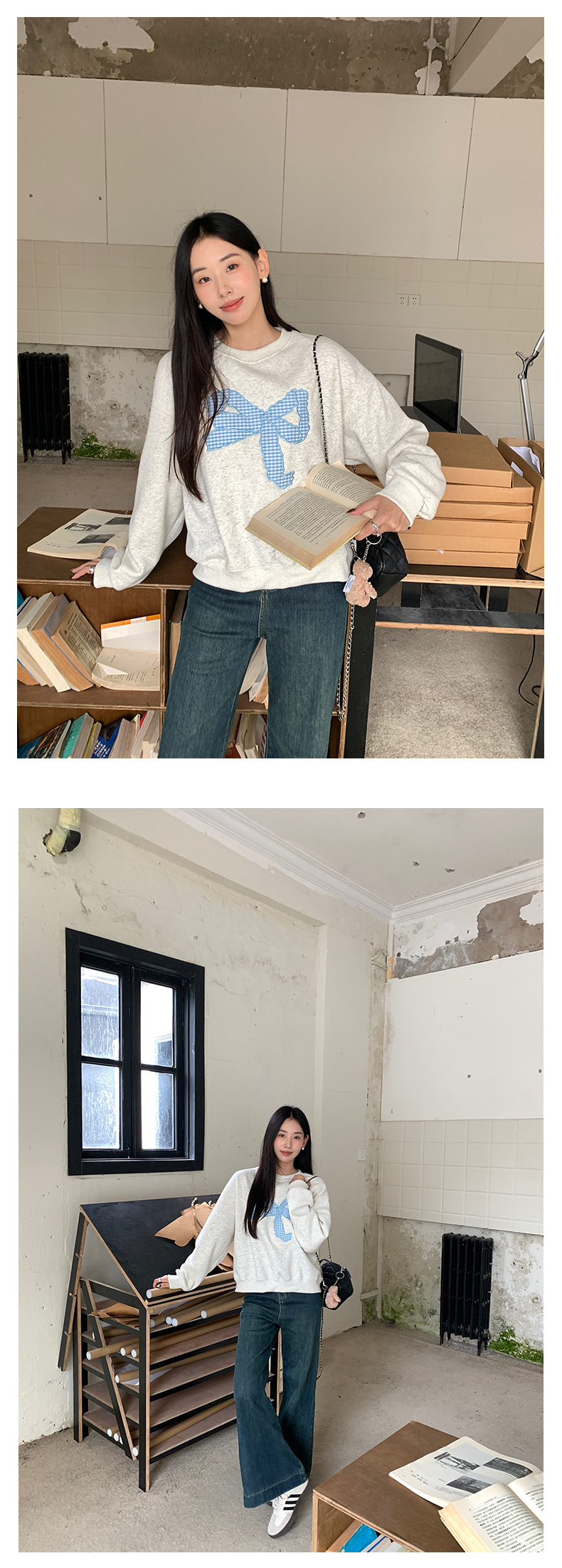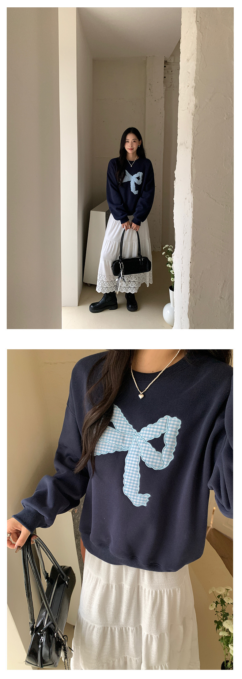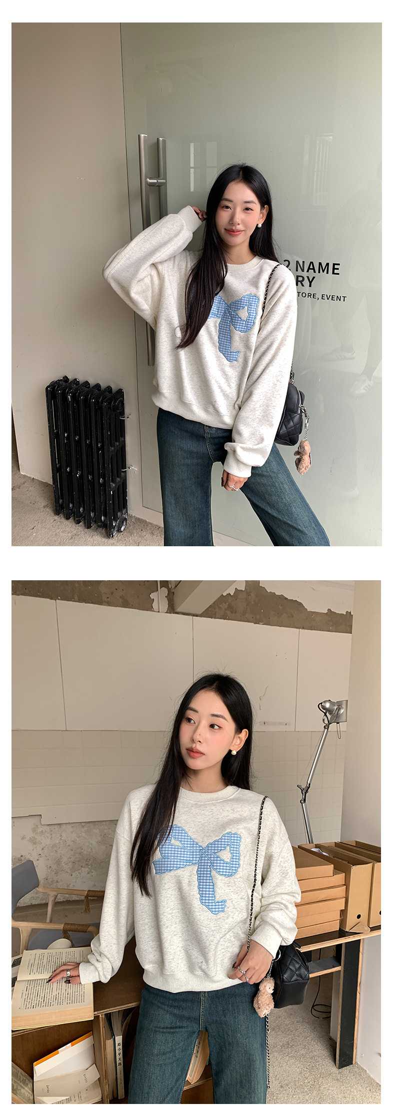 *o-ha-you*【FHZ145WY10071】復古大蝴蝶結刺繡加絨衛衣2024年冬保暖加厚長袖上衣-2色