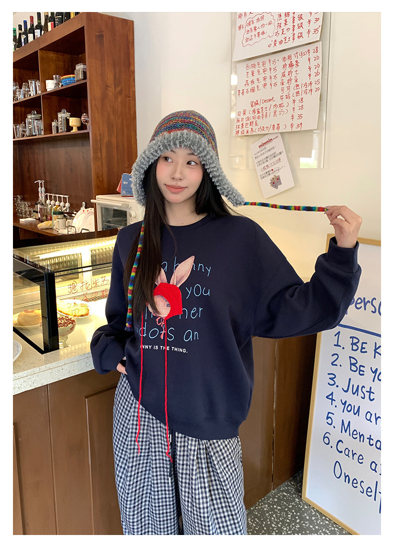 *o-ha-you*【FHZ145WY9011】韓系立體兔頭毛織帽衛衣2024冬季小紅帽寬鬆保暖-3色