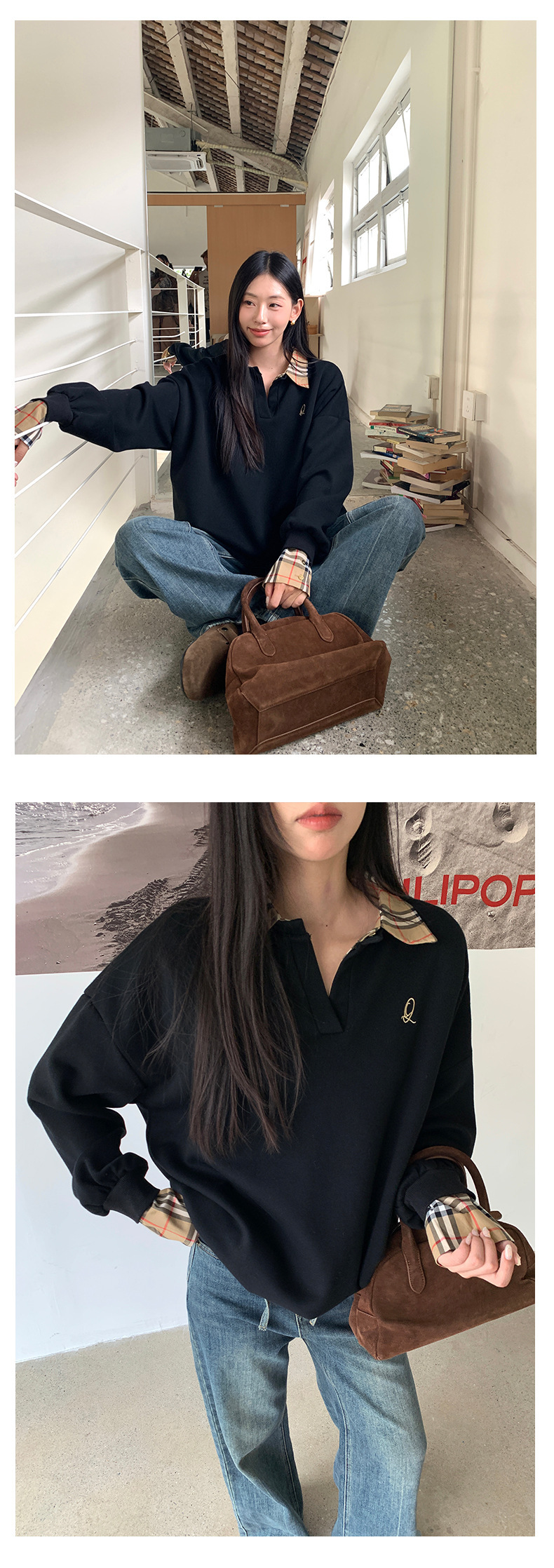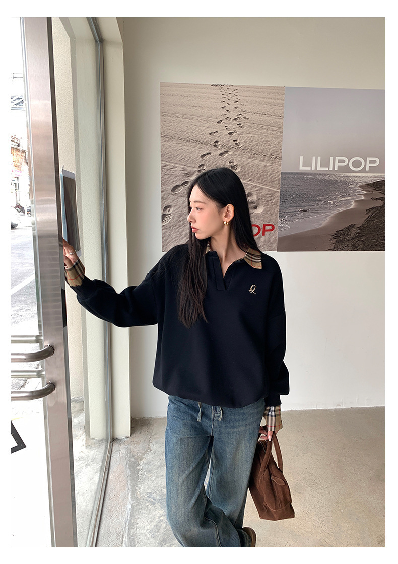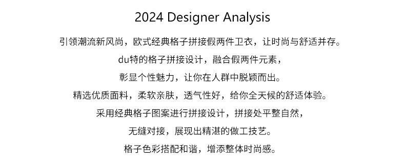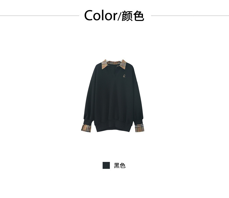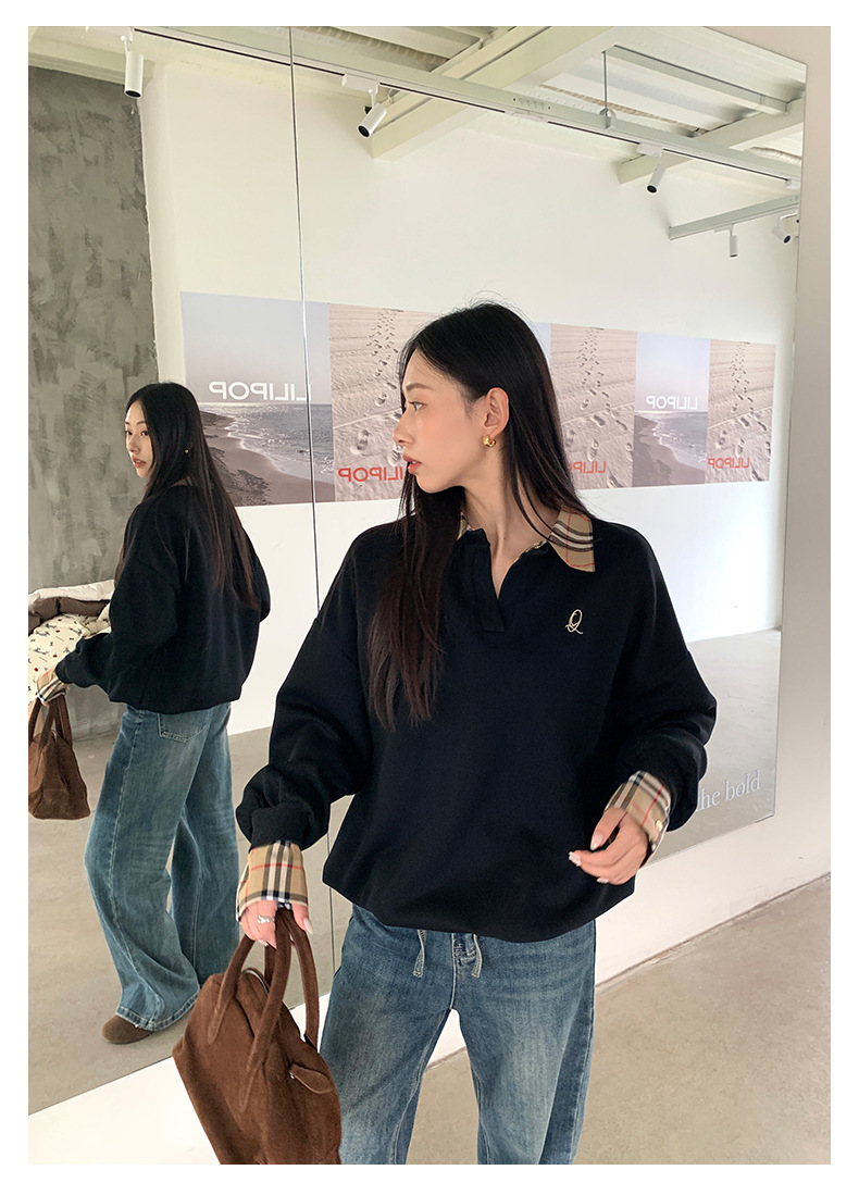*o-ha-you*【FHZ145WY9042】歐式經典拼接假兩件衛衣2024年冬季格紋寬鬆高級感上衣