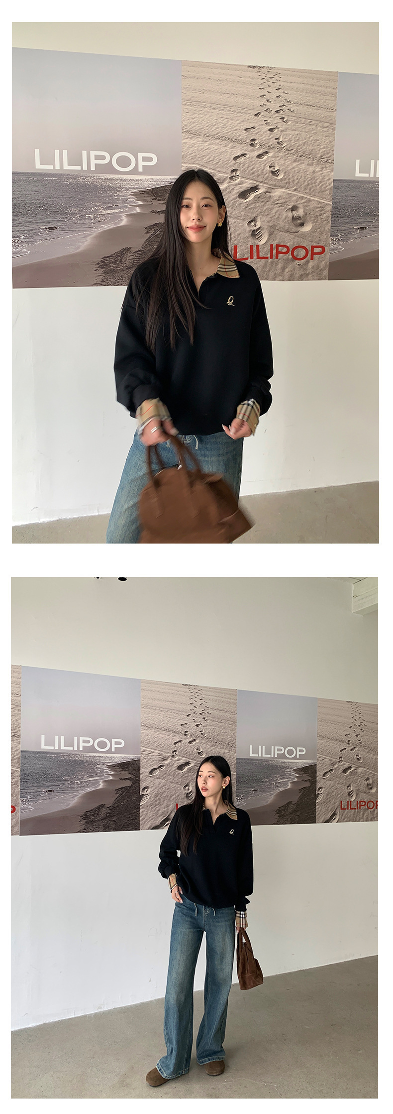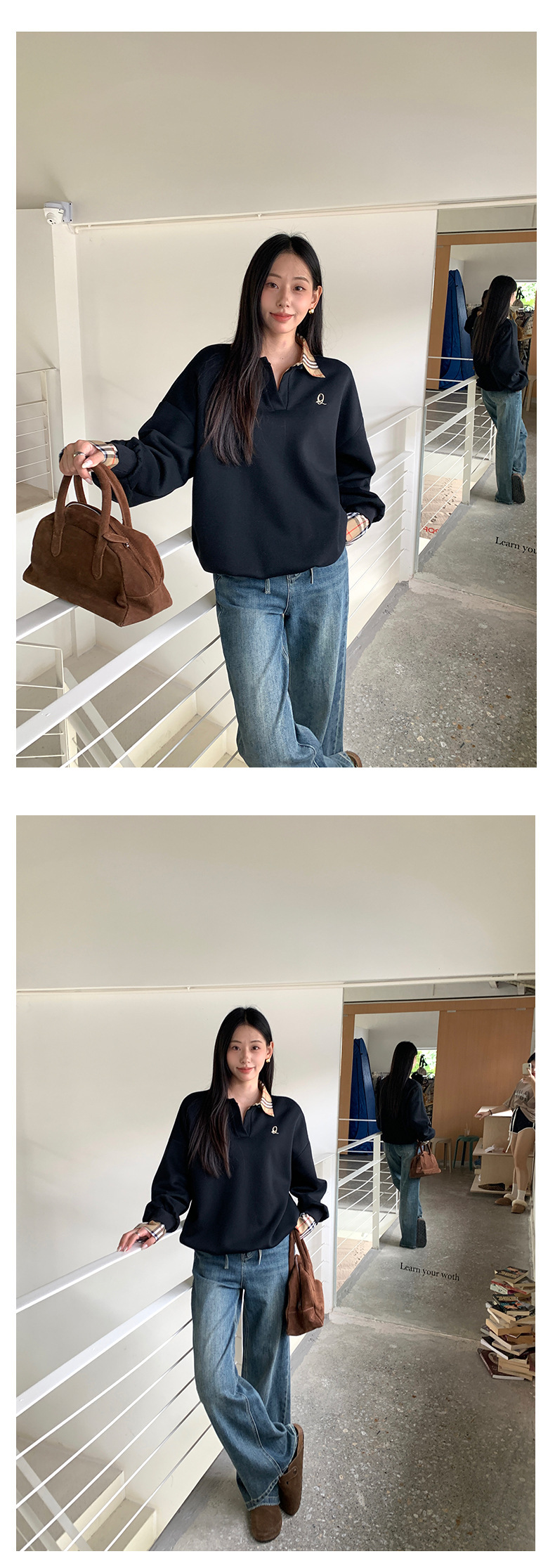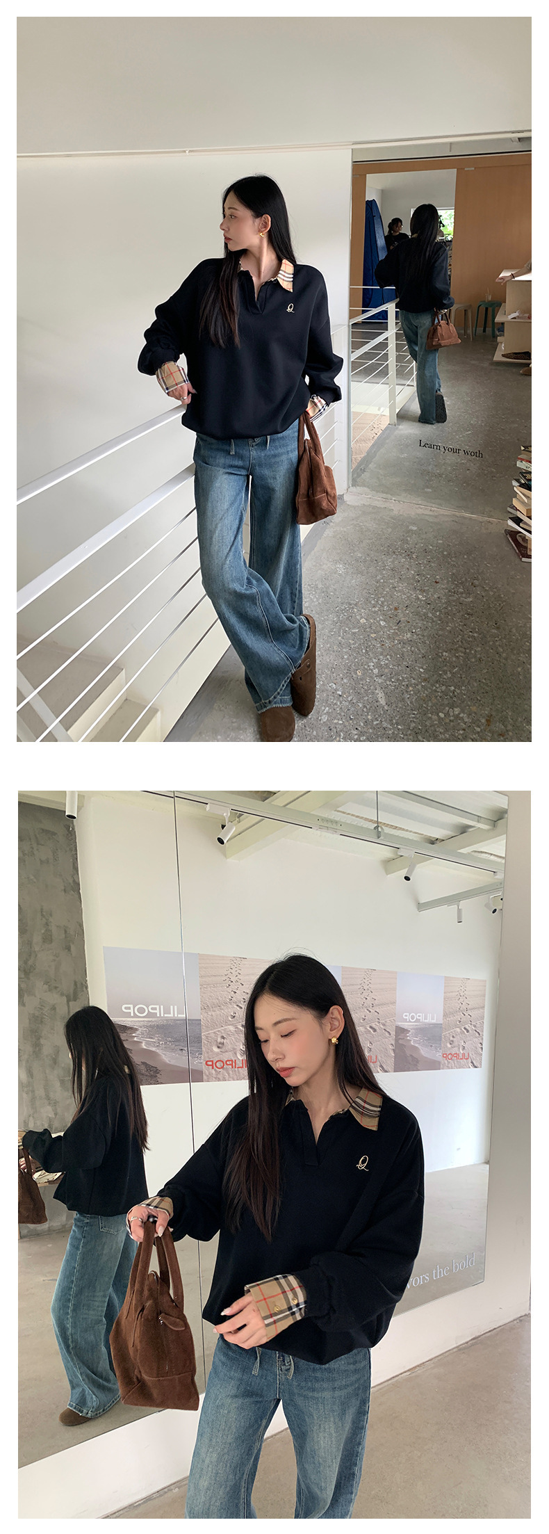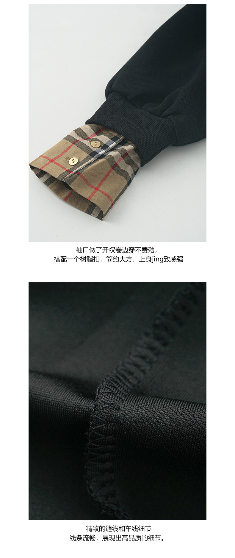 *o-ha-you*【FHZ145WY9042】歐式經典拼接假兩件衛衣2024年冬季格紋寬鬆高級感上衣