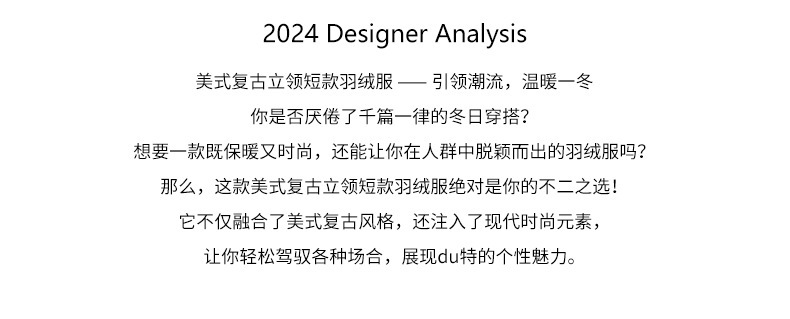 *o-ha-you*【FHZ145YY9026】美式復古立領短版羽絨外套2024冬季修身時尚潮同款-2色