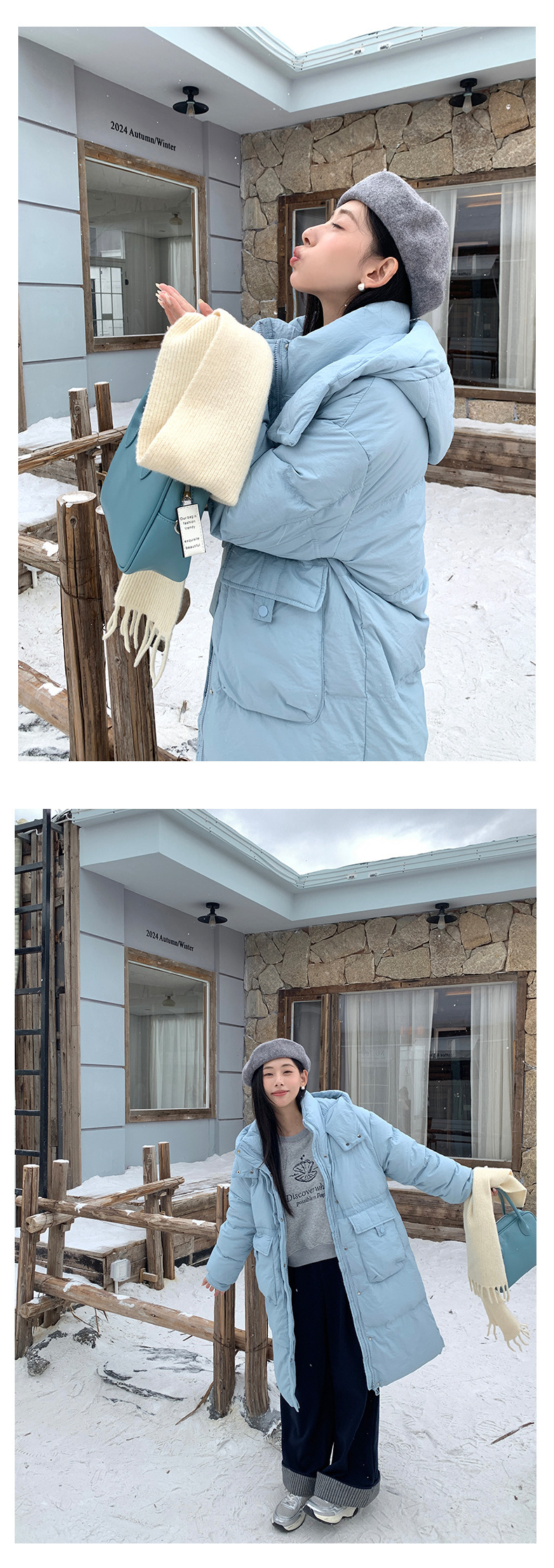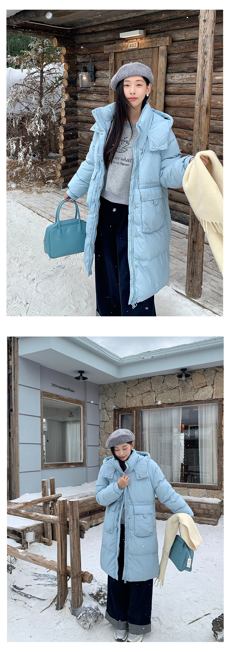 *o-ha-you*【FHZ145YY9092】韓糖果色長版羽絨衣外套2024冬連帽抽繩過膝顯瘦-6色