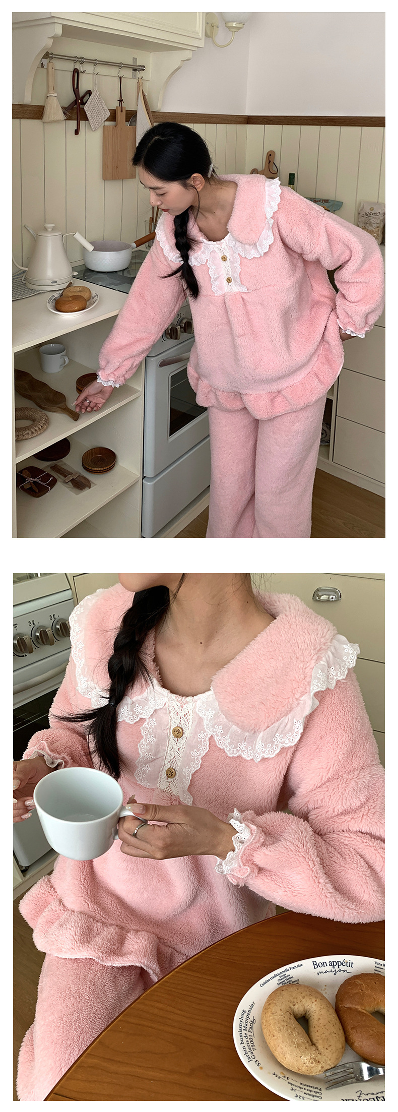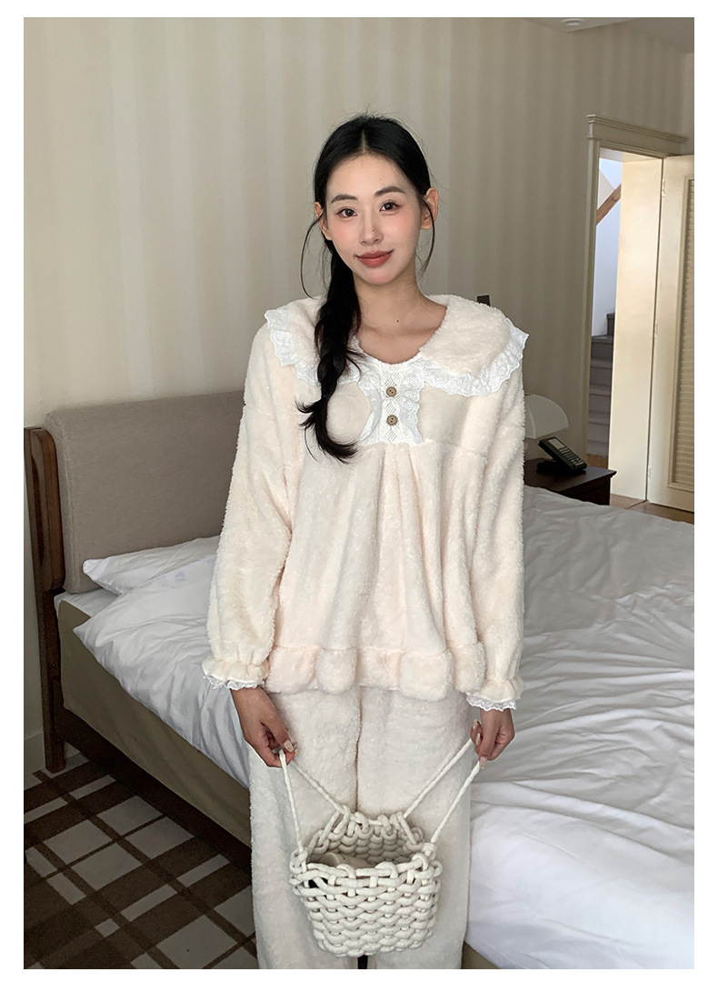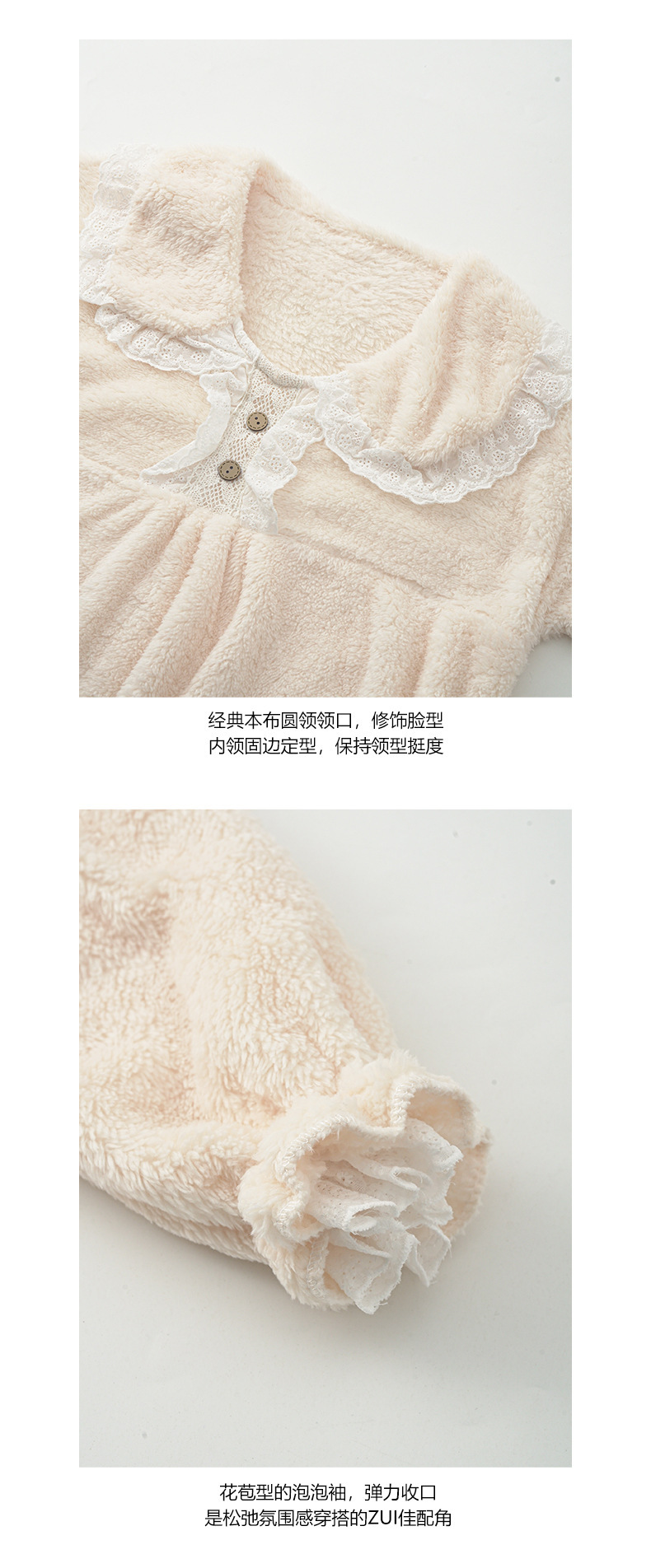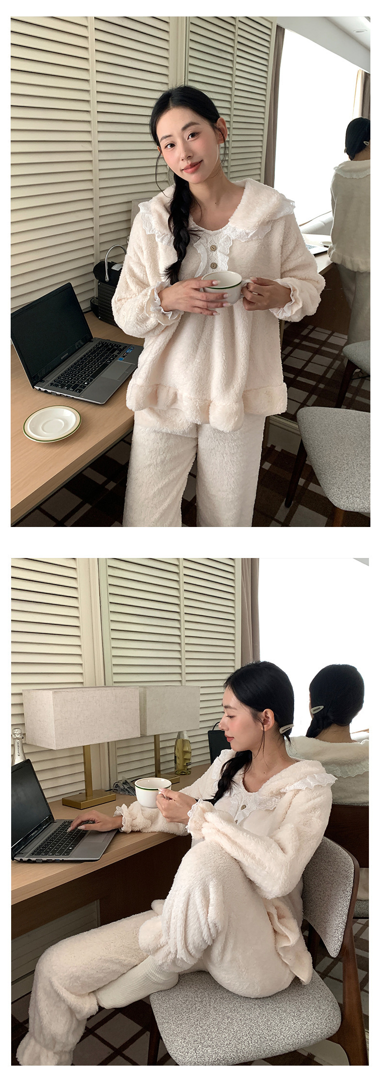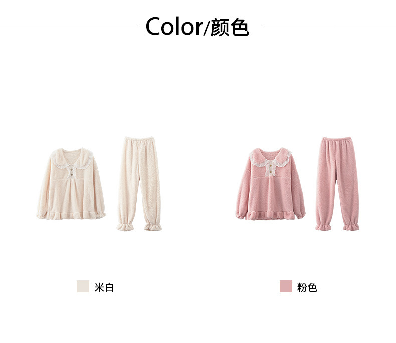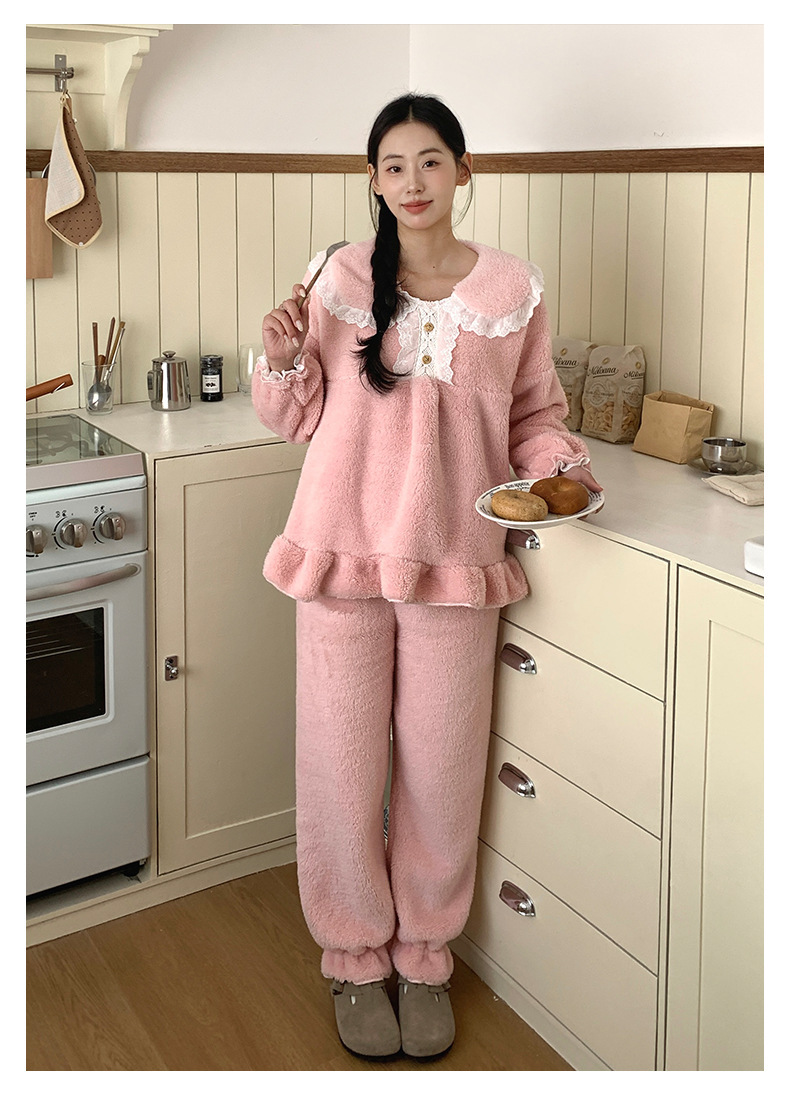 *o-ha-you*【FHZ145ZY10043】珊瑚絨加厚睡衣套裝2024冬蕾絲甜美家居-2色