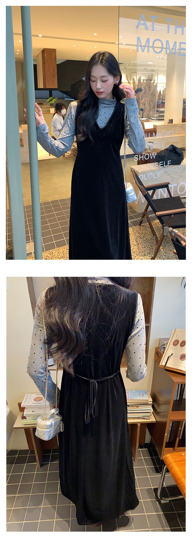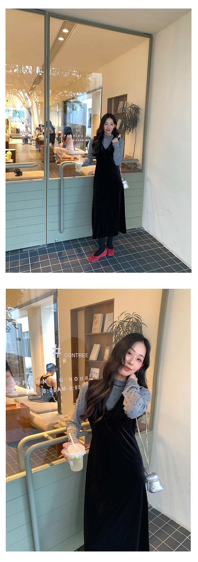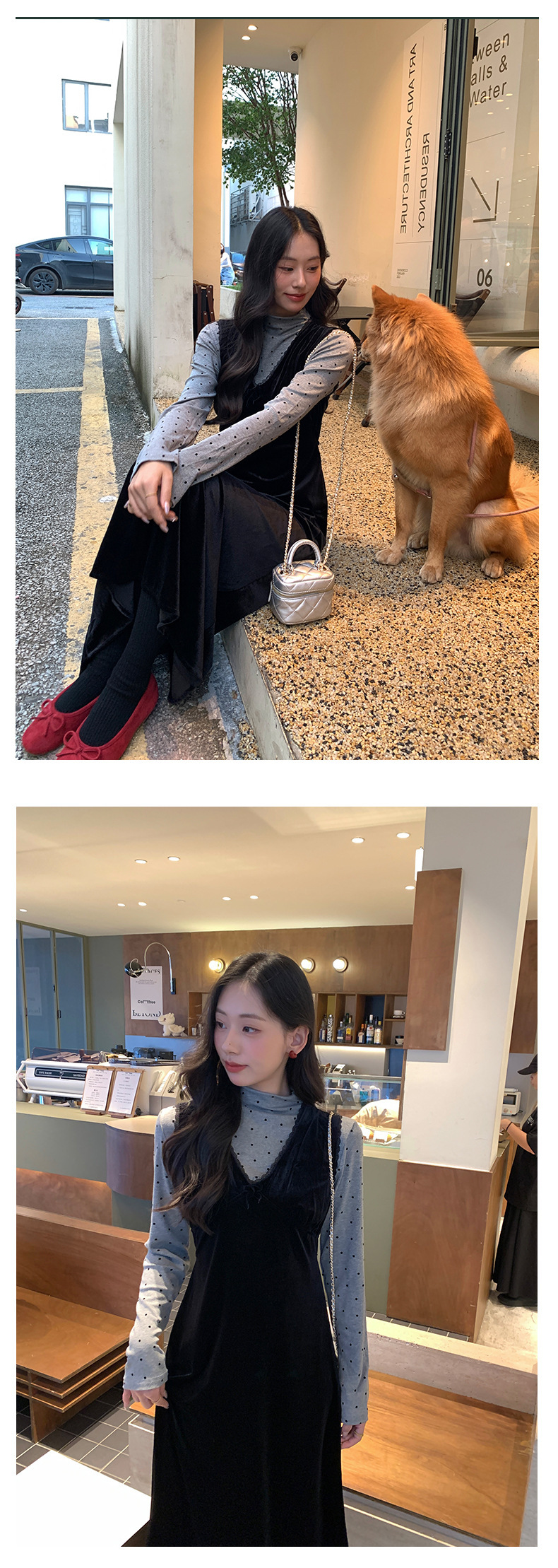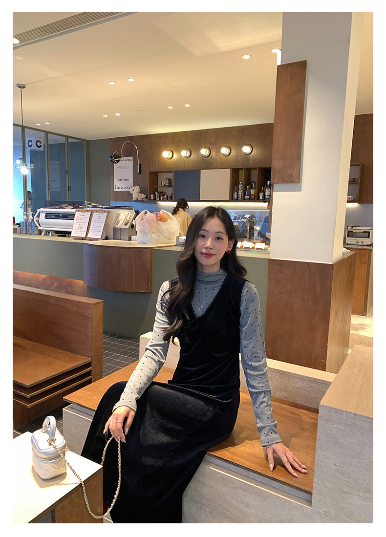 *o-ha-you*【FHZ145ZY9022】法式波點打底絲絨植絨連衣裙2024冬季長袖疊穿長裙洋裝