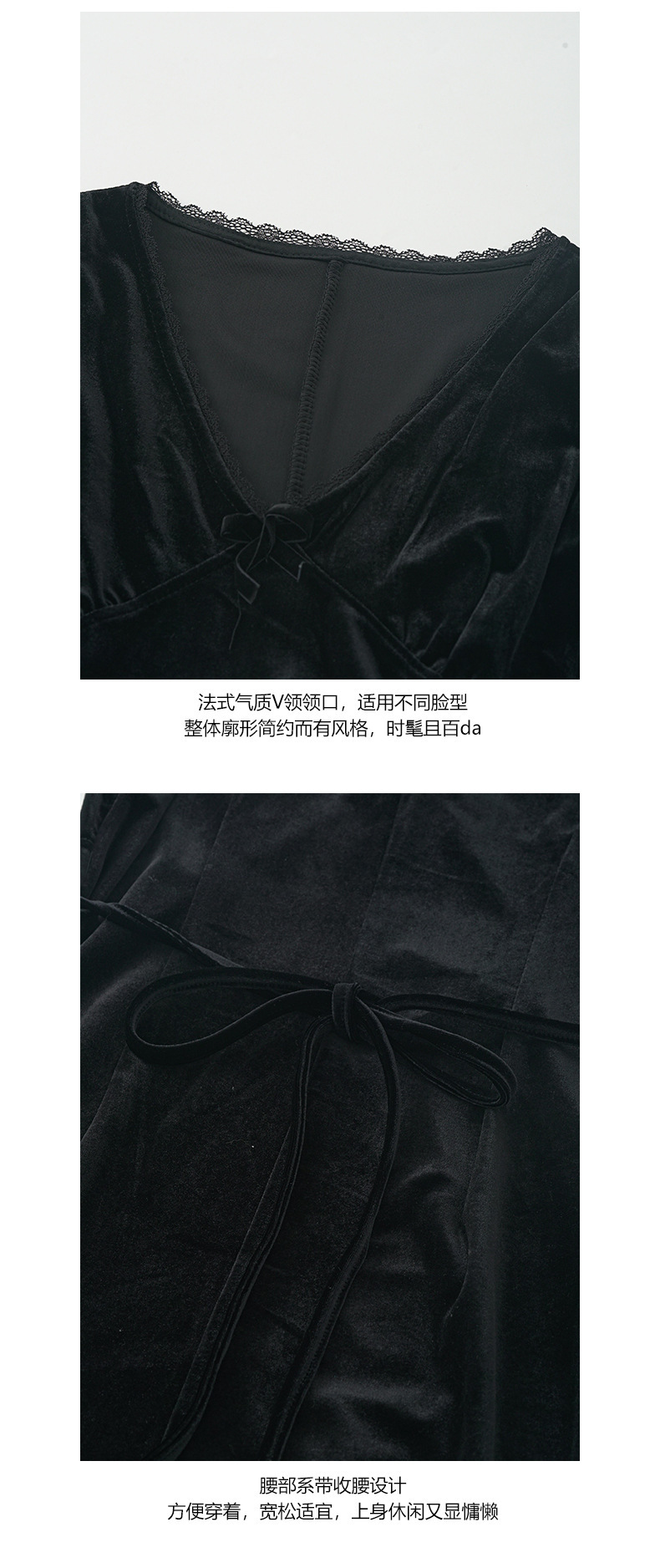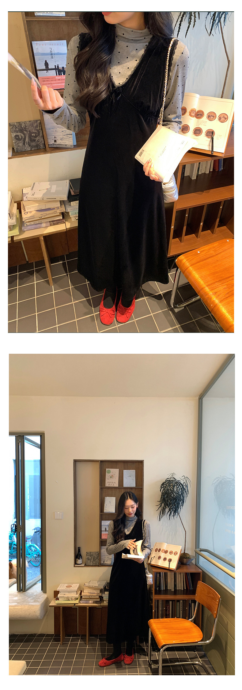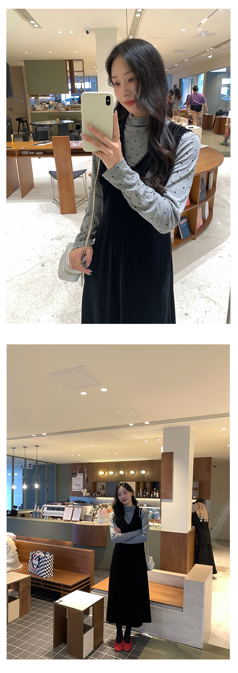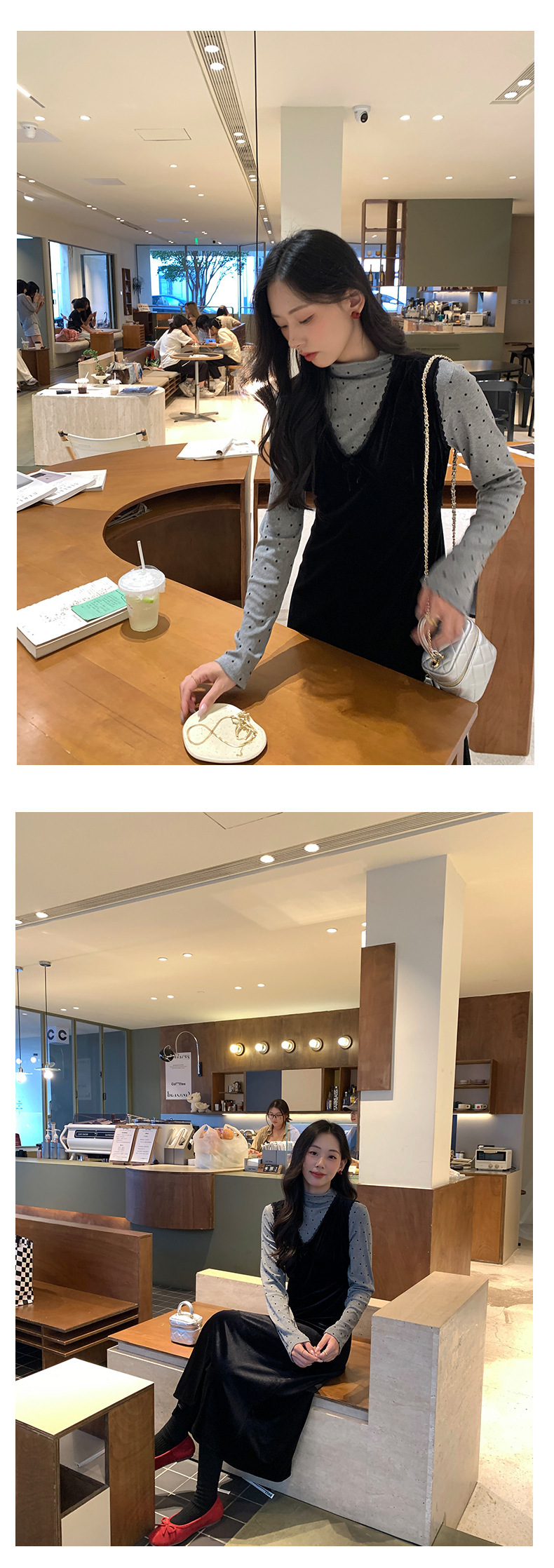*o-ha-you*【FHZ145ZY9022】法式波點打底絲絨植絨連衣裙2024冬季長袖疊穿長裙洋裝
