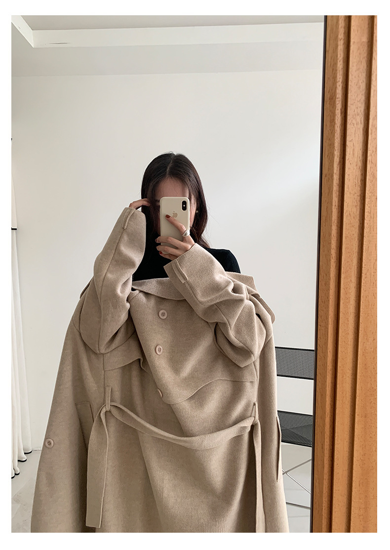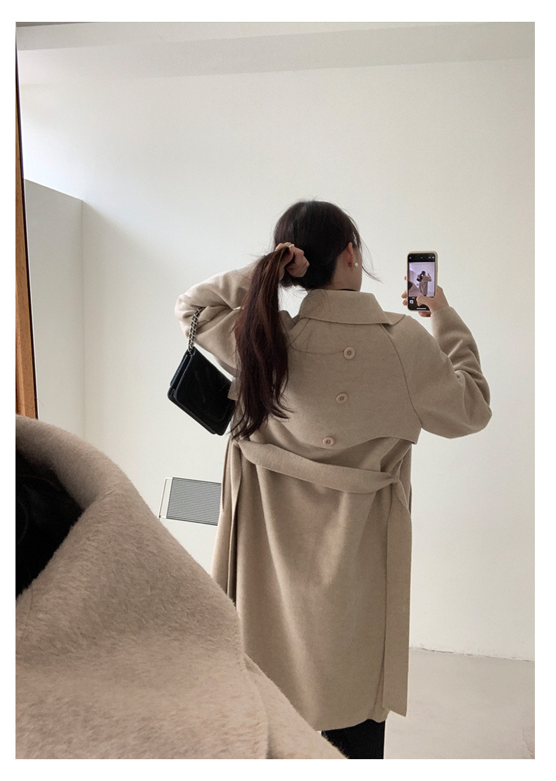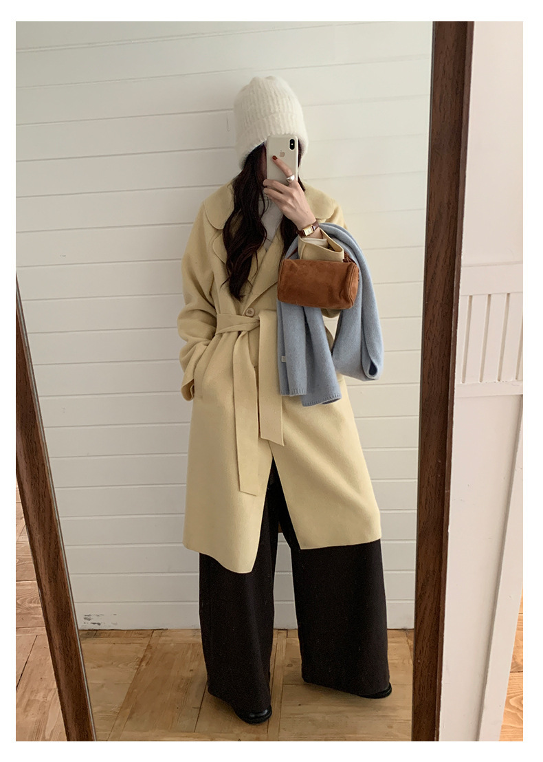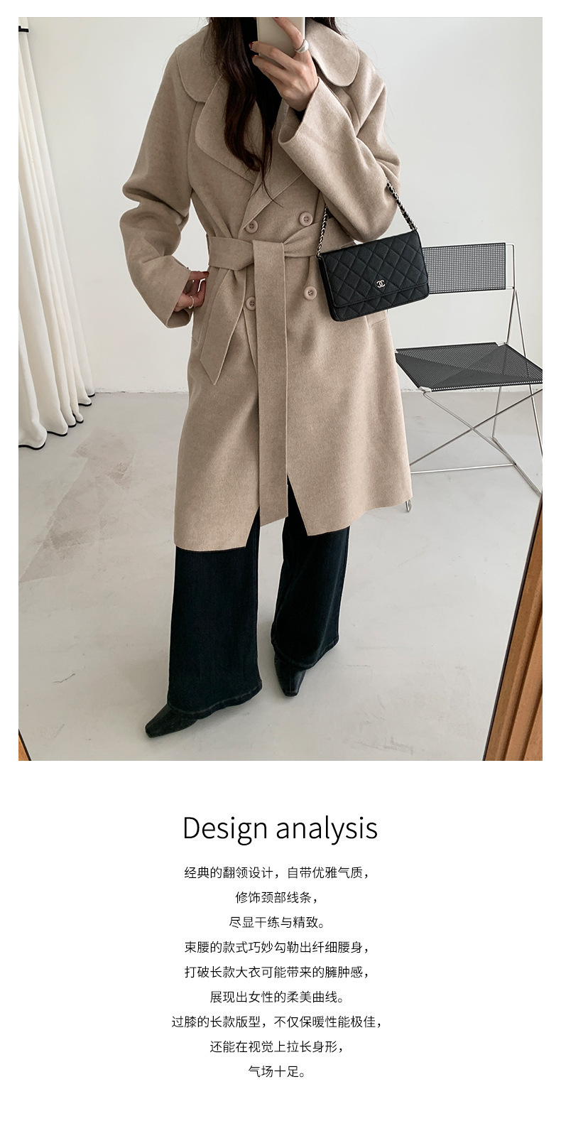 *o-ha-you*【FHZH1AA5041057】英倫風翻領束腰雙面呢羊絨外套女秋冬寬鬆過膝長大衣-2色